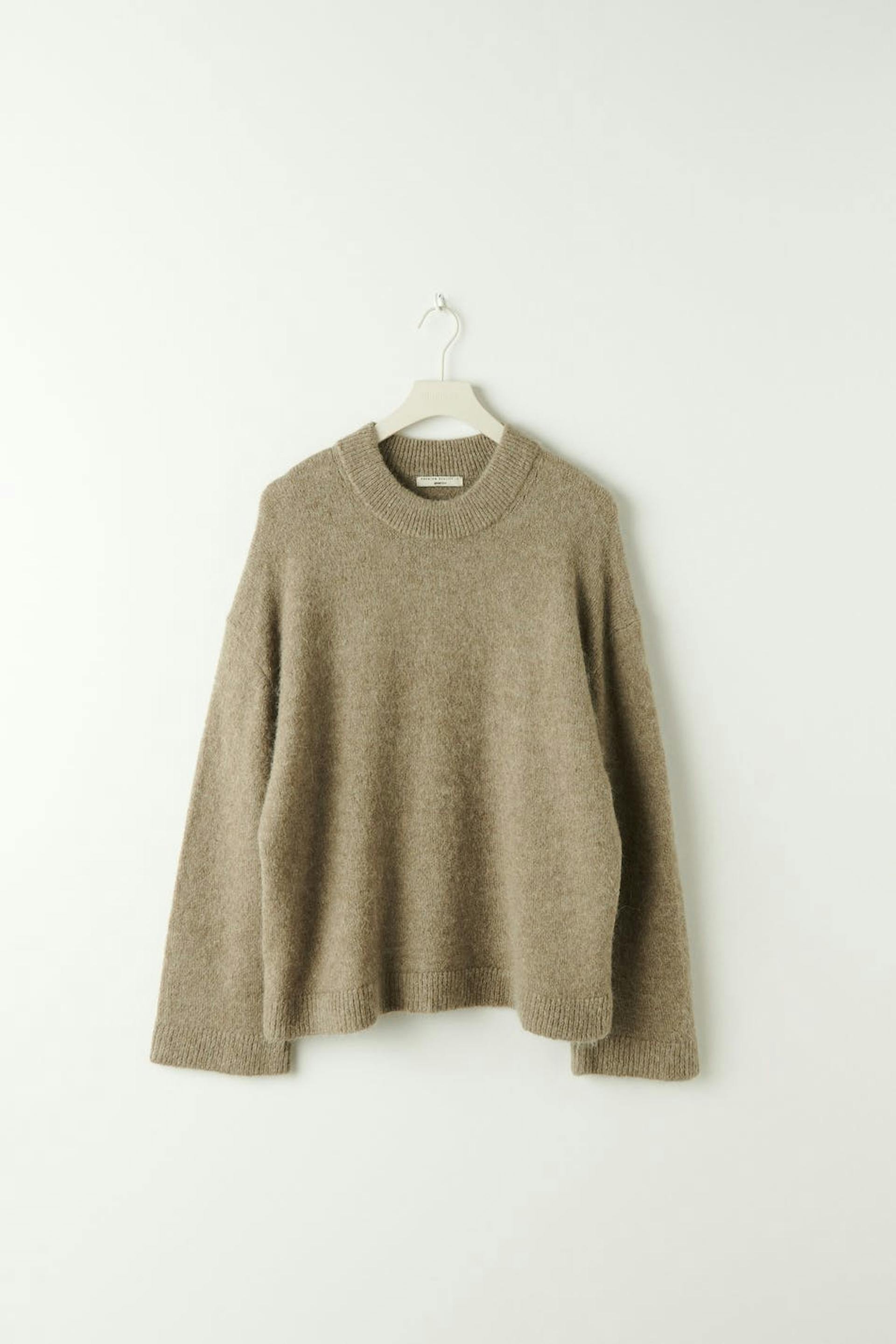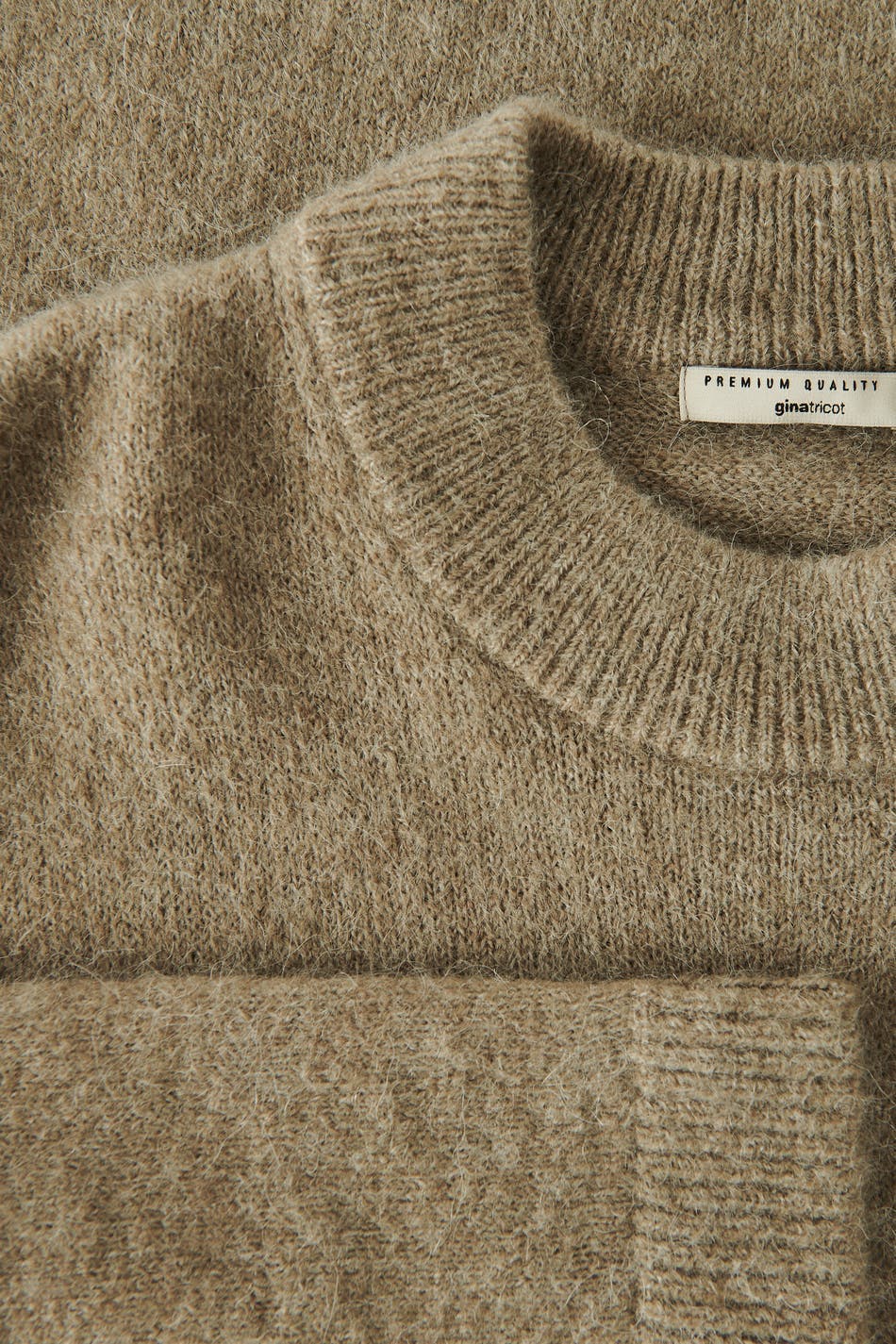 Soft knitted sweater with boxy fit. The sweat is beige and has dropped shoulders with a ribbed hem.