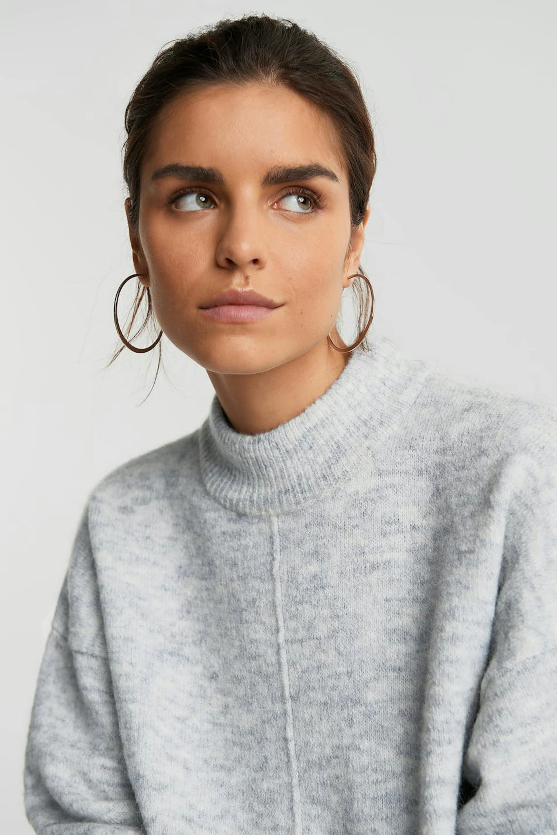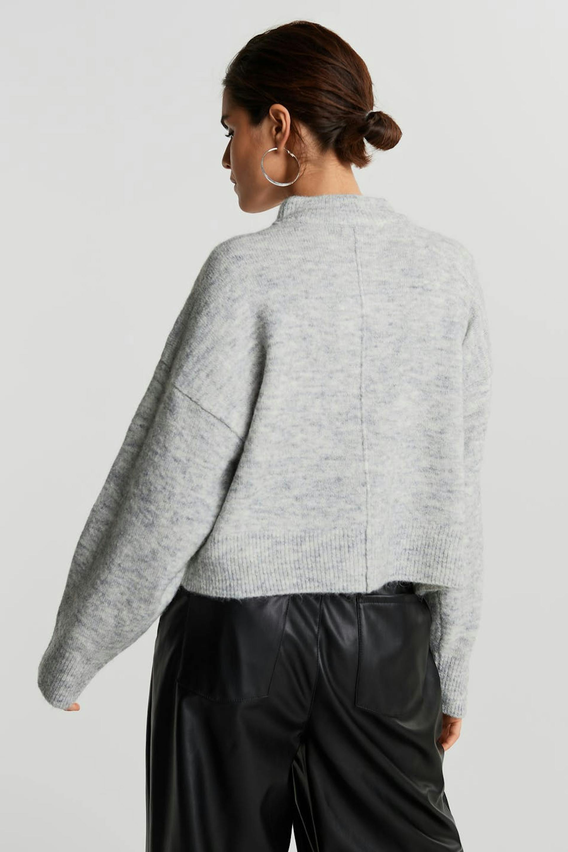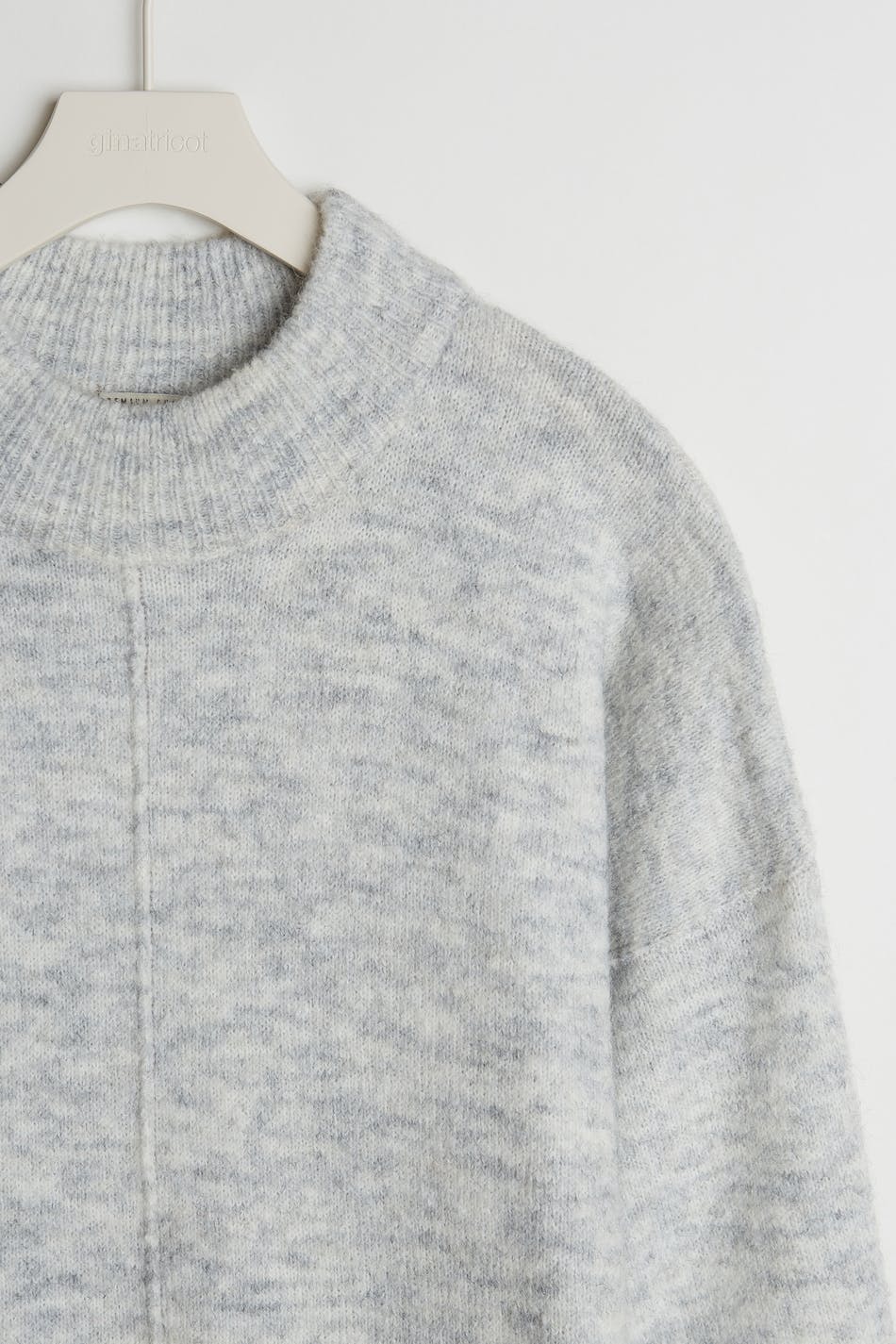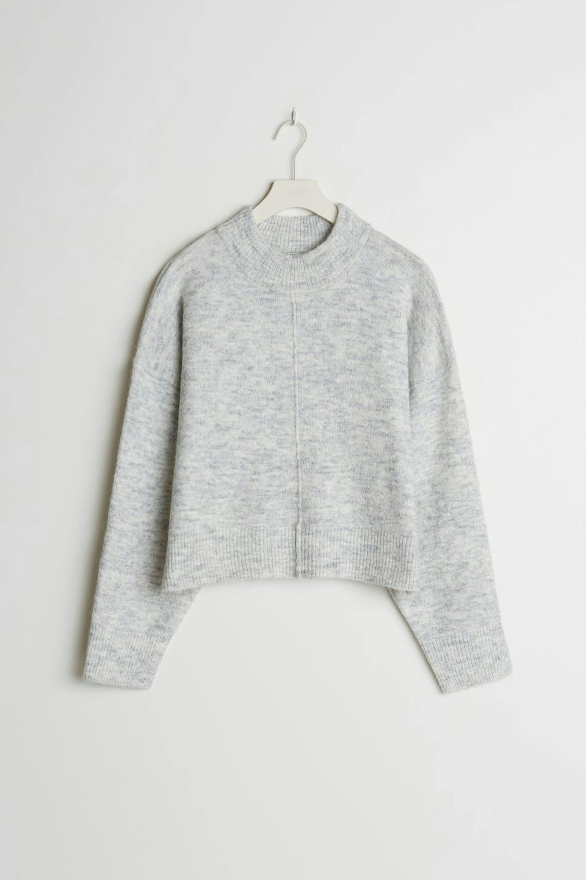 Jumper with a ribbed cuff on the neckline, on the sleeve ends and at the hem. The jumper is grey and has a seam detail on the front and on the back.