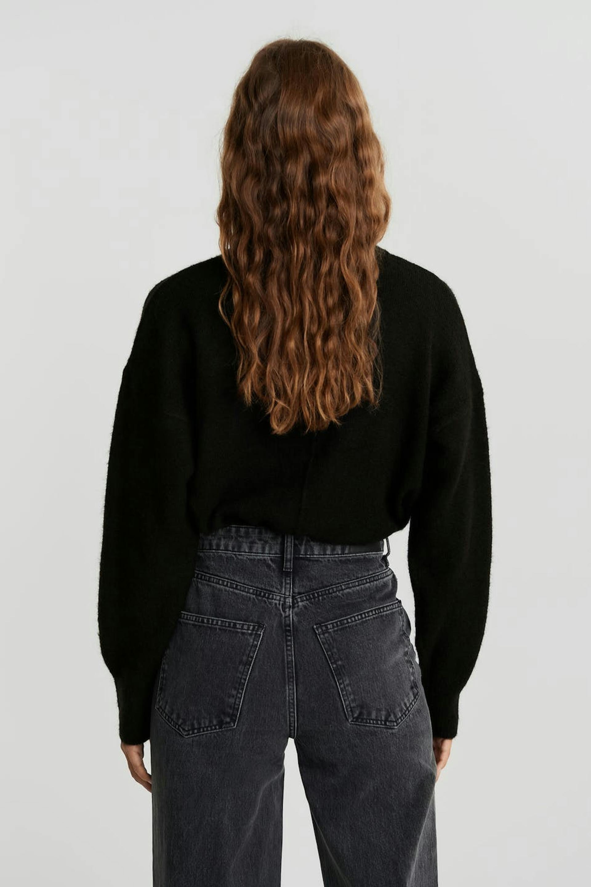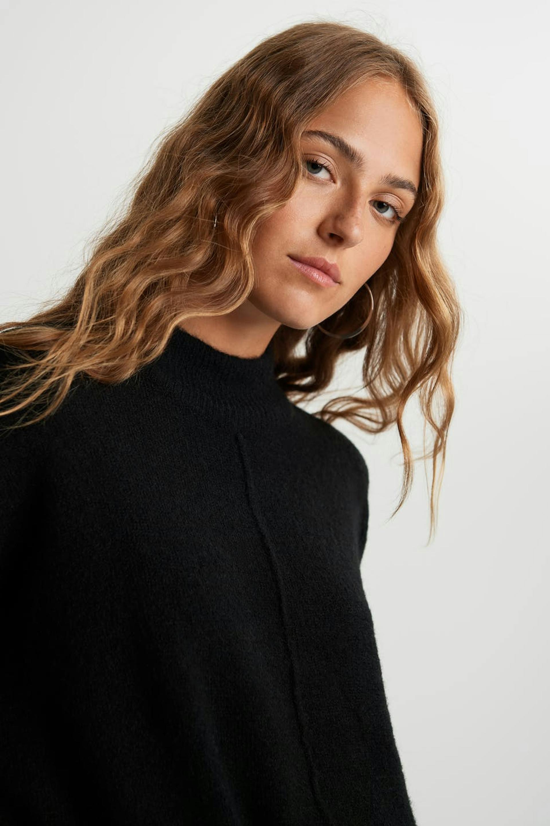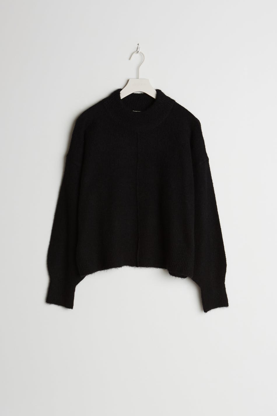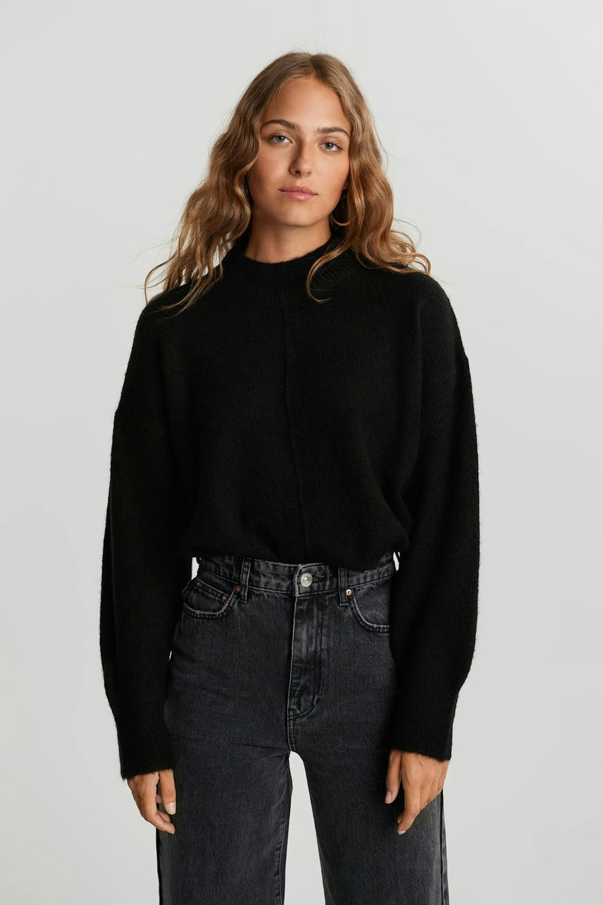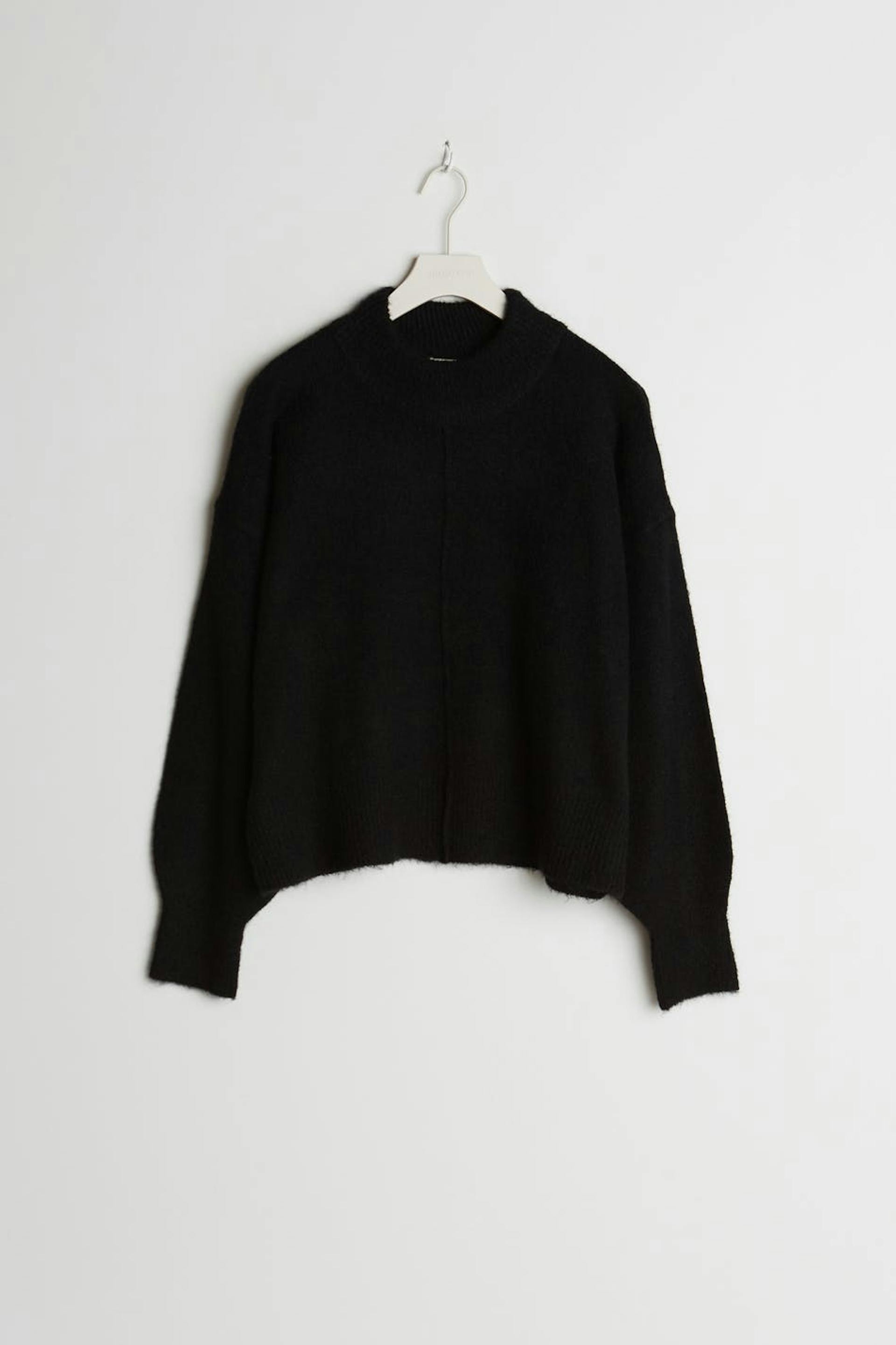Jumper with a ribbed cuff on the neckline, on the sleeve ends and at the hem. The jumper is black and has a seam detail on the front and on the back.