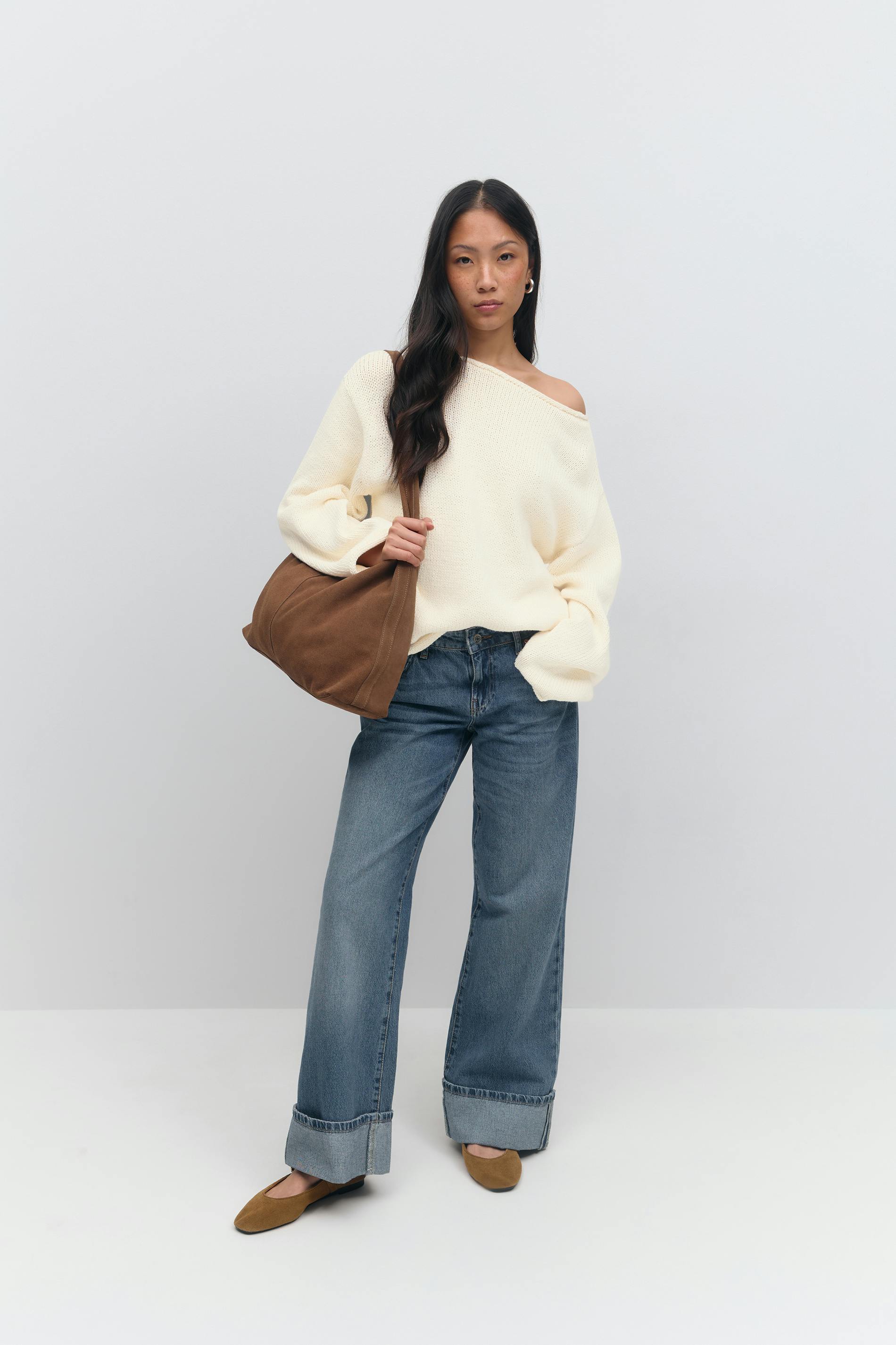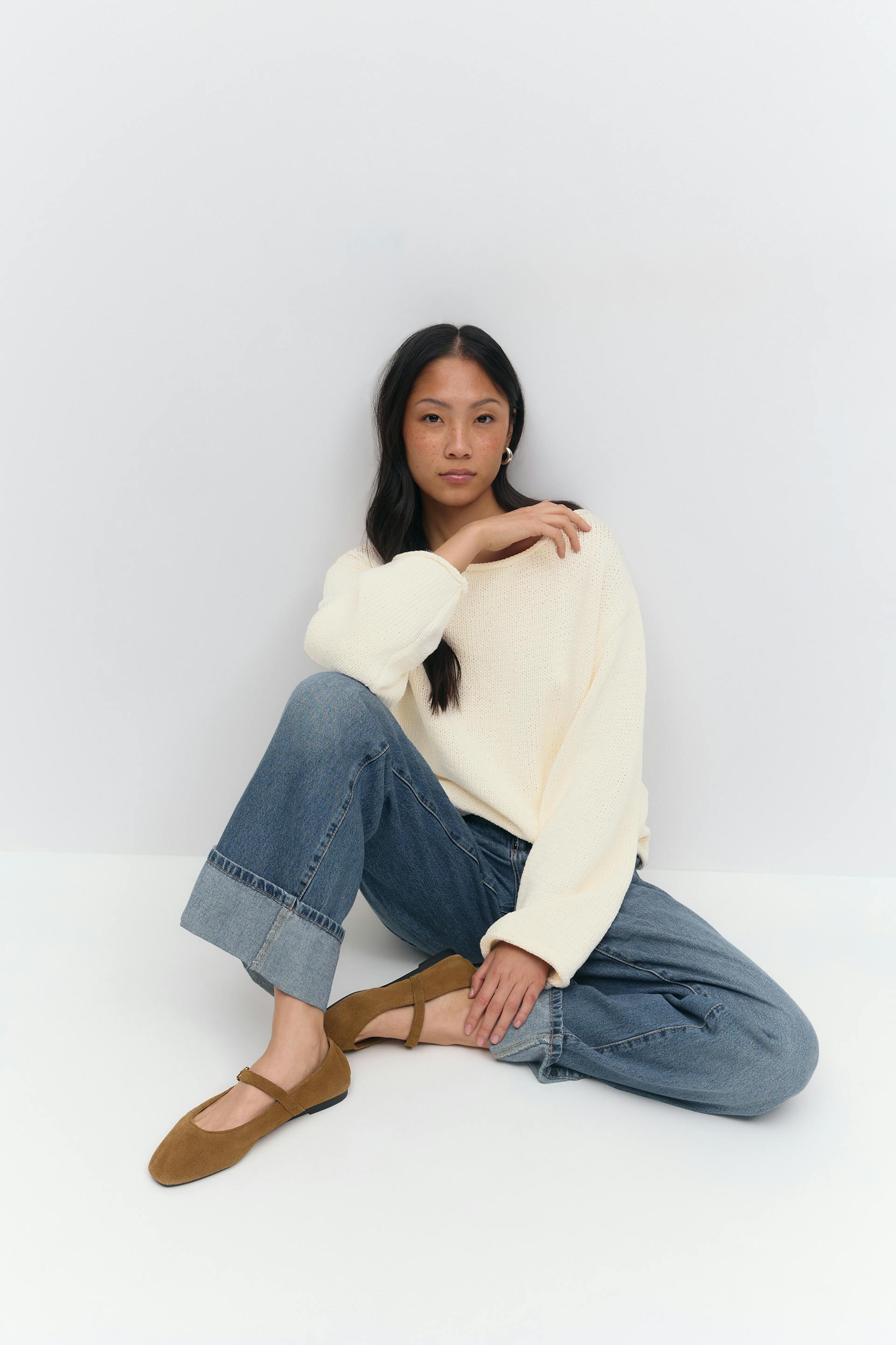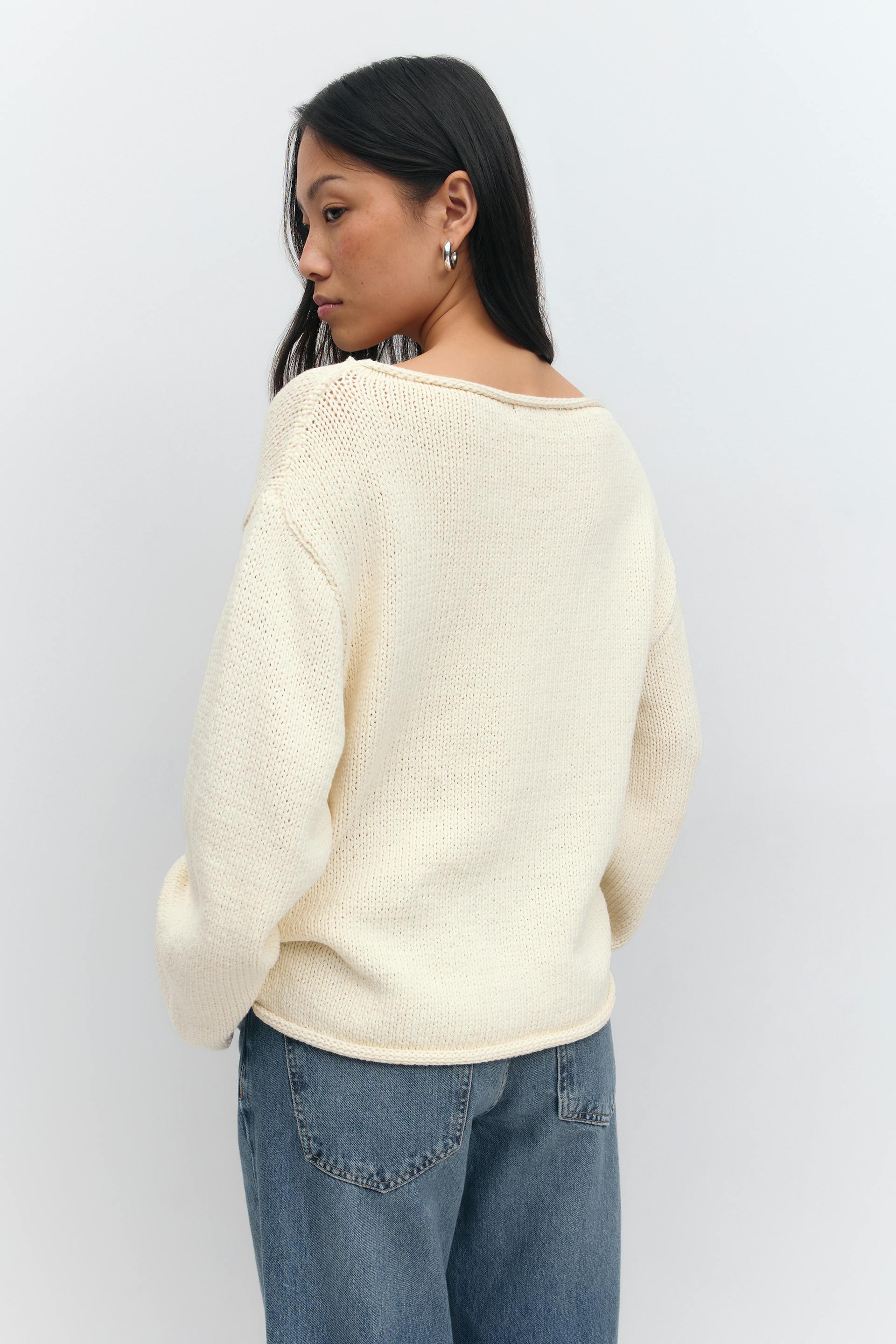 Knitted tape yarn sweater