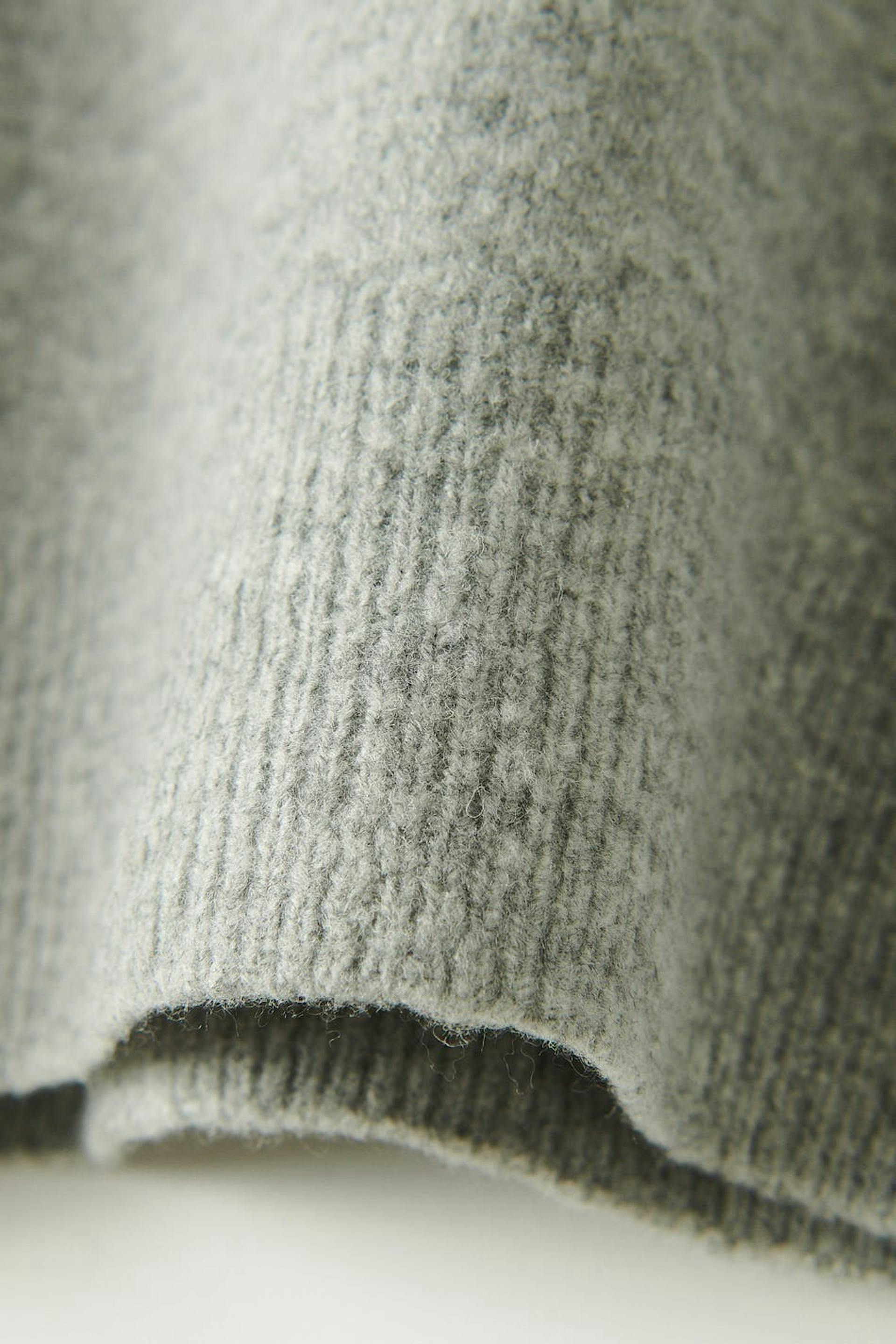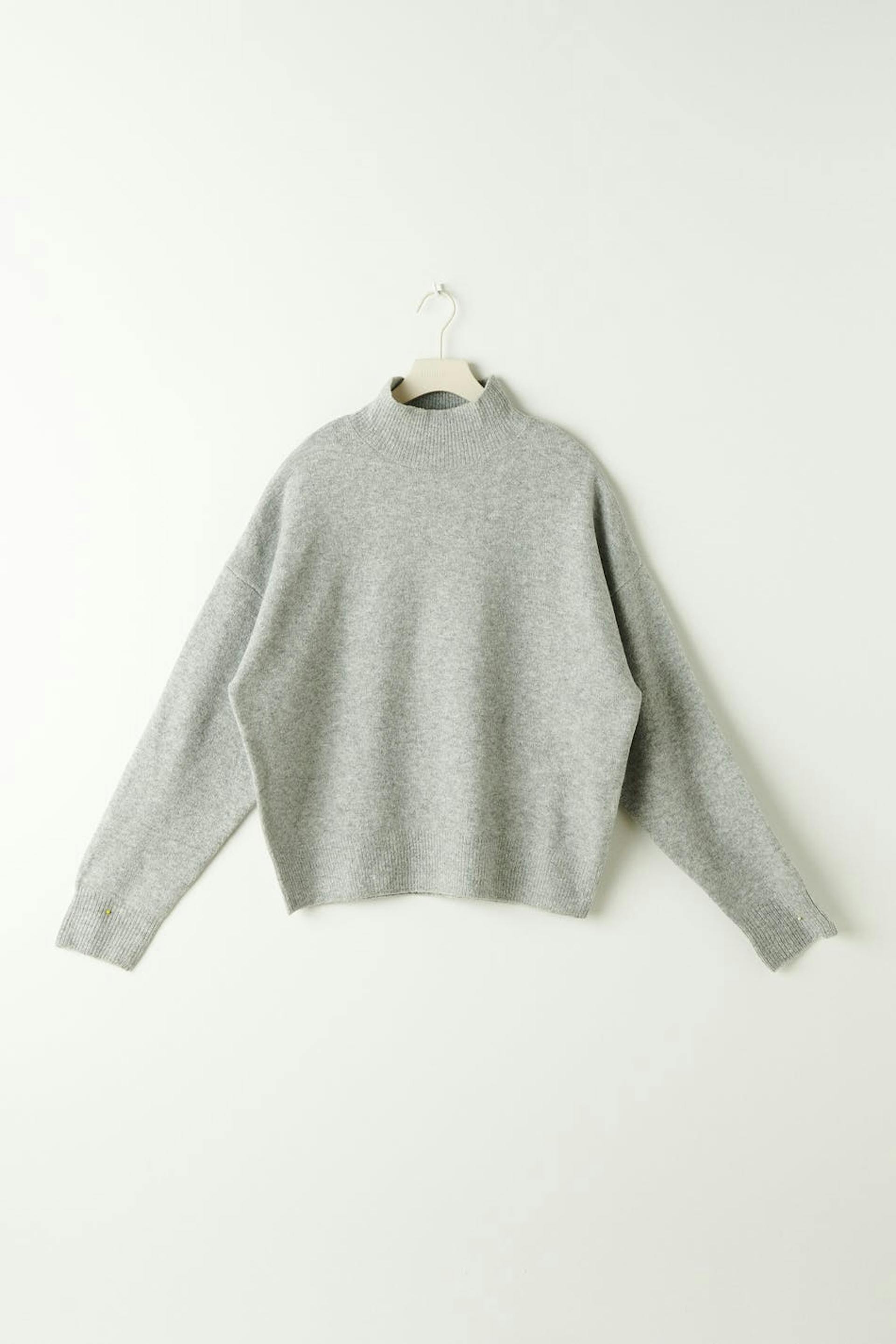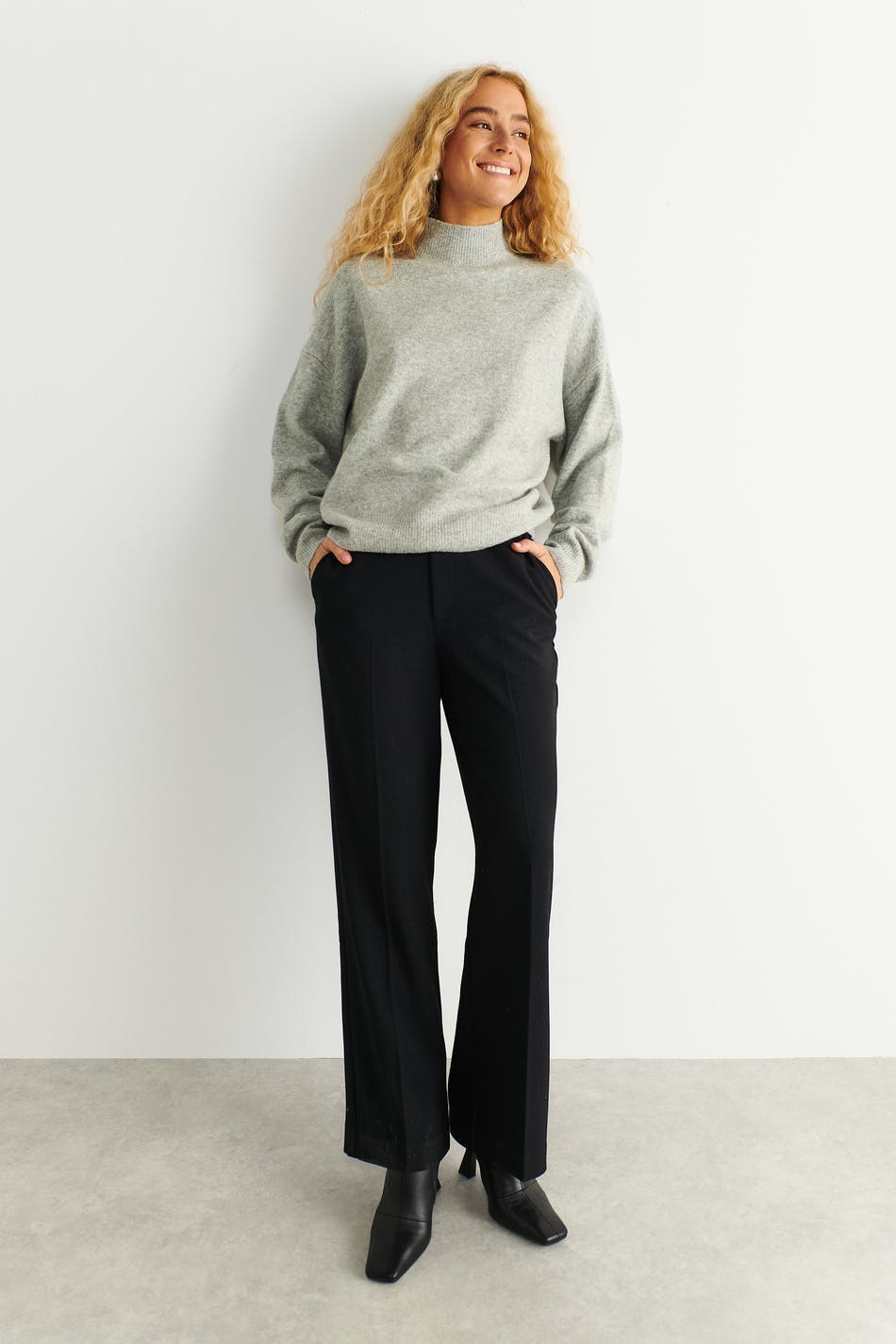 Knitted jumper with turtleneck. The jumper is grey and has a boxy fit. It has dropped shoulders and ribbed hem.