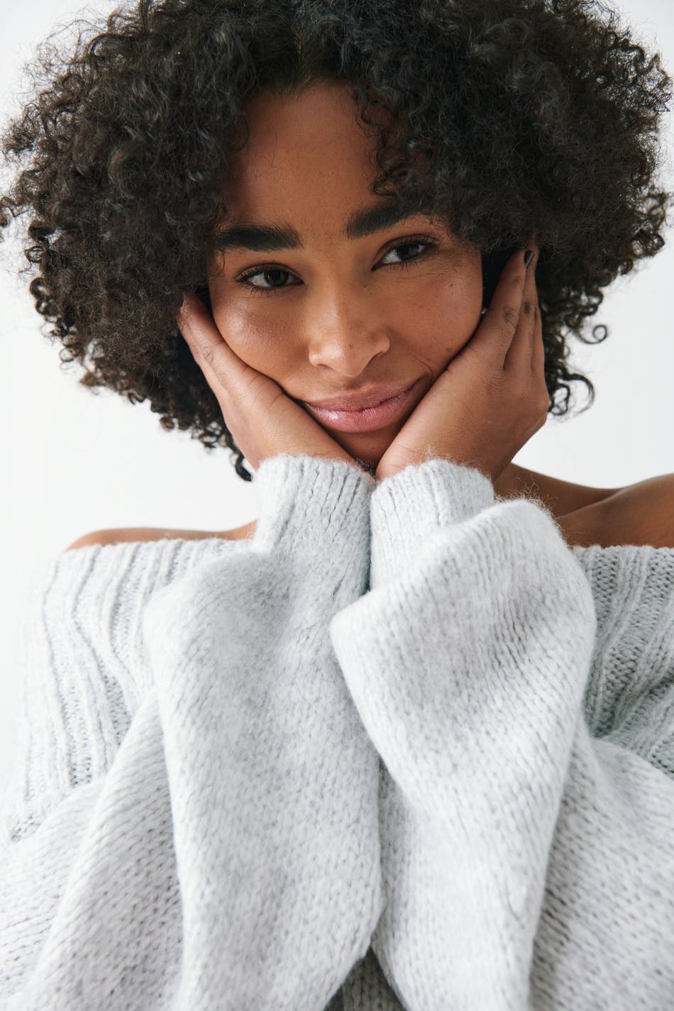 Off shoulder knit sweater