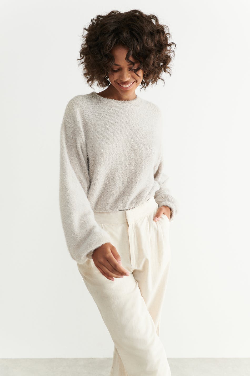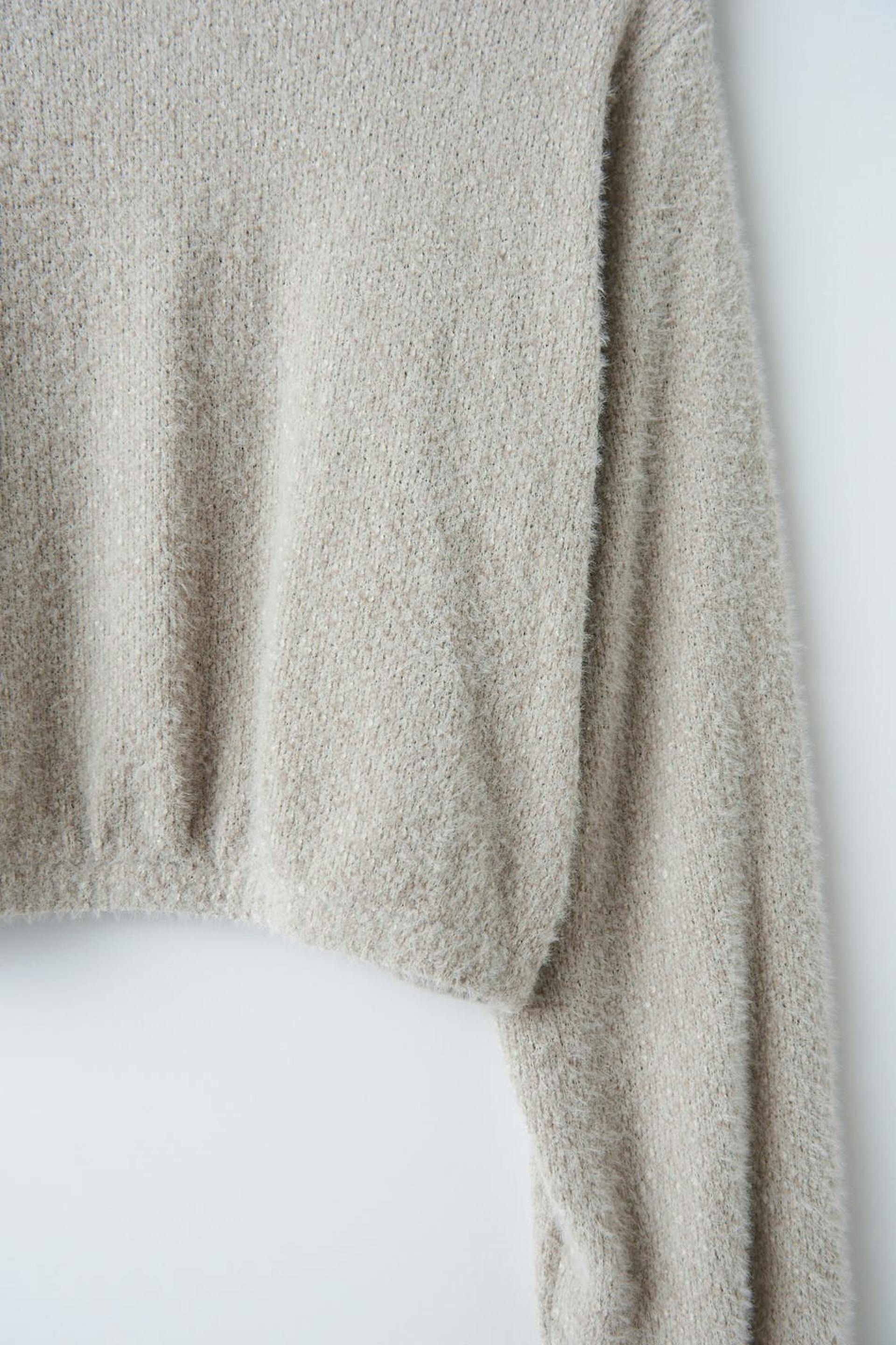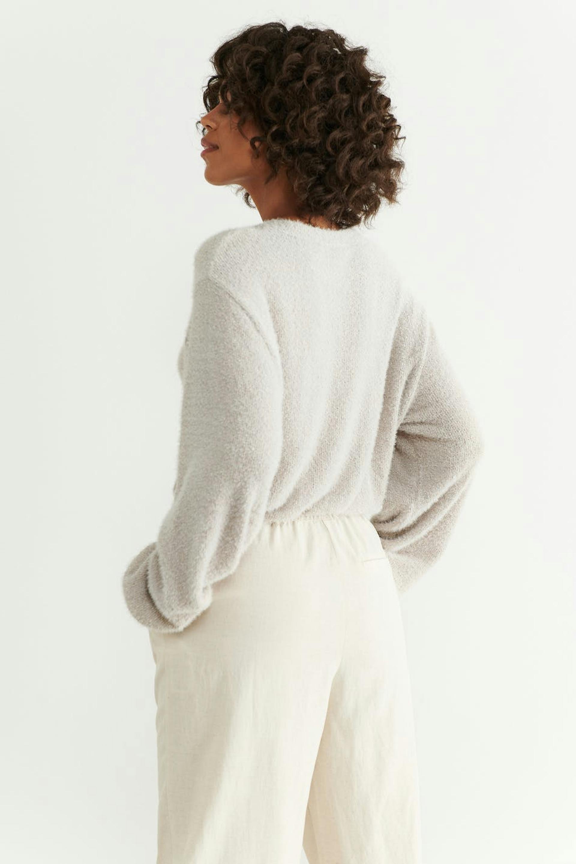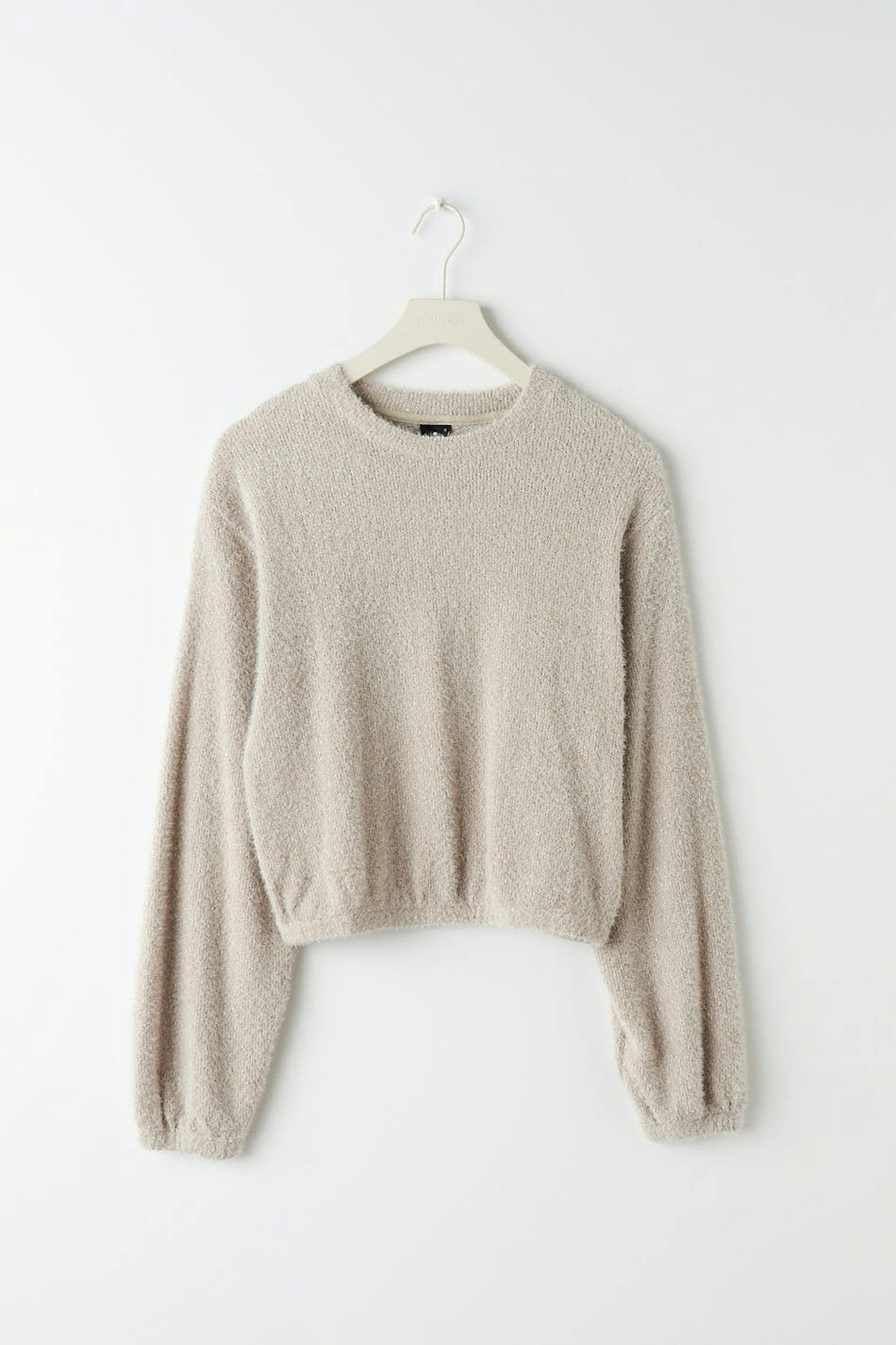 Cropped sweat in jersey with an oversize fit. The sweat is beige and has knitted texture. It has elastic at the waist and on the sleeve ends.