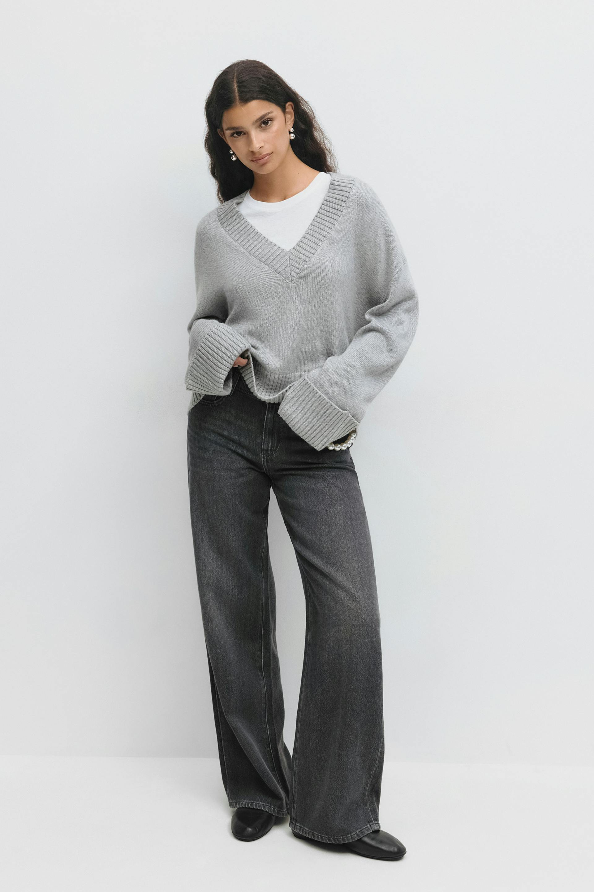 V-neck knitted sweater