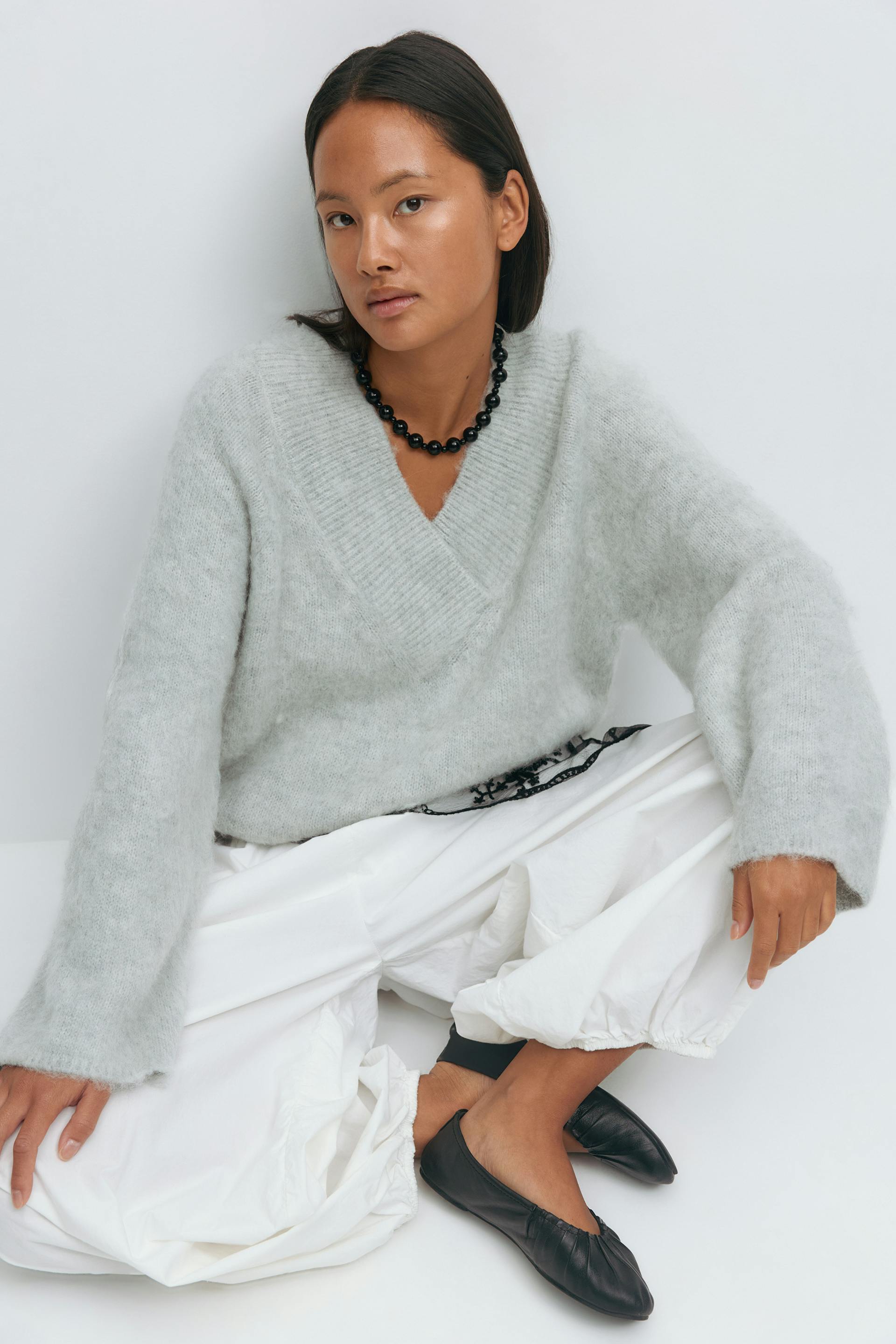 V-neck knitted sweater