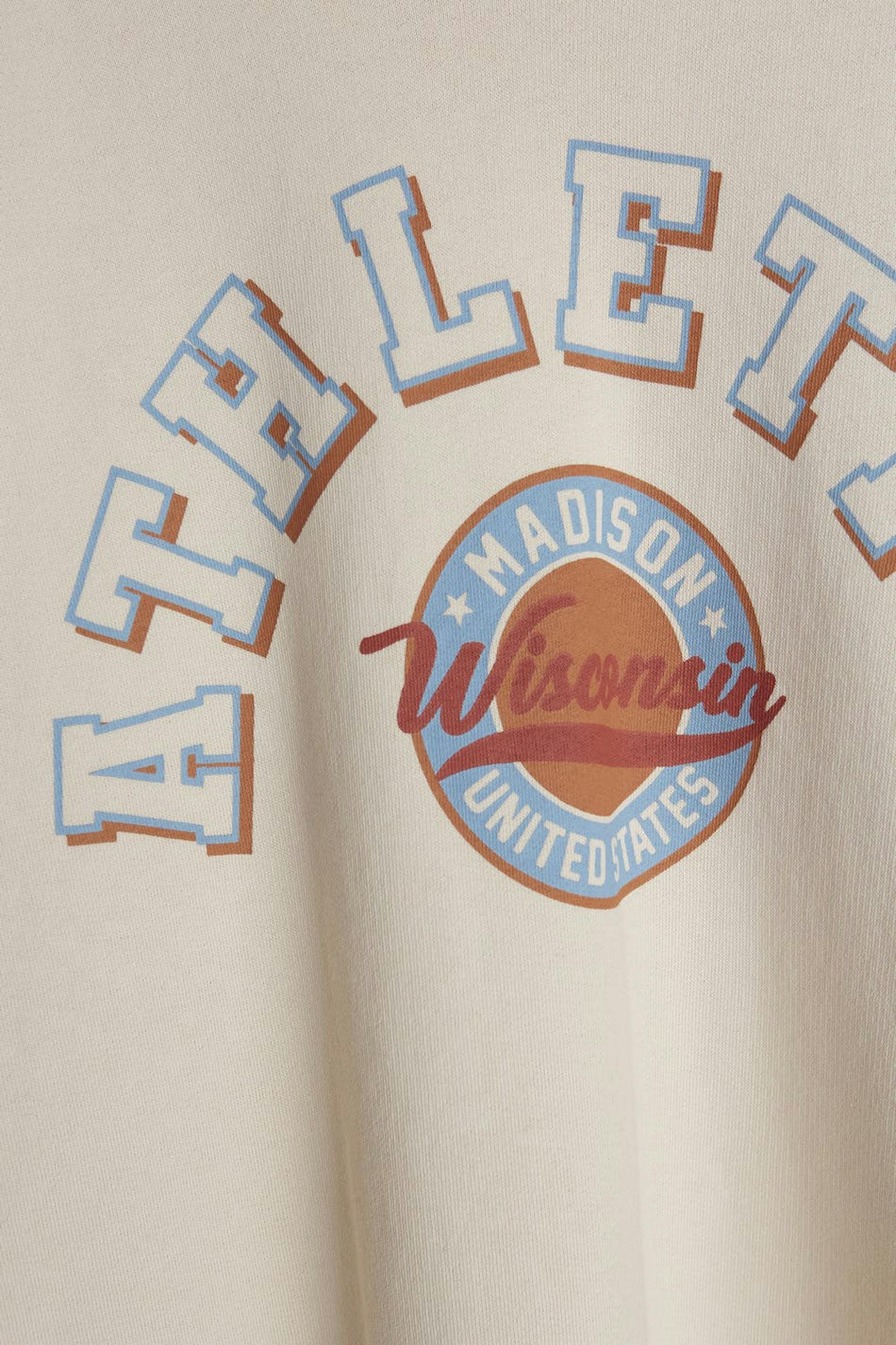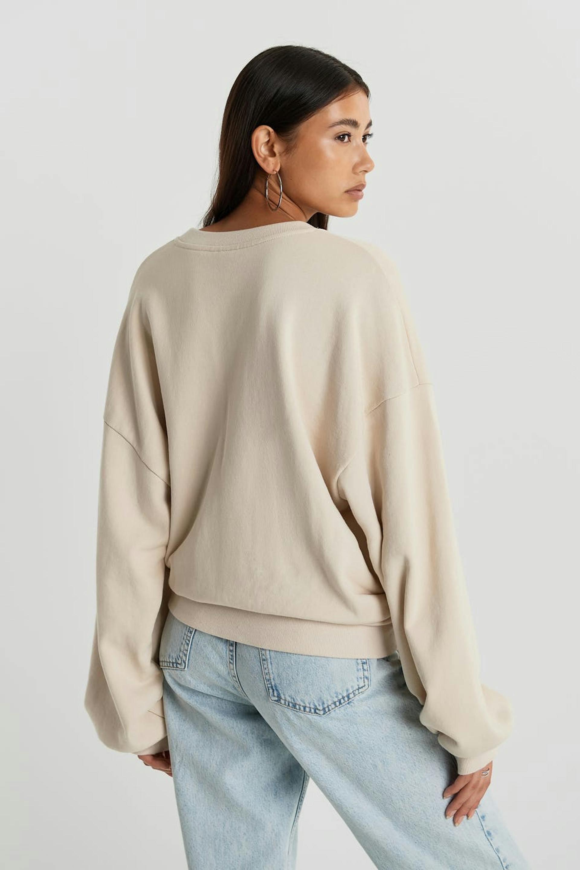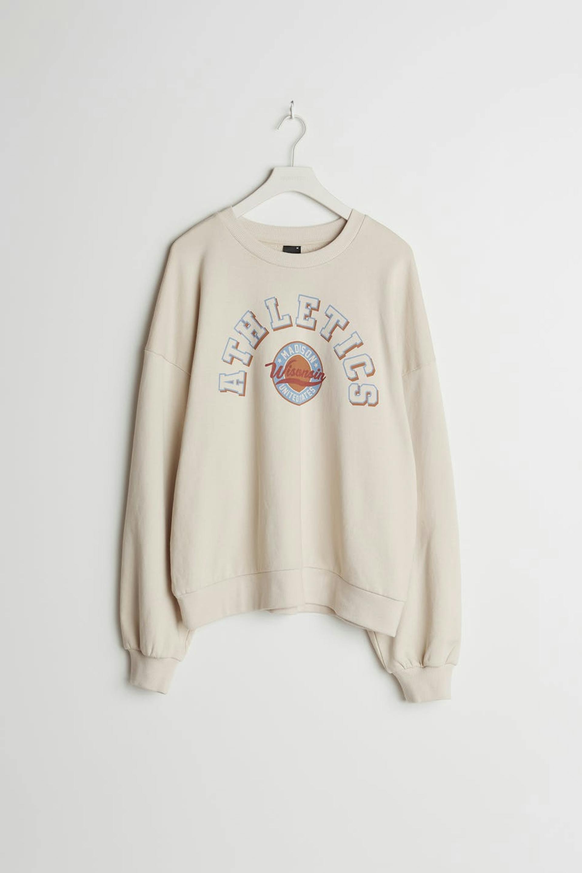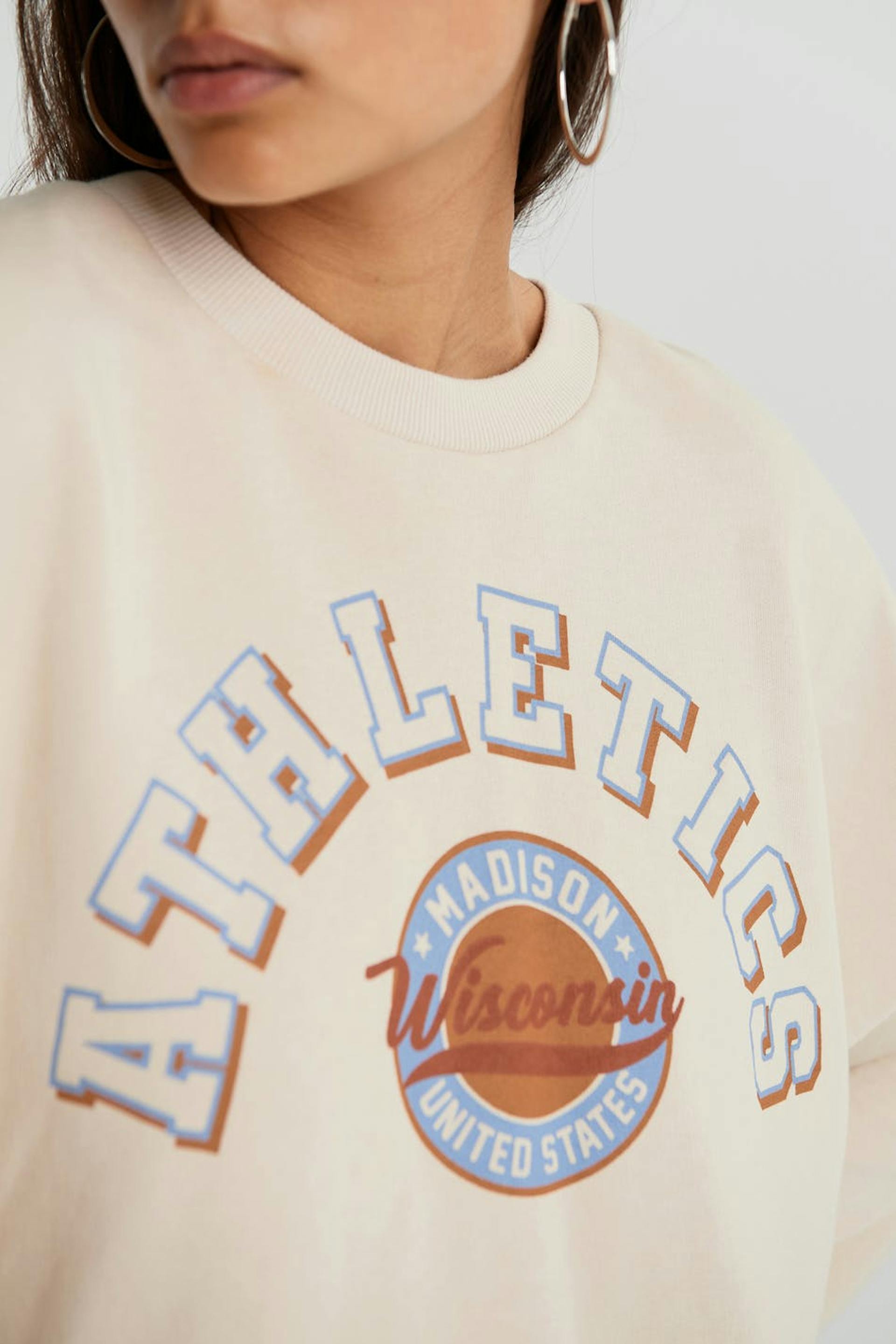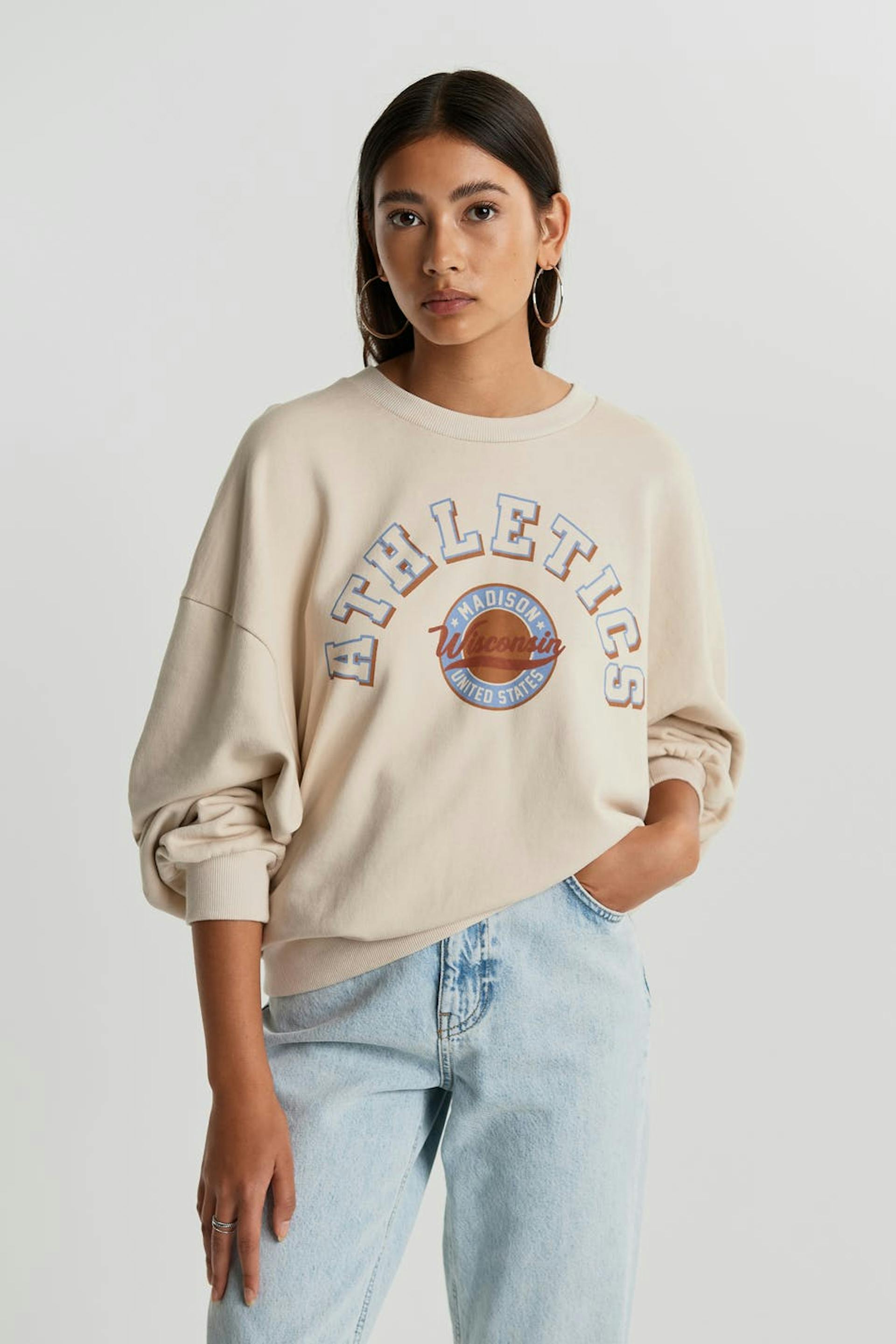 Sweatshirt with a sporty print at the front. The sweatshirt is beige and has an oversize fit.