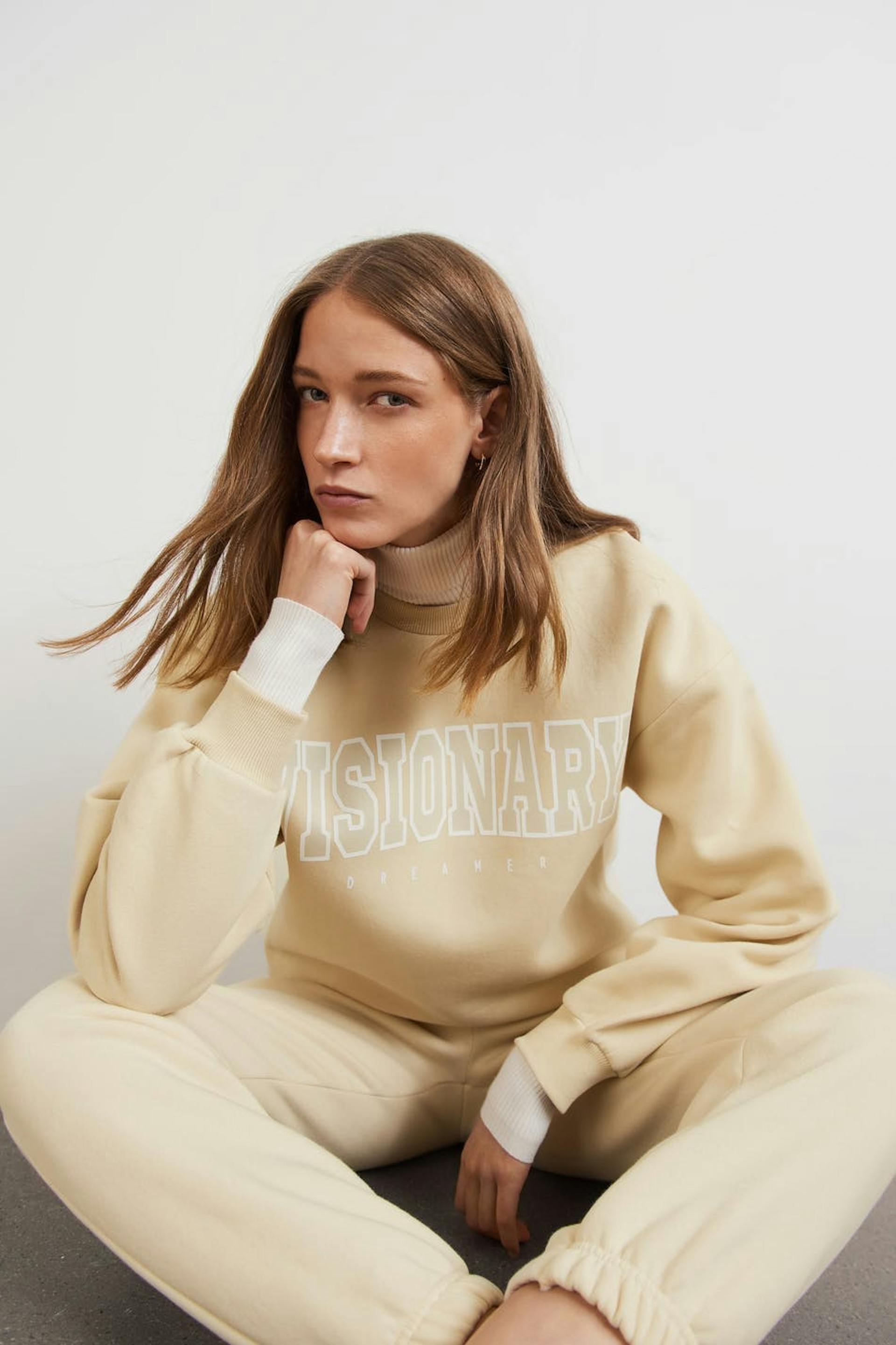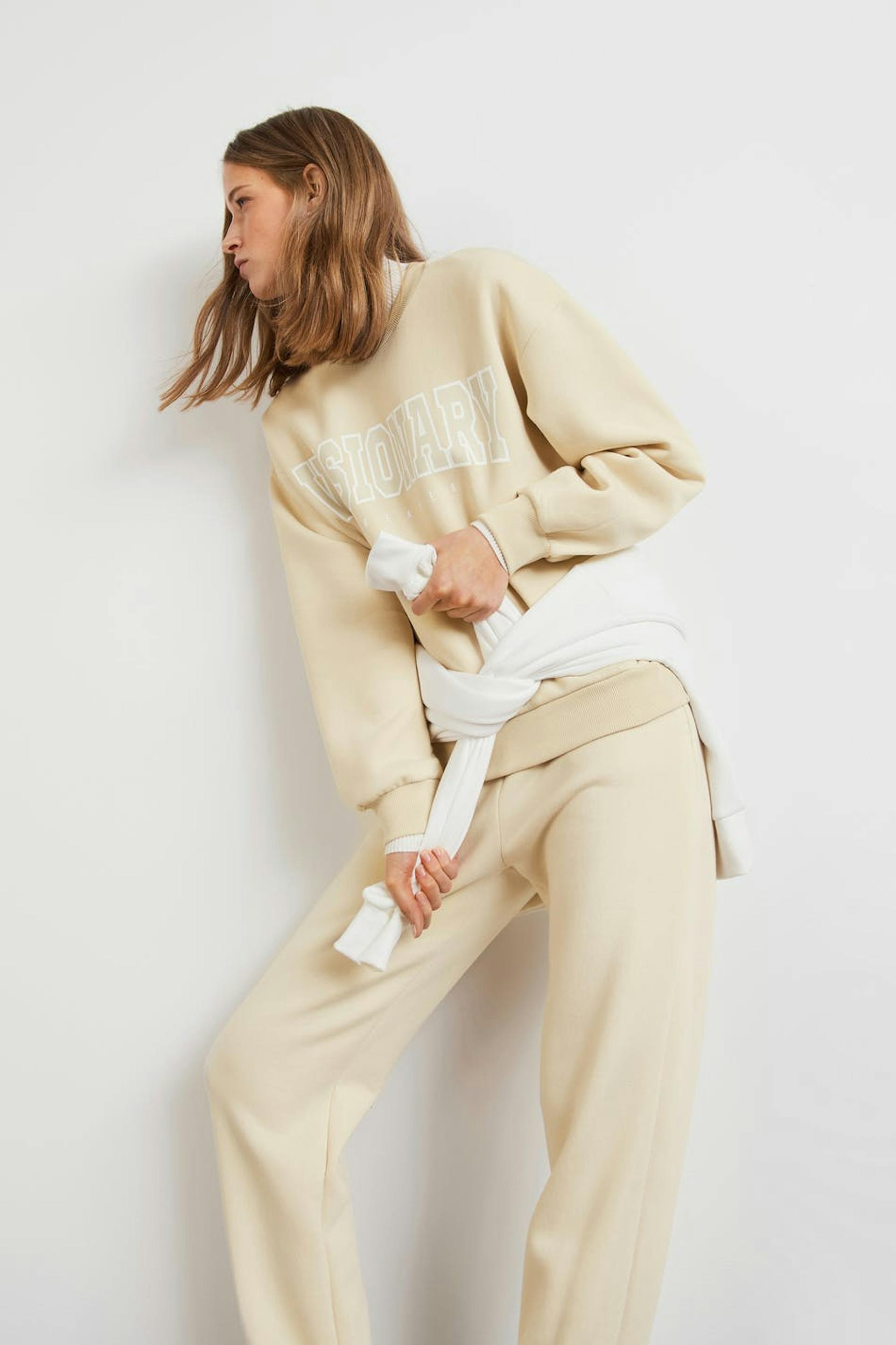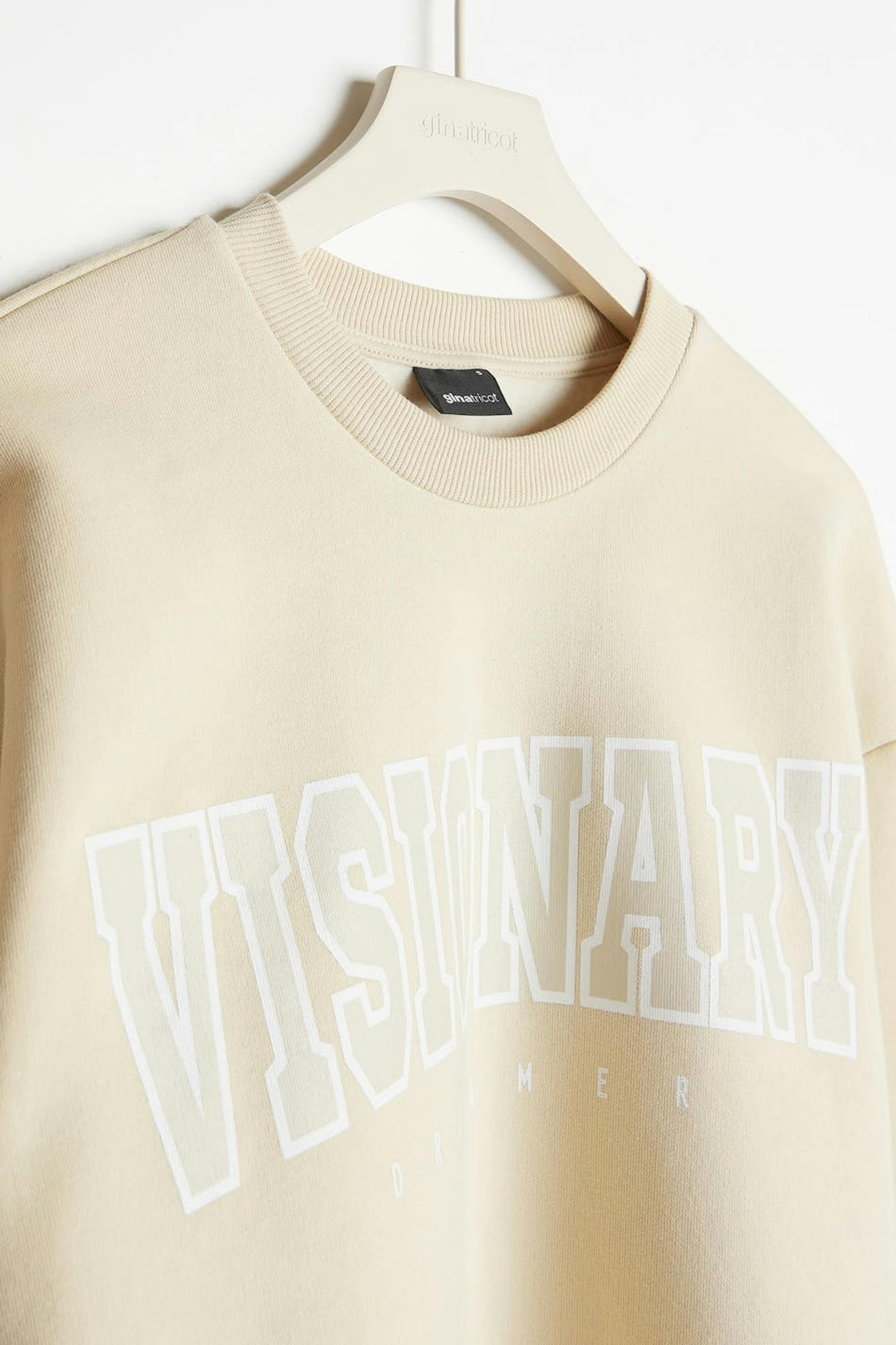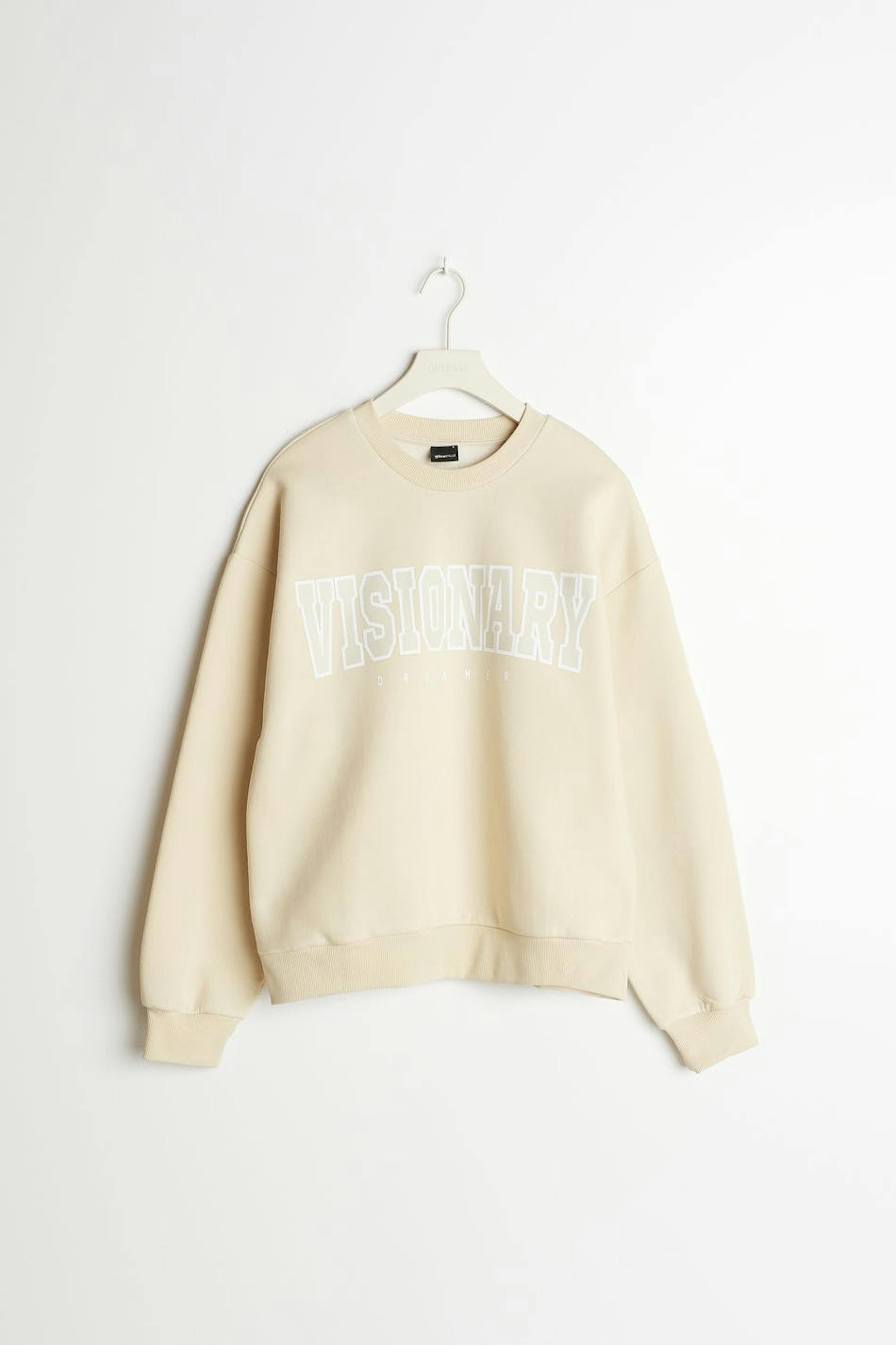 Sweatshirt with print. The sweatshirt is beige and has an oversize fit. It has a rounded neckline and a ribbed cuff on the sleeve ends and at the bottom hem.