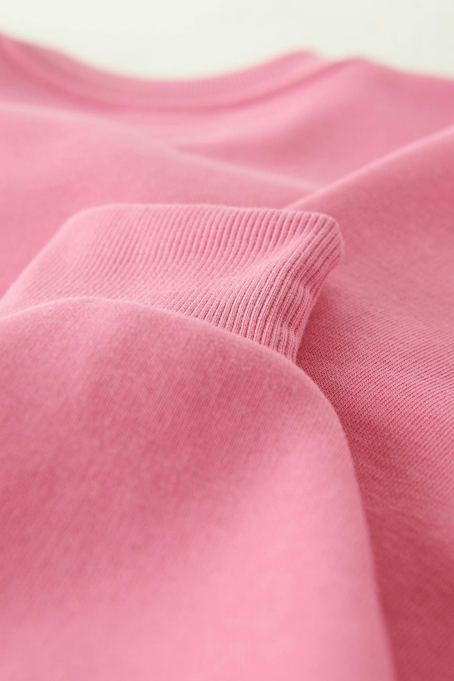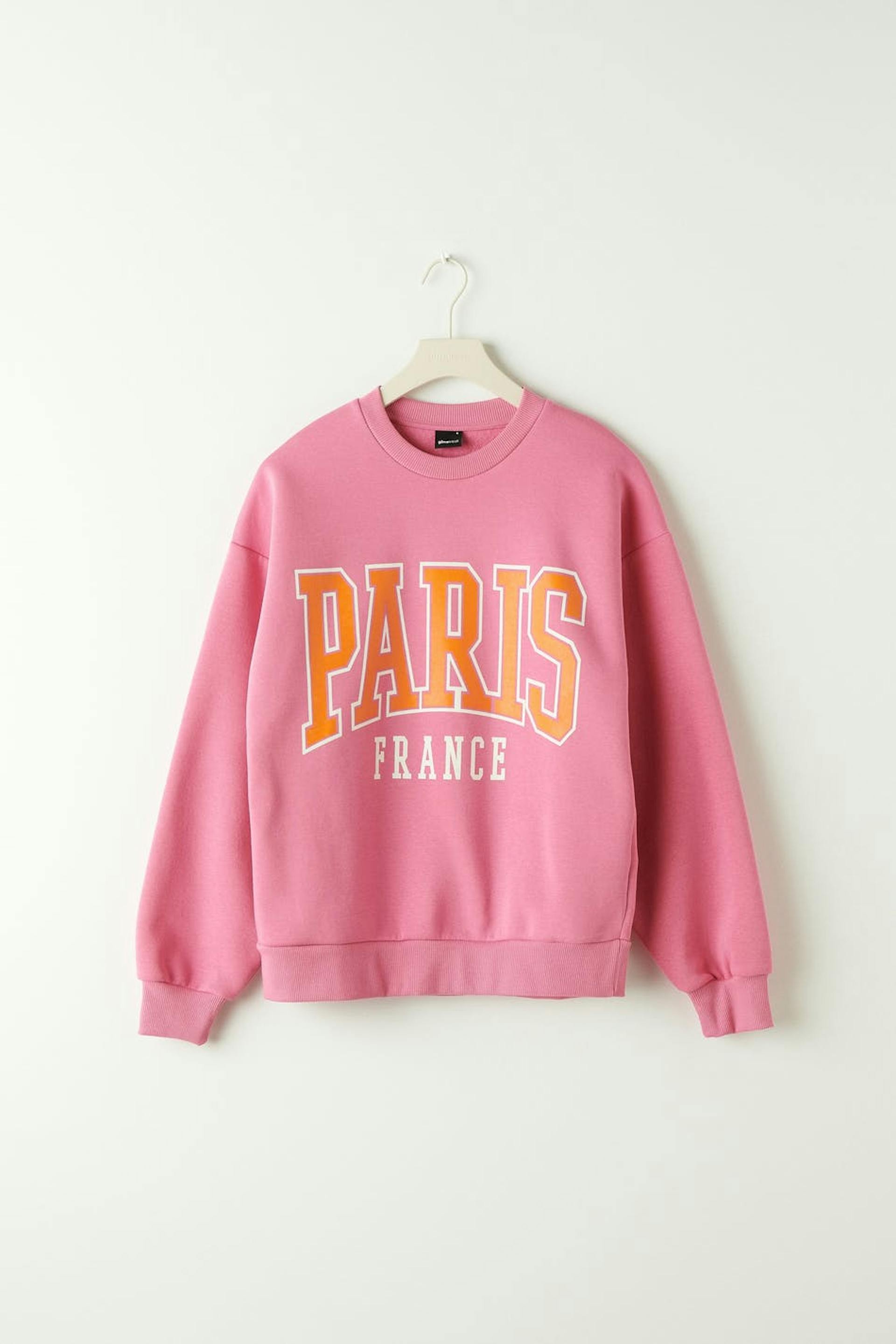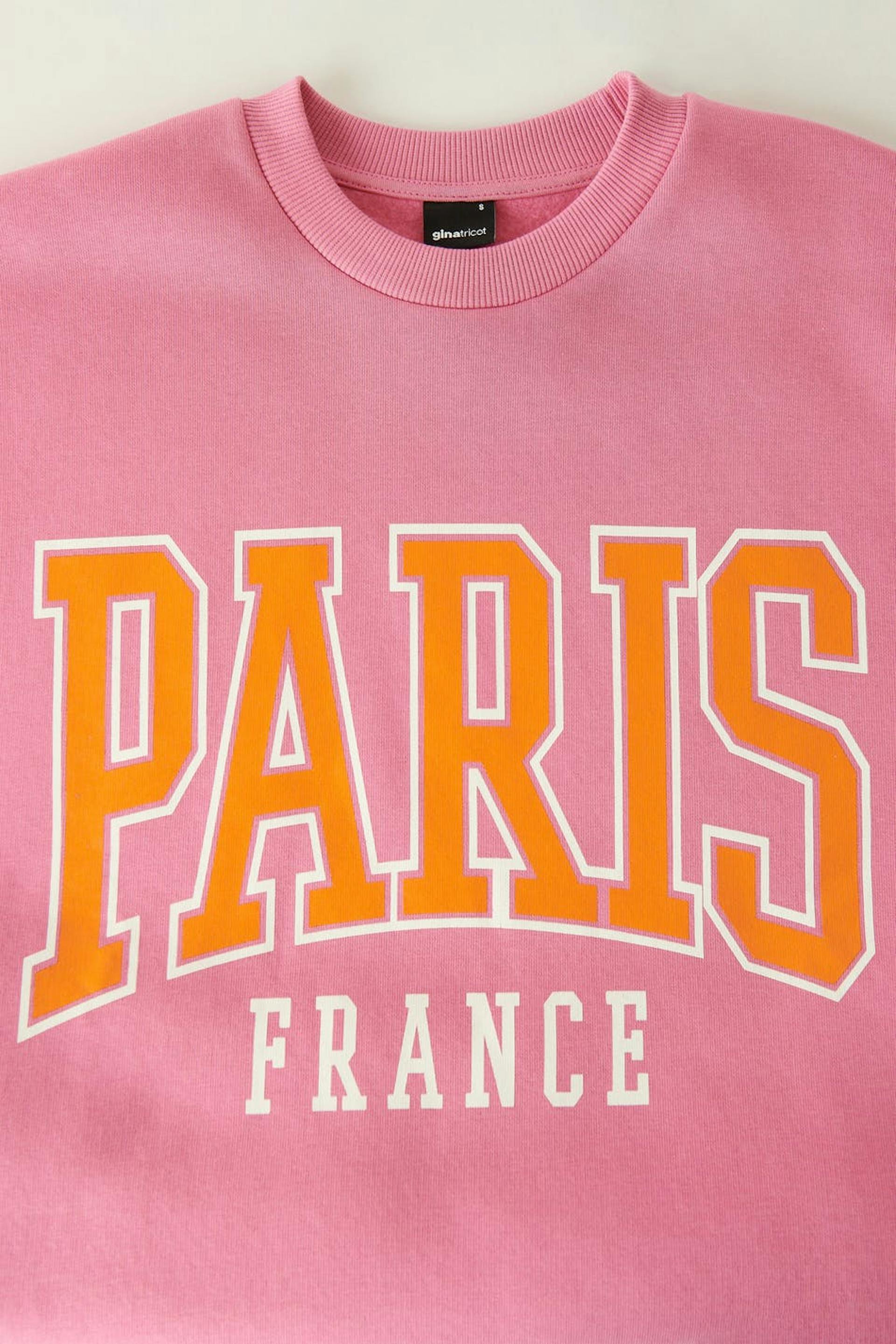 Sweatshirt with print at the front. The sweatshirt is pink and has an oversize fit. It has a rounded neckline and a ribbed cuff on the sleeve ends and at the bottom hem.