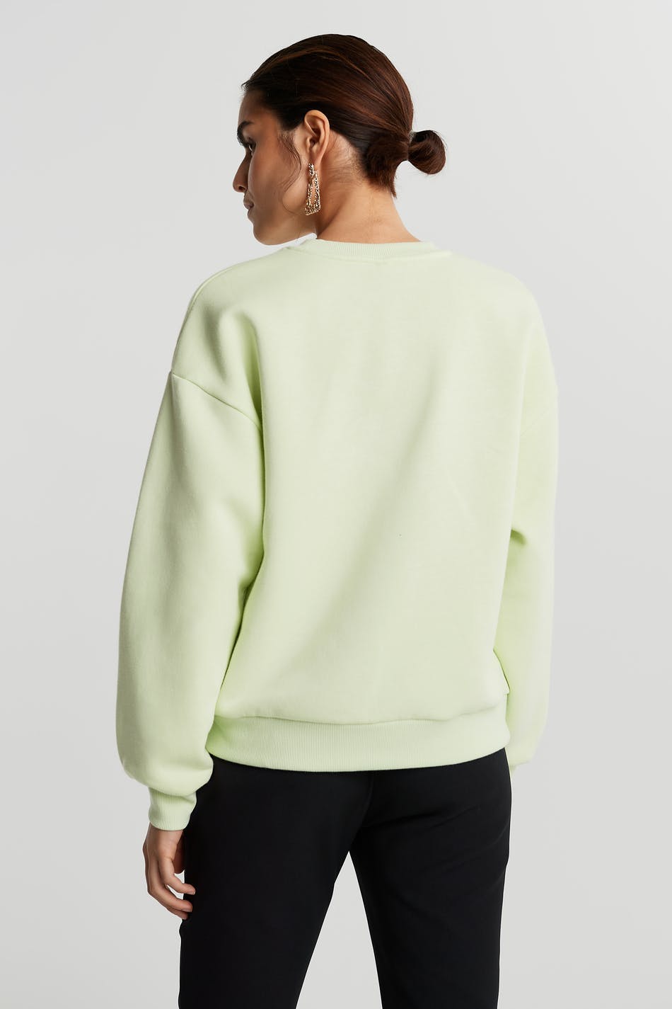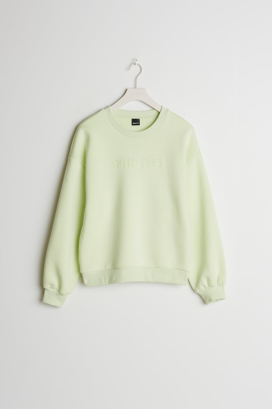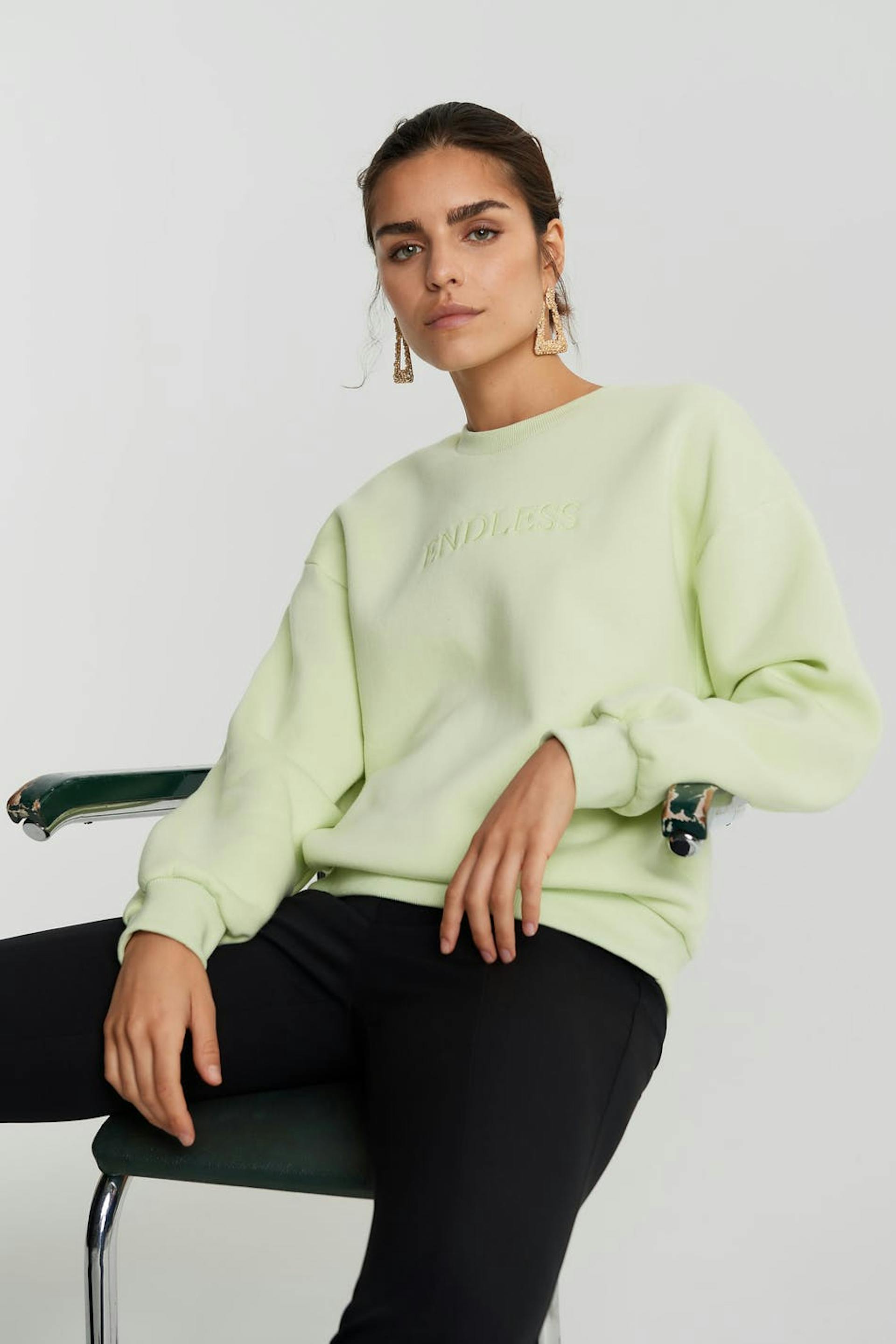 Sweatshirt with embroidery at the front. The sweatshirt is light green and has an oversize fit.