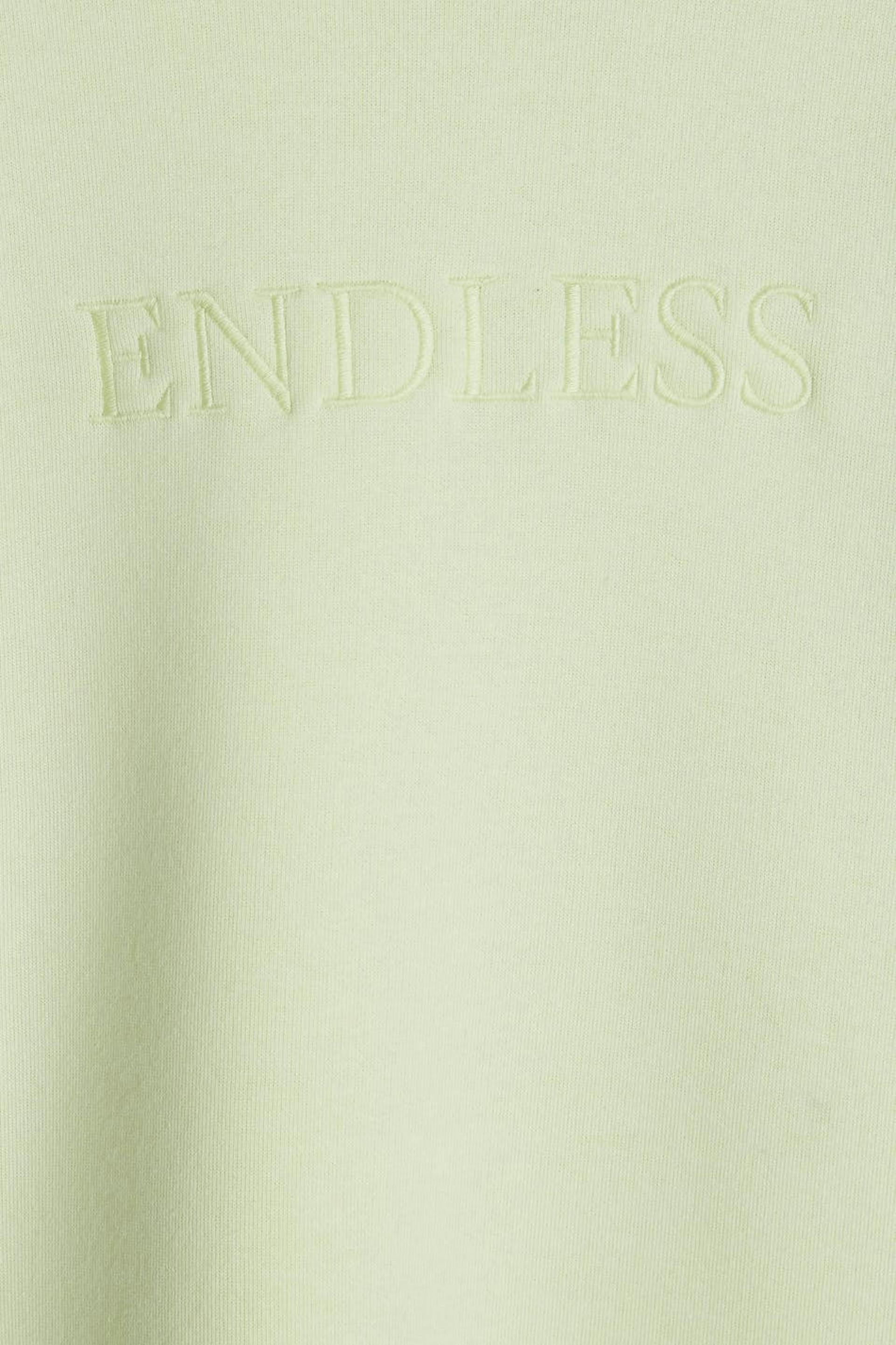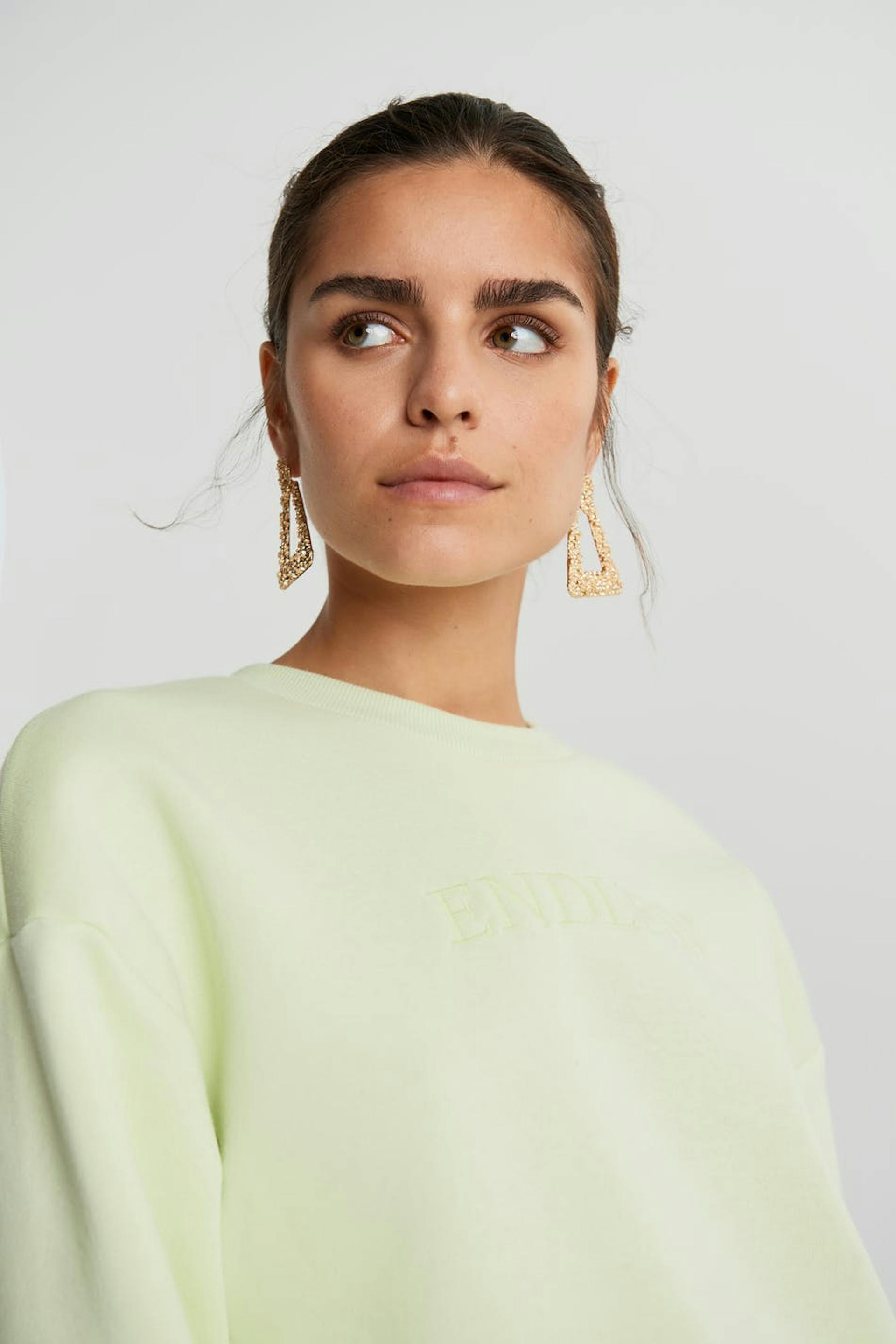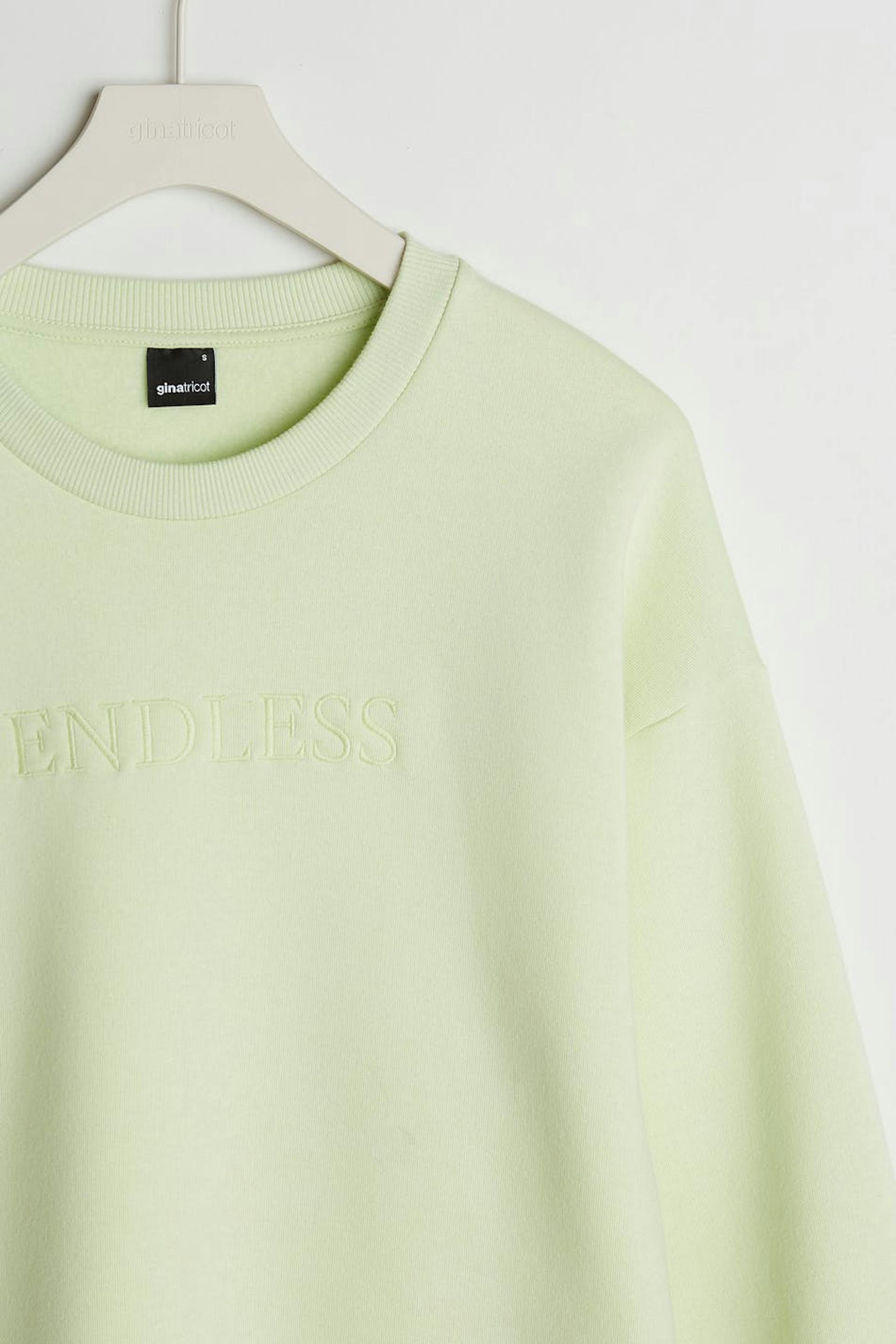Sweatshirt with embroidery at the front. The sweatshirt is light green and has an oversize fit.