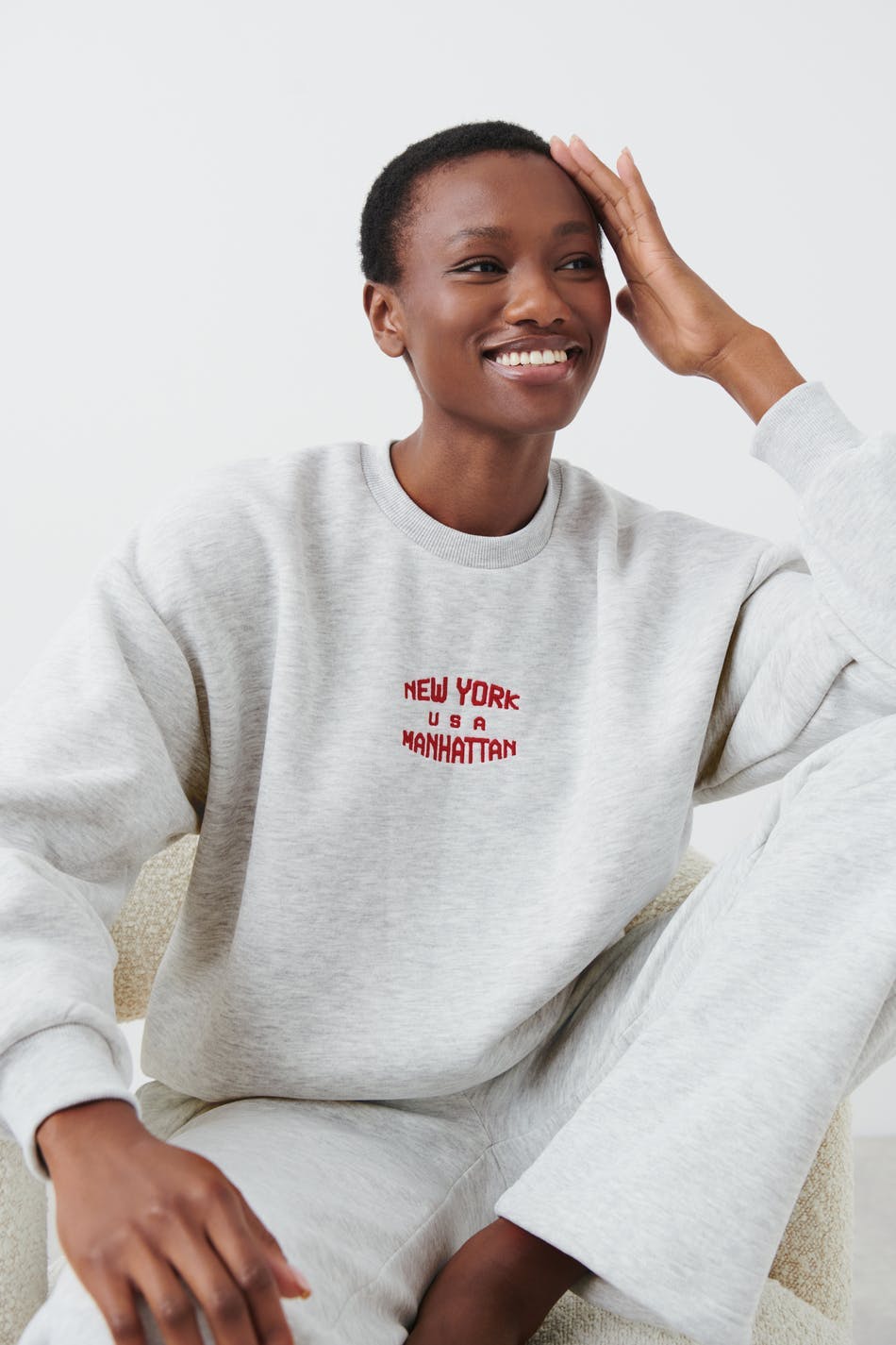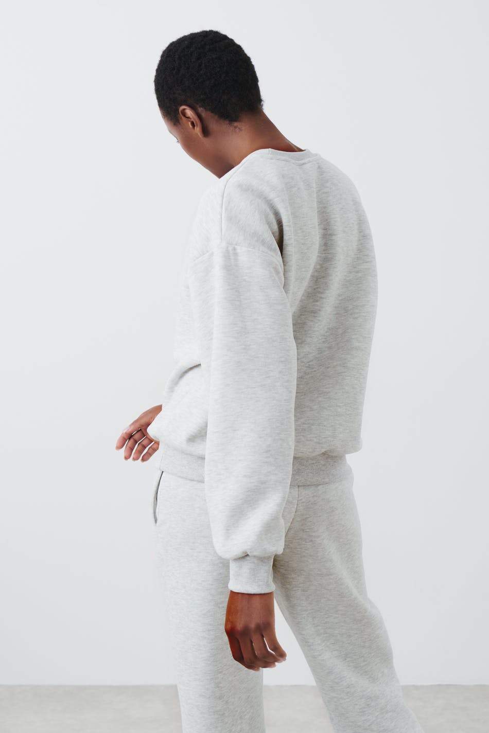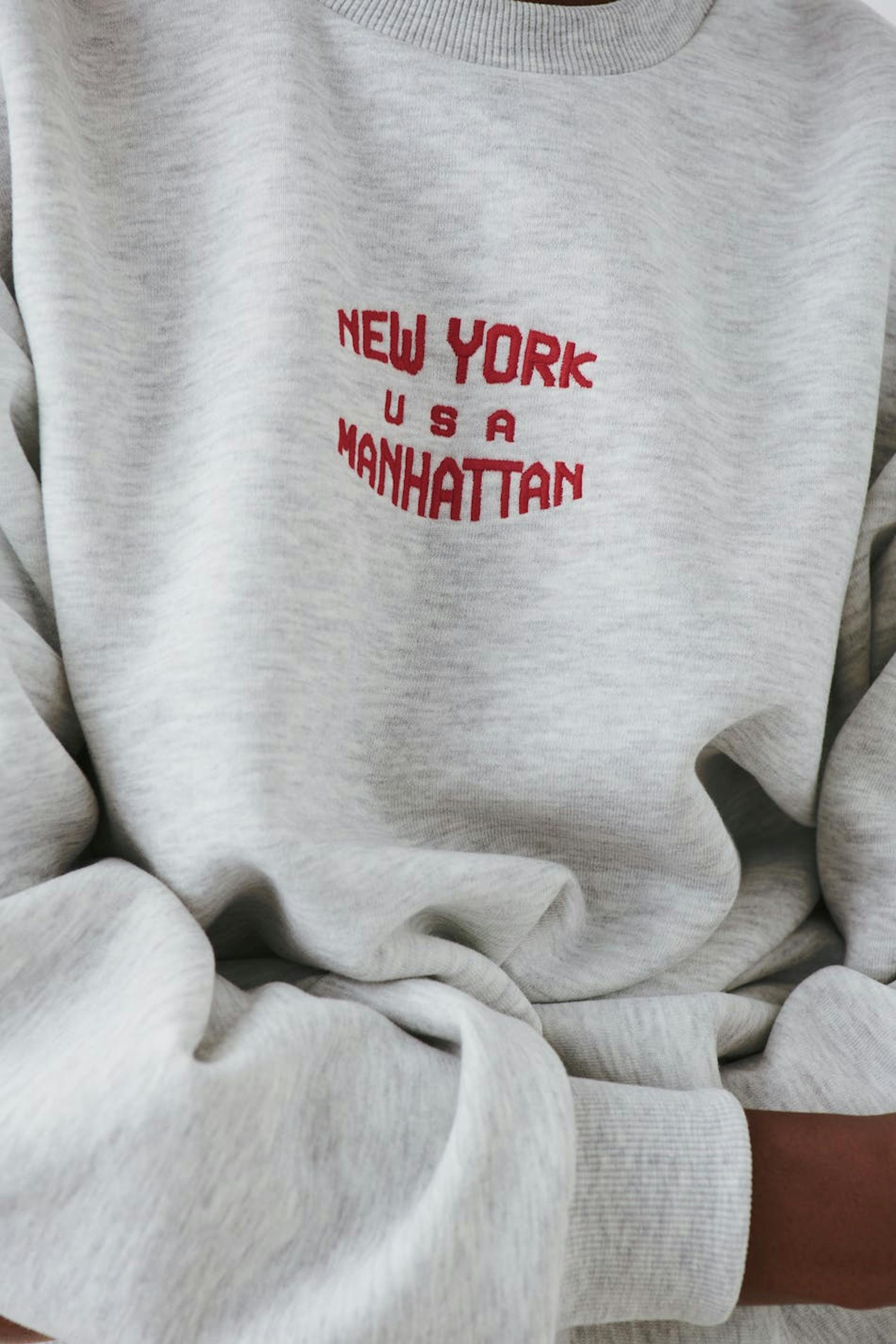 Sweatshirt with print. The sweatshirt is grey and has oversize fit. It has rounded neckline and ribbing on the sleeve ends and at the bottom hem.
