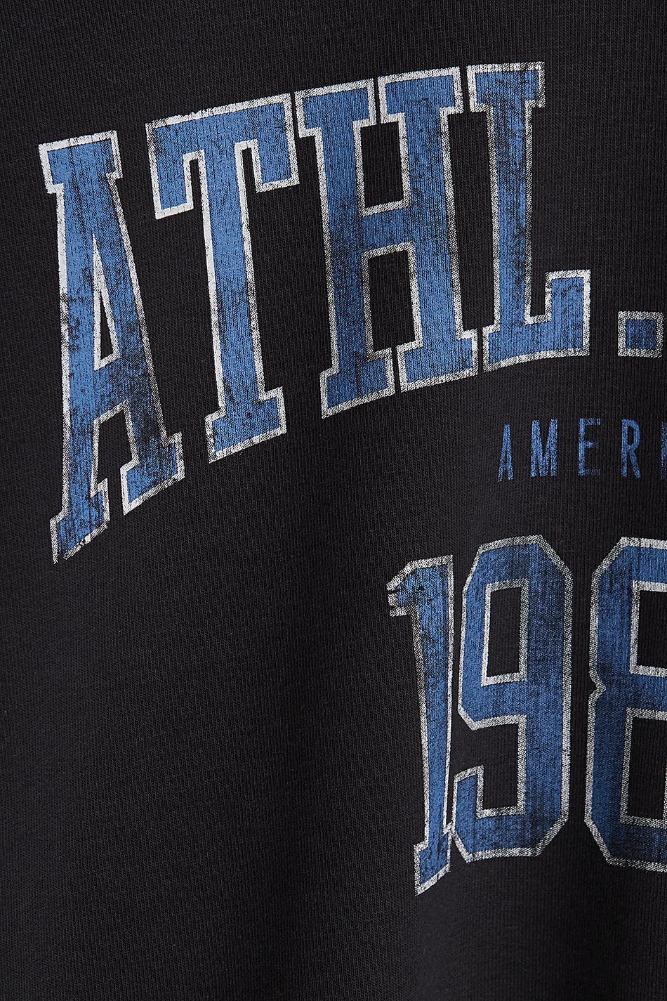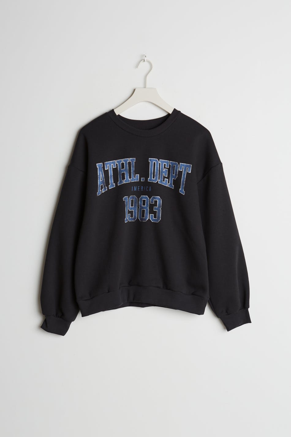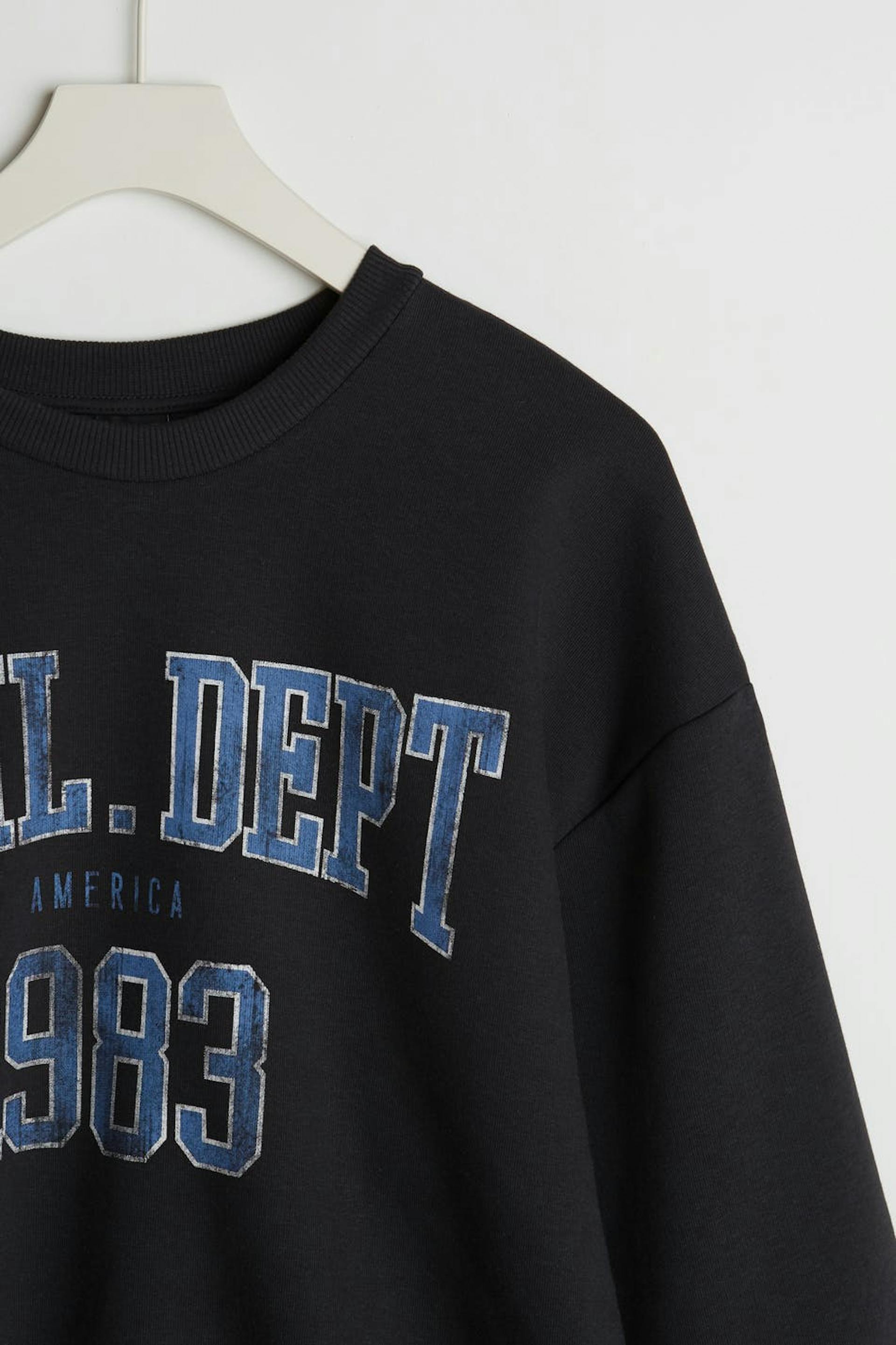 Sweatshirt with a sporty, blue print at the front. The sweatshirt is black and has an oversize fit.