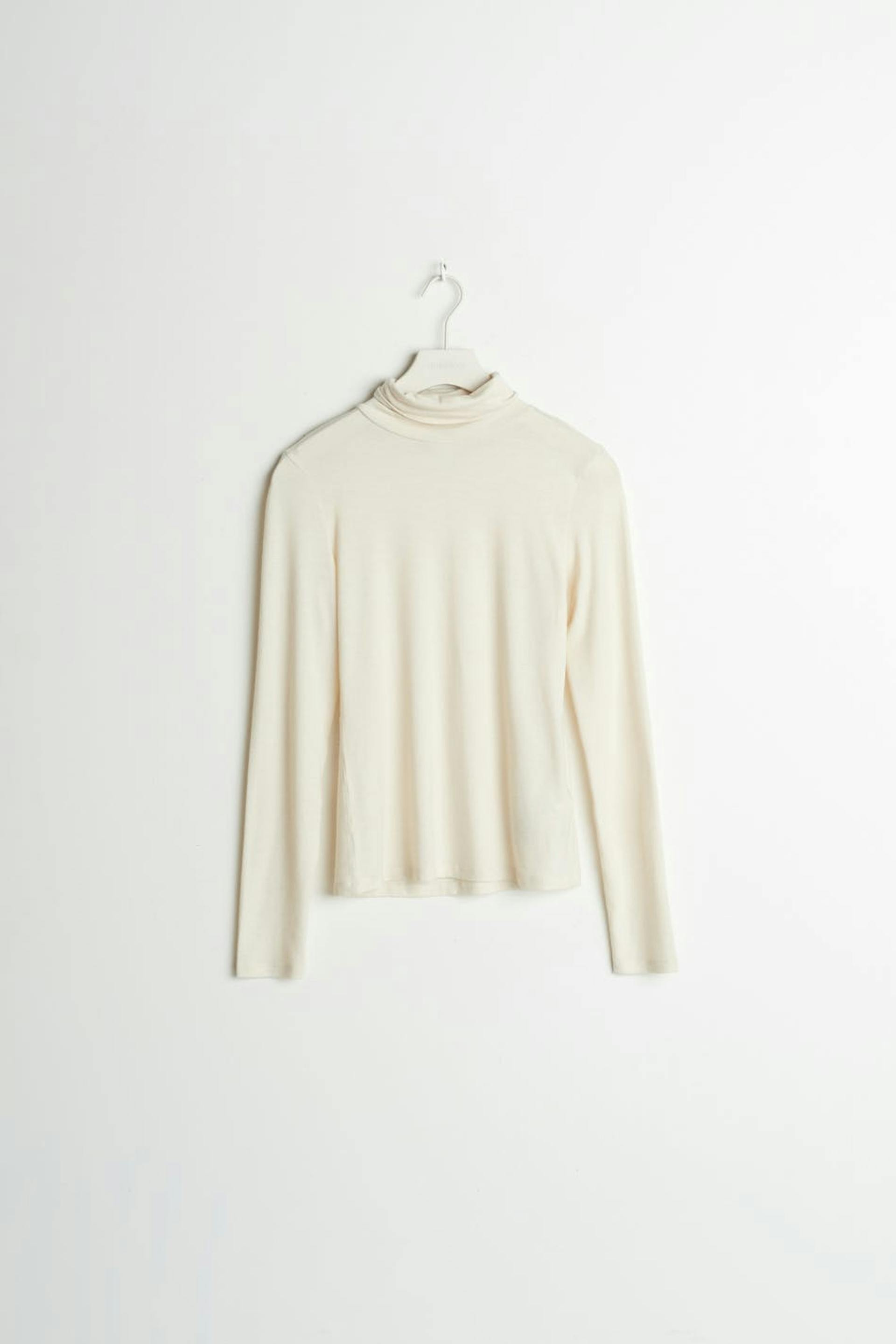 Soft turtleneck top with a fitted fit. The top is white.