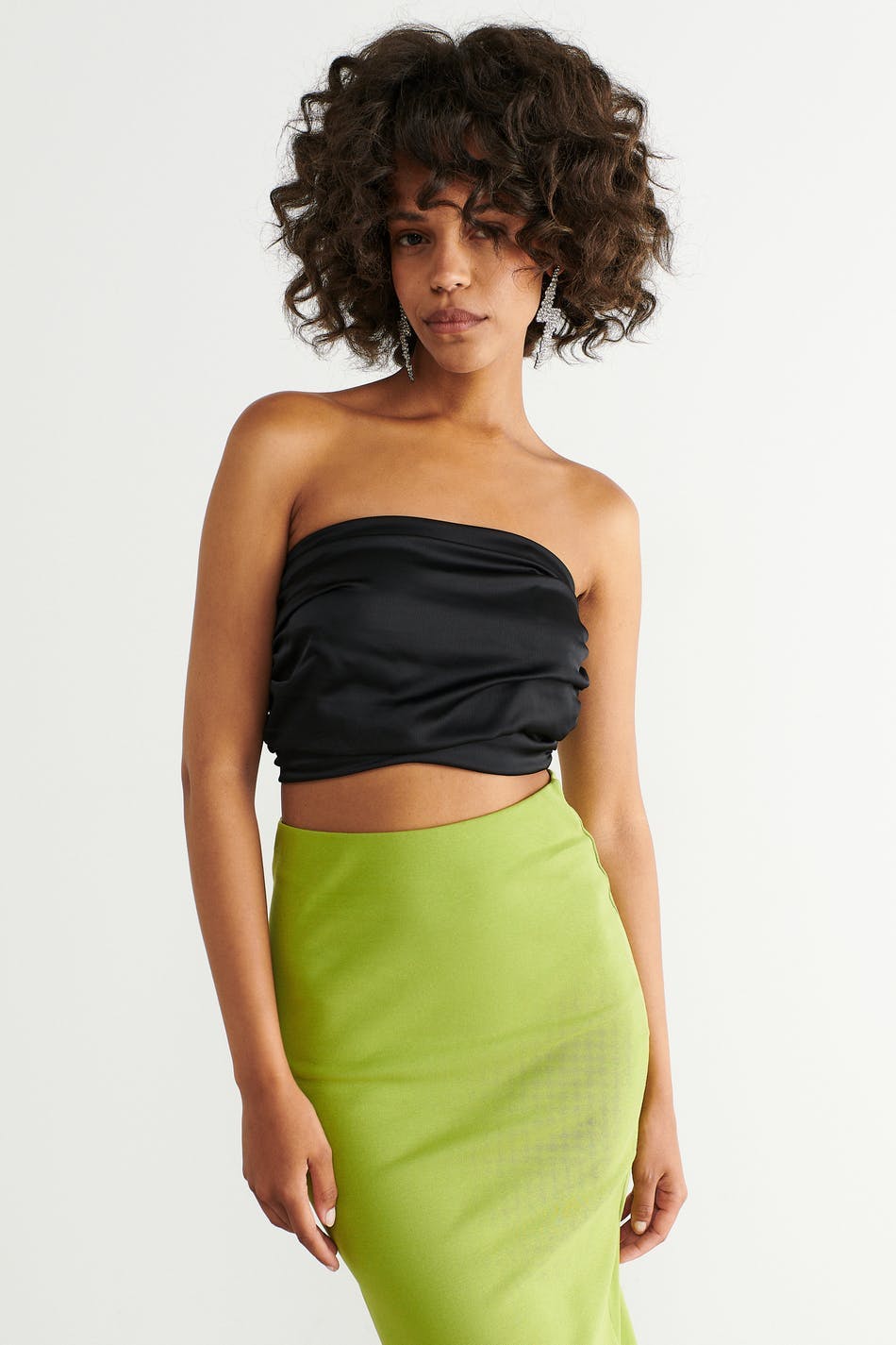 Pleated satin tube top