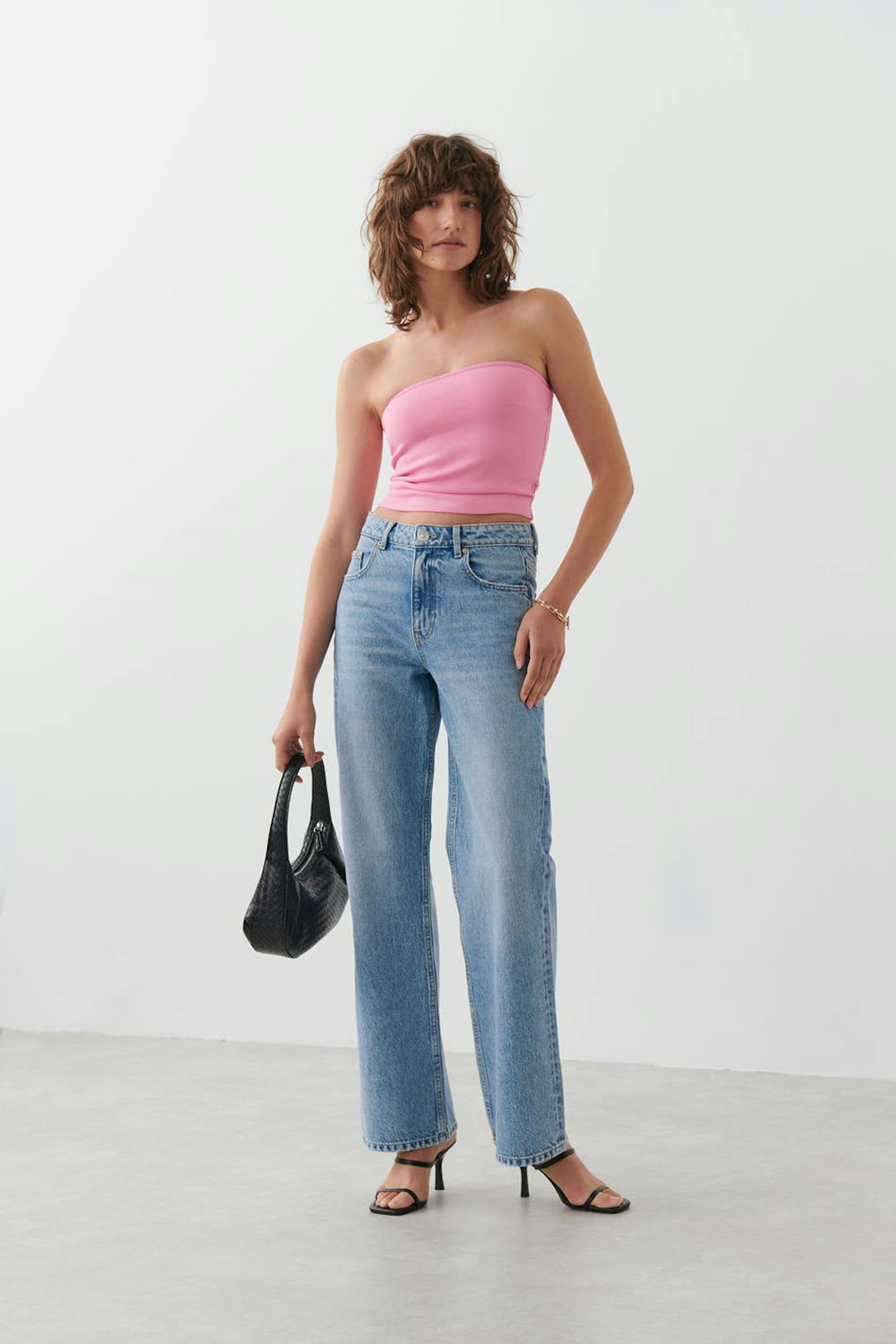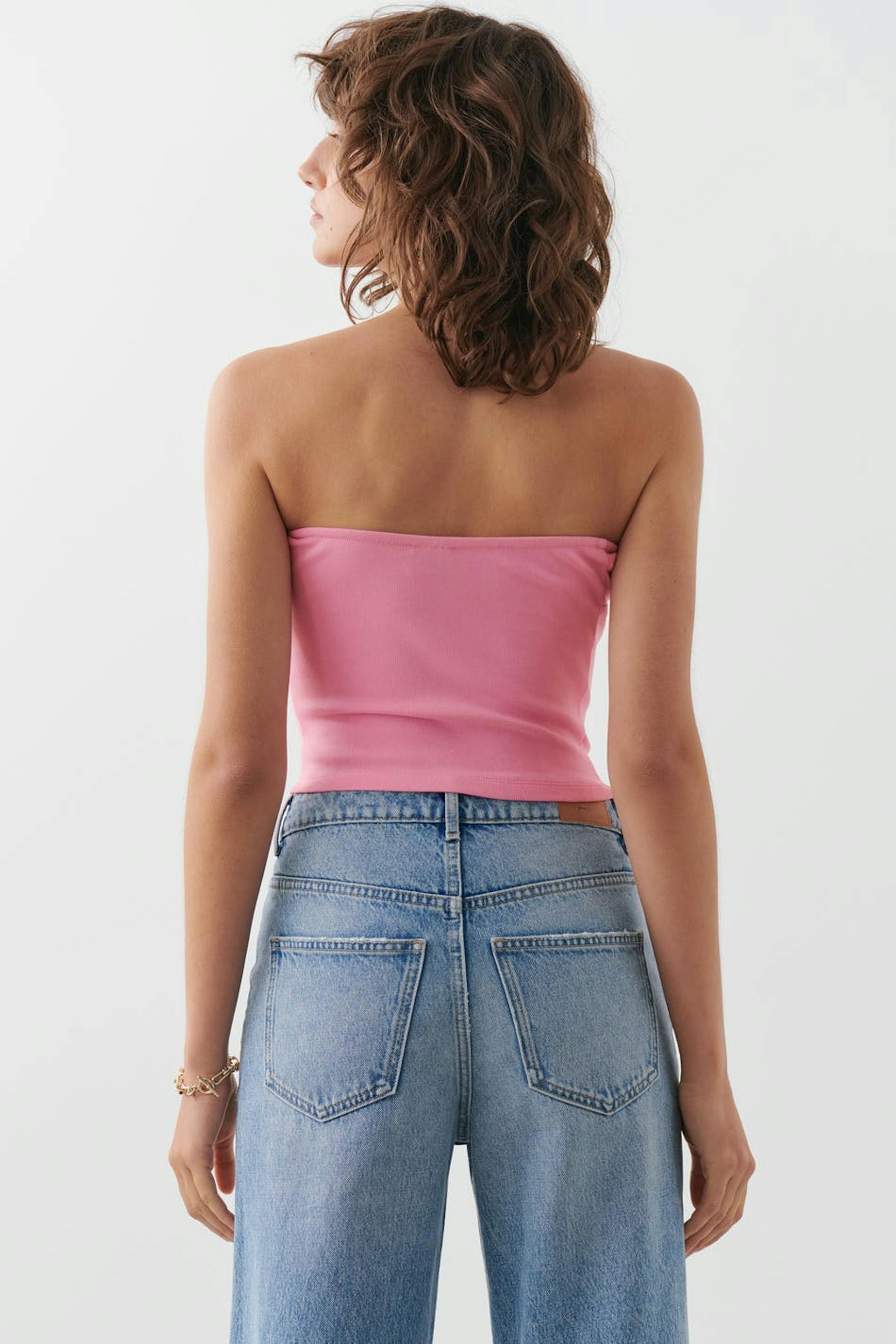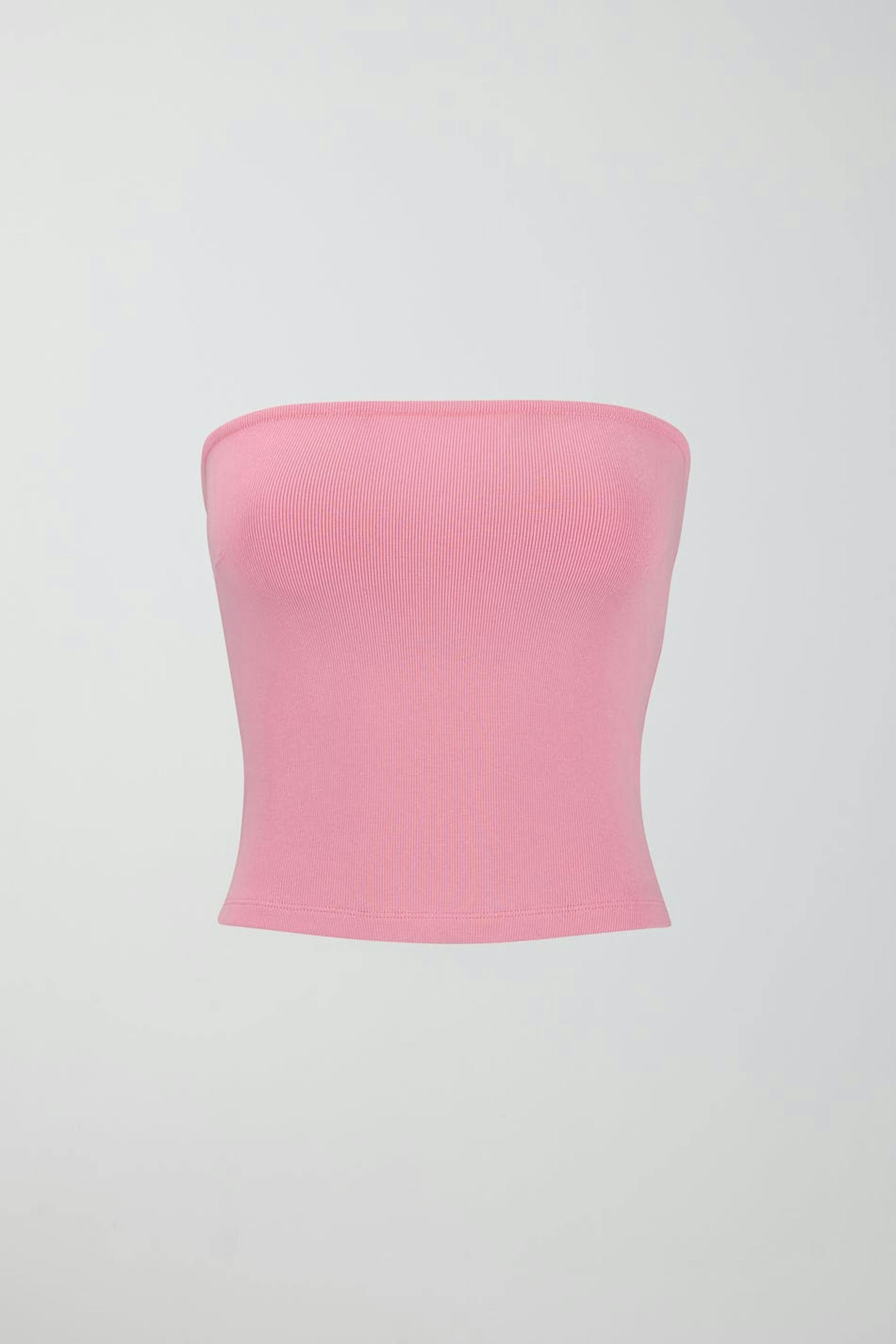 Ribbed tube top in jersey with figure-hugging fit. The top is pink and has cropped length.