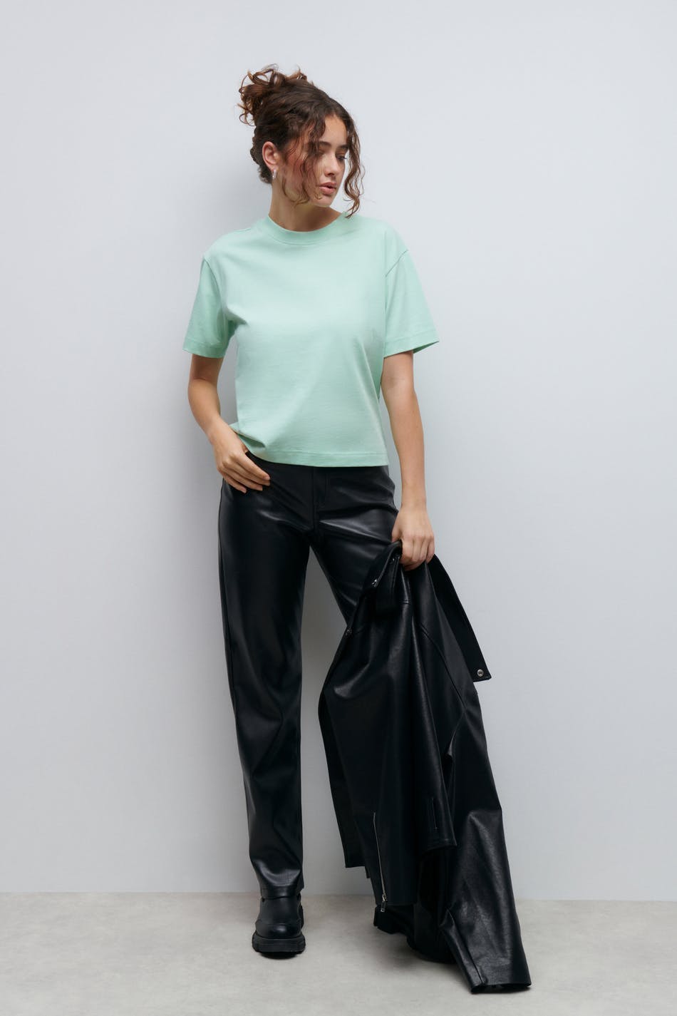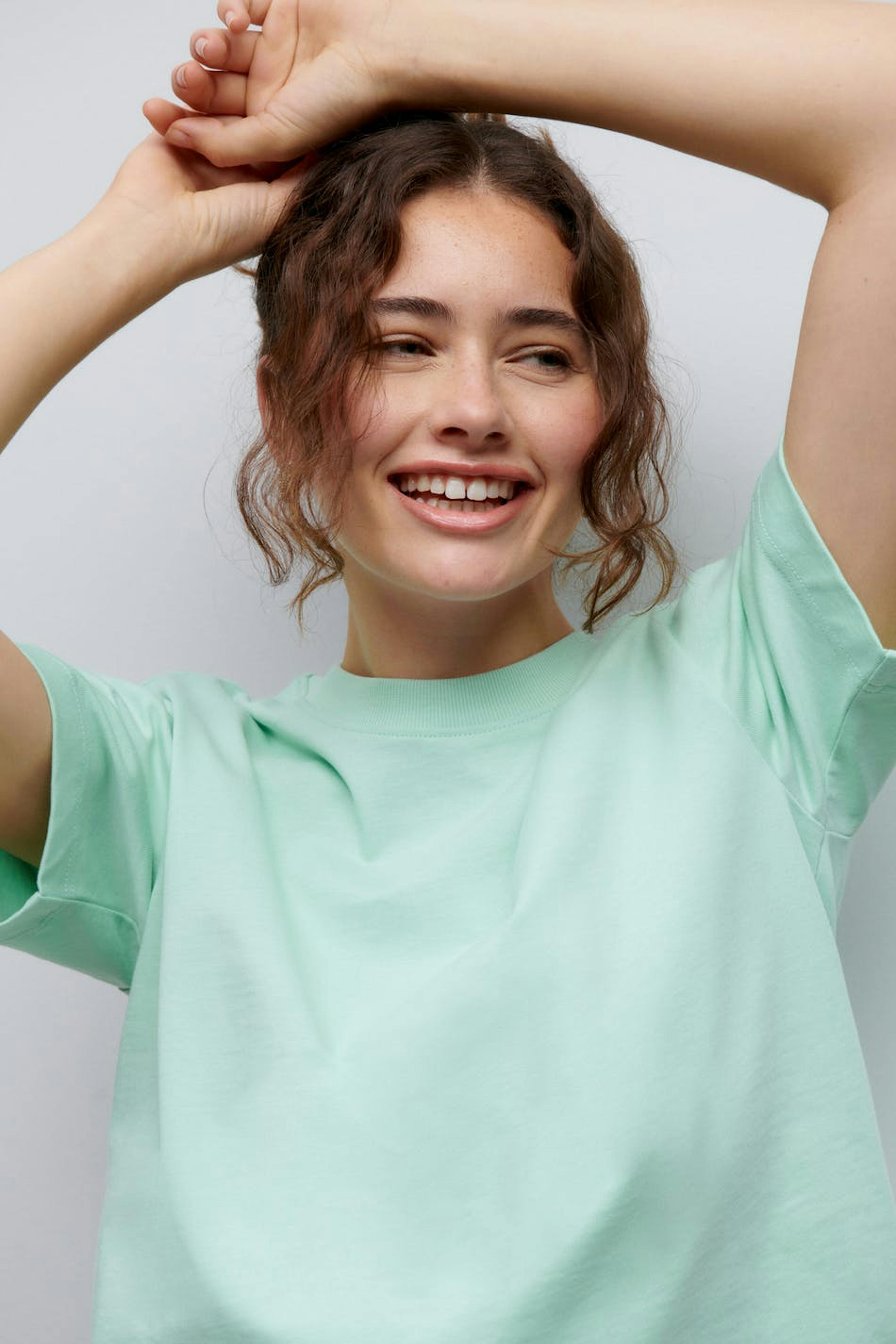 T-shirt with an oversize fit. The t-shirt is green and has an oversize fit. It has a soft, heavy material in cotton and a ribbed cuff on the neckline.