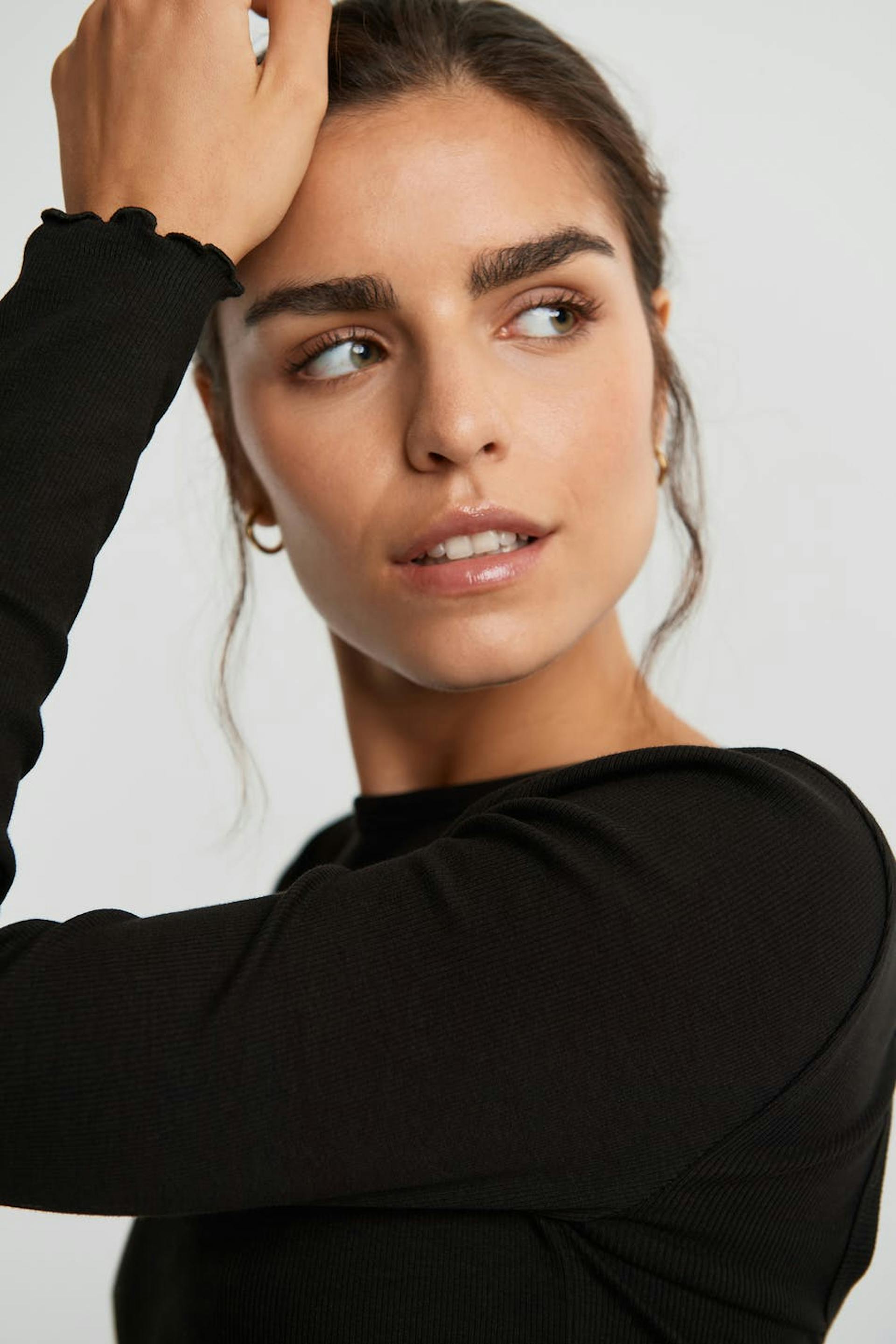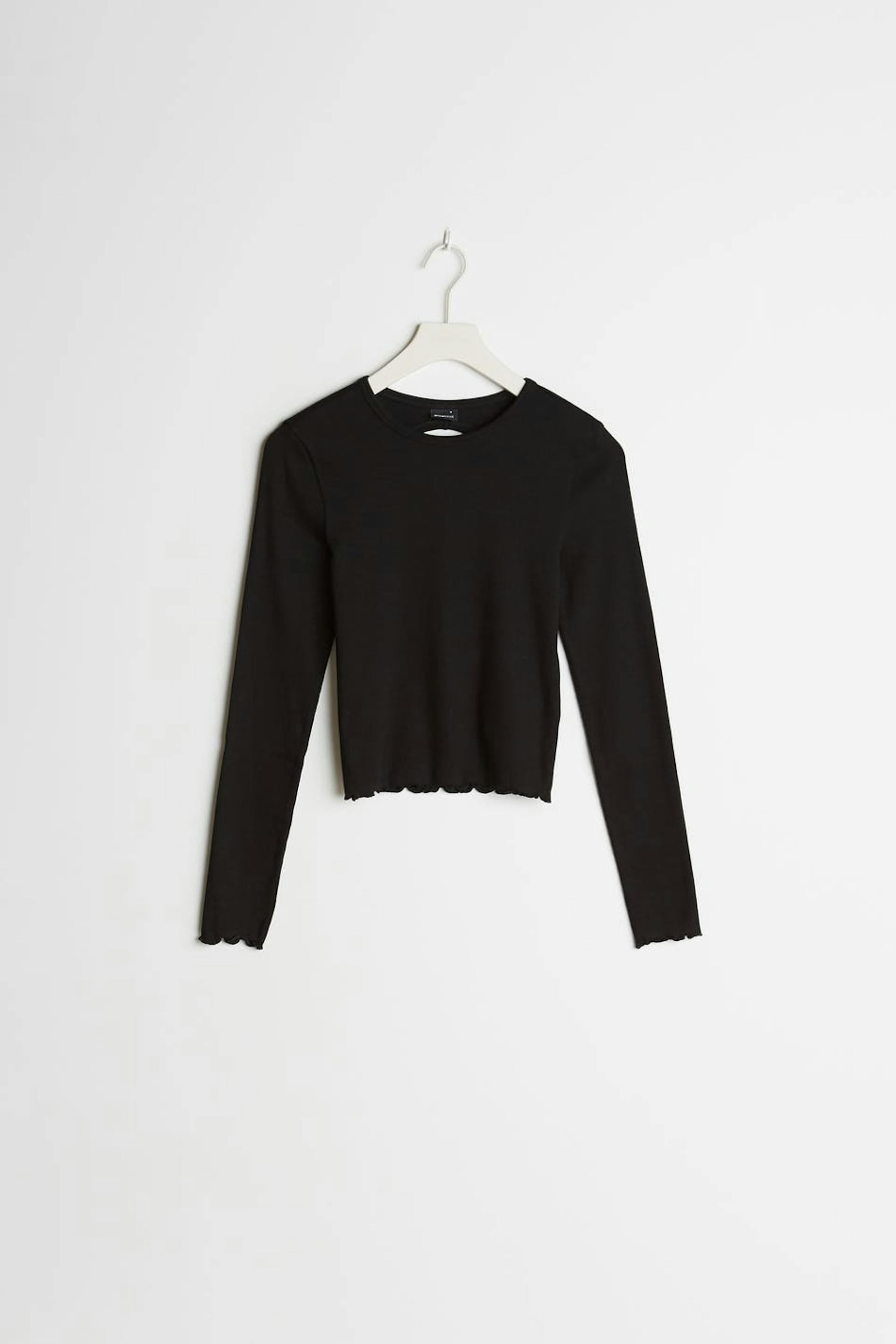 Long-sleeved top with a fitted fit. The top is black and has an open detail in the back. It is made of jersey.