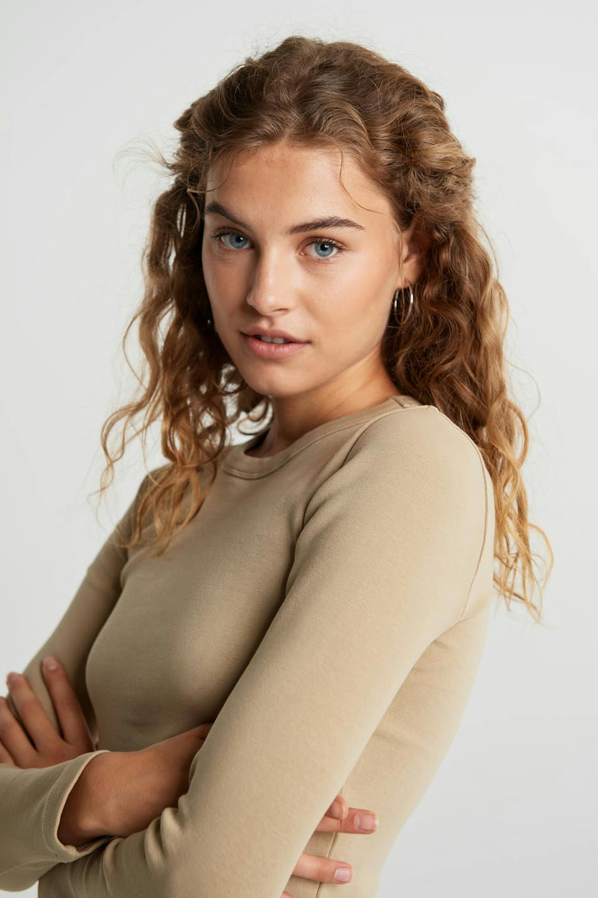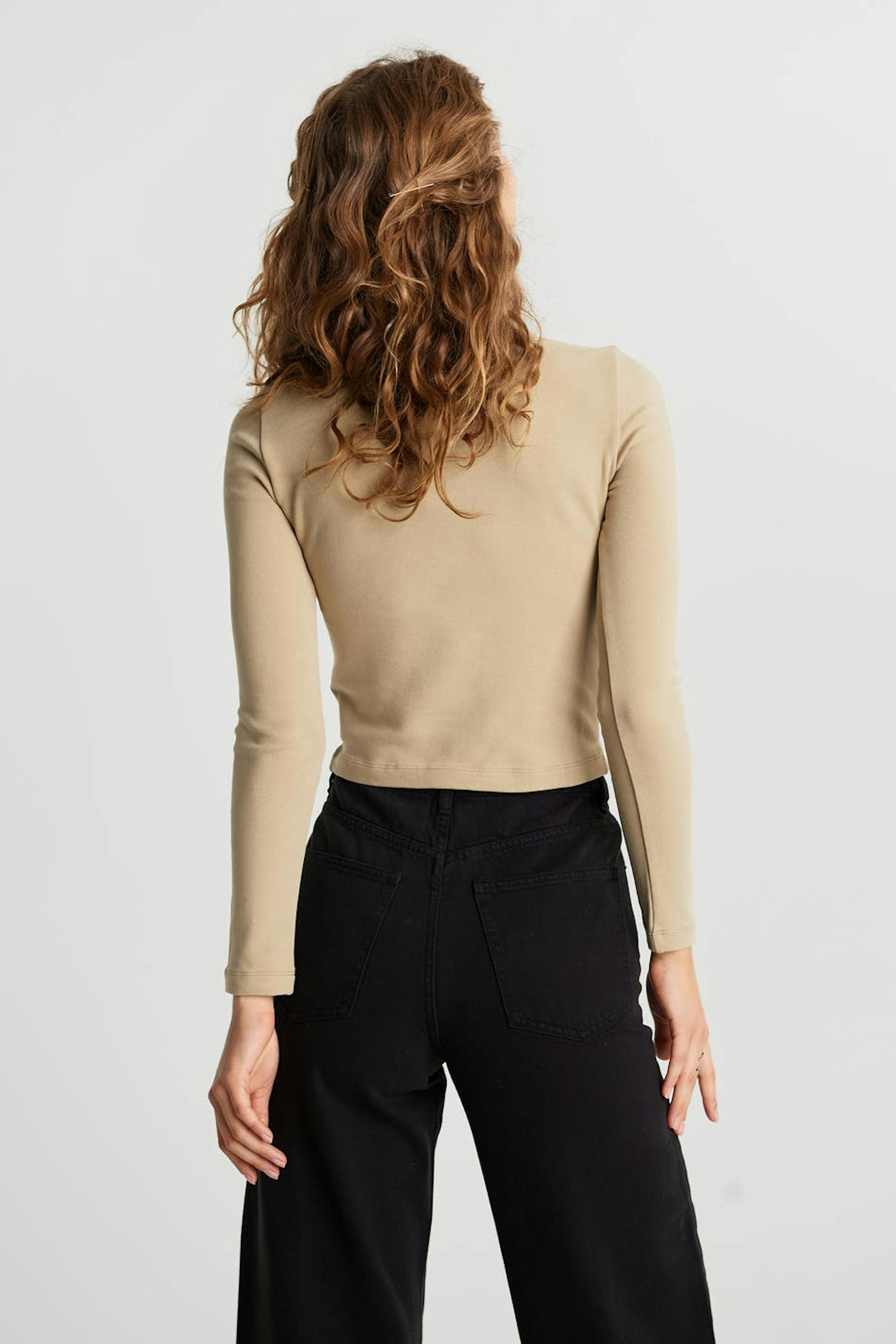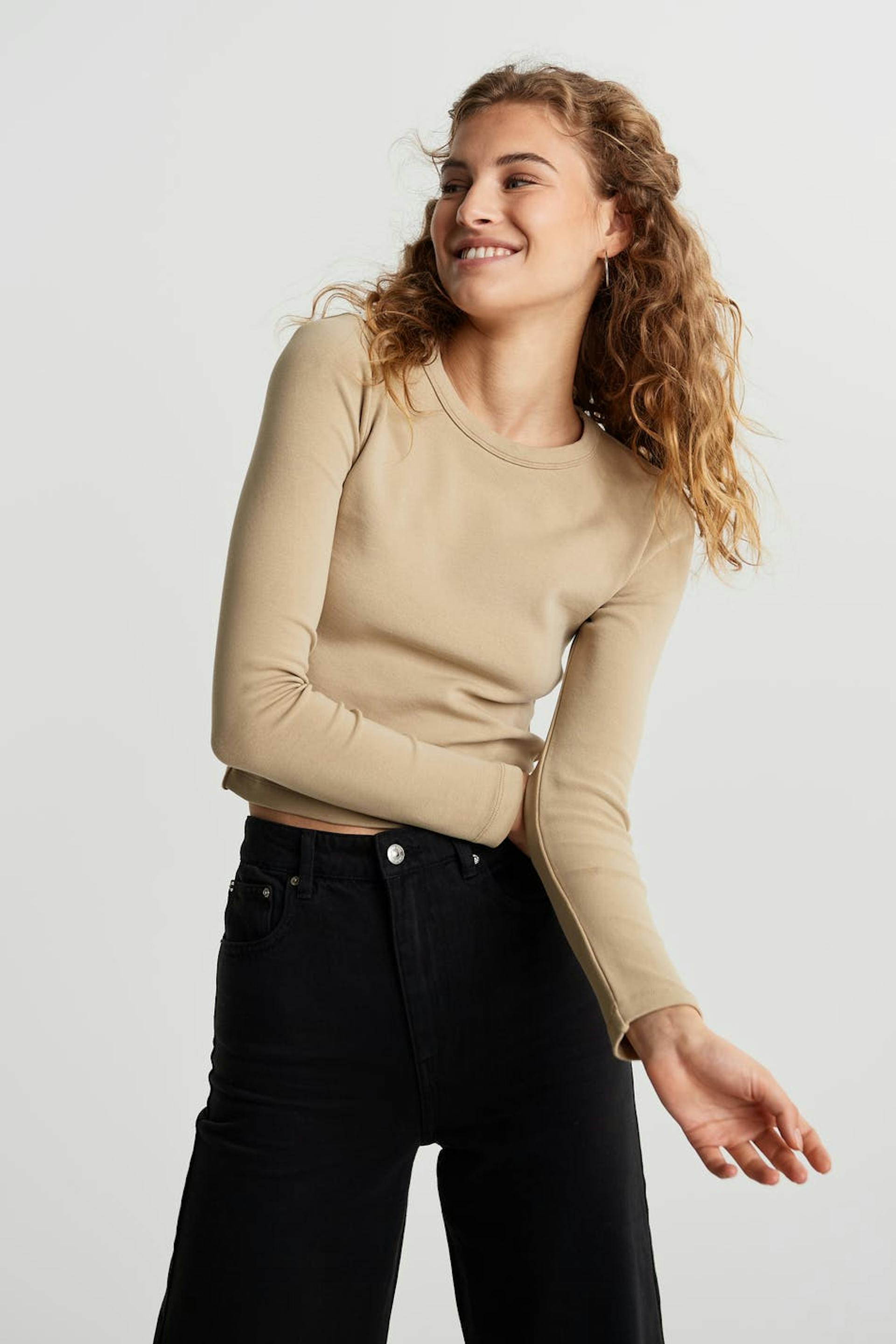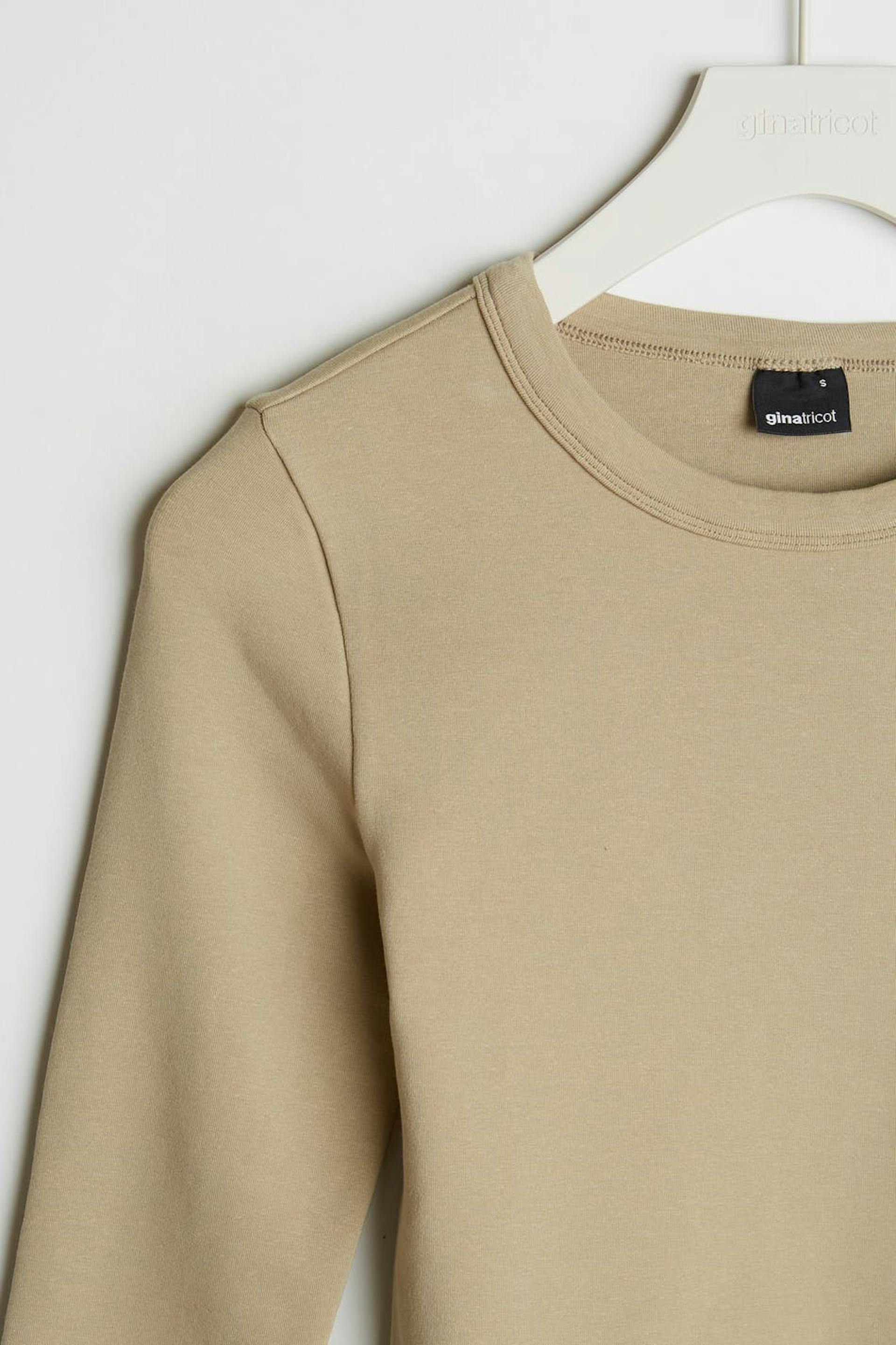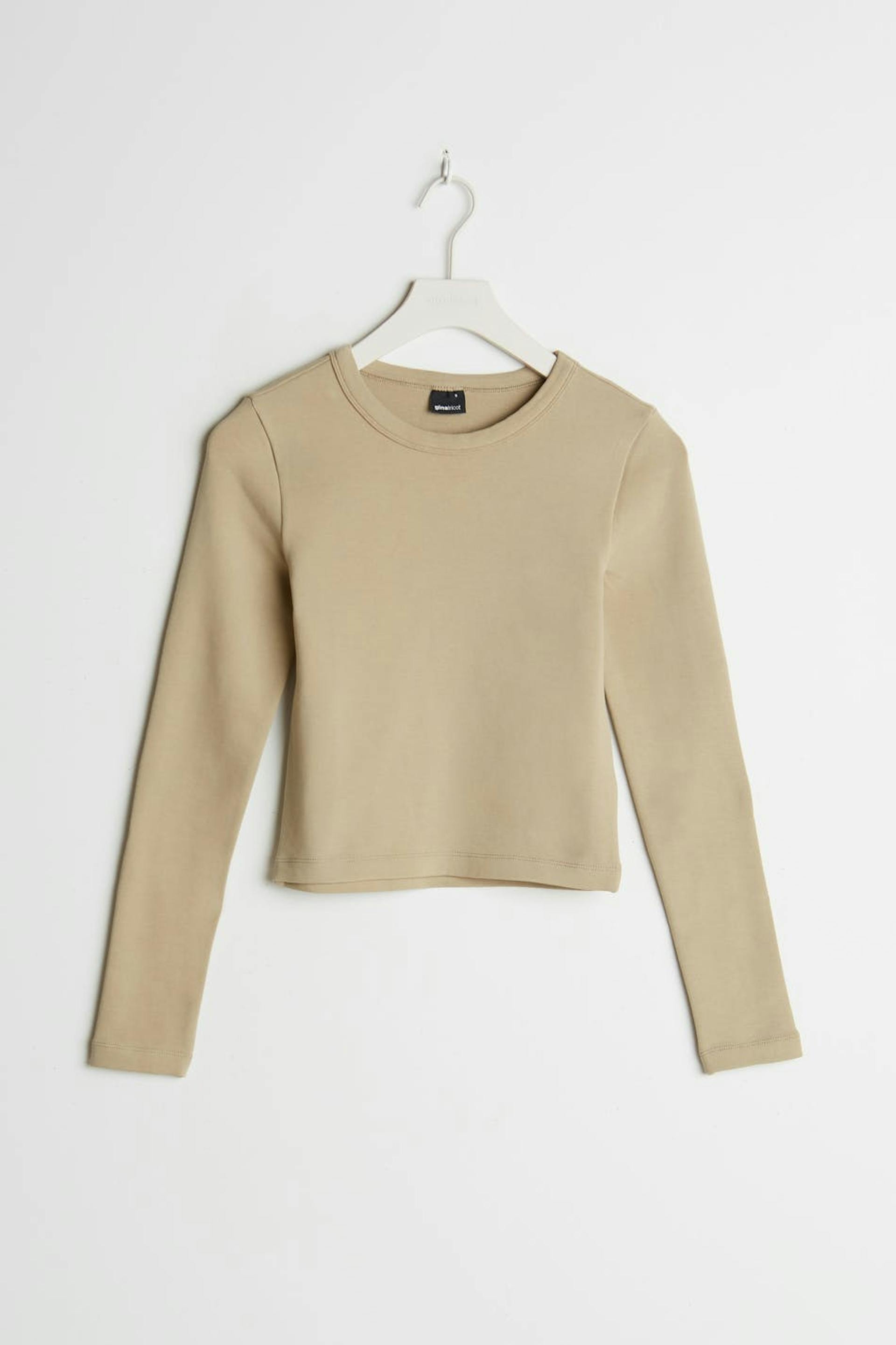 Long-sleeved top with a fitted fit. The top is beige and has superstretch and a round neck. It is made of jersey.