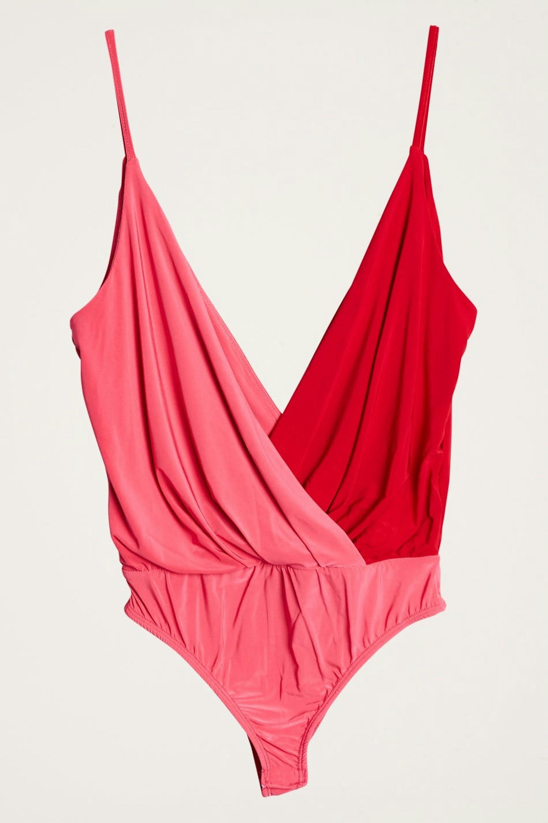 Body with a fitted fit. The body is pink and has an overlap design.