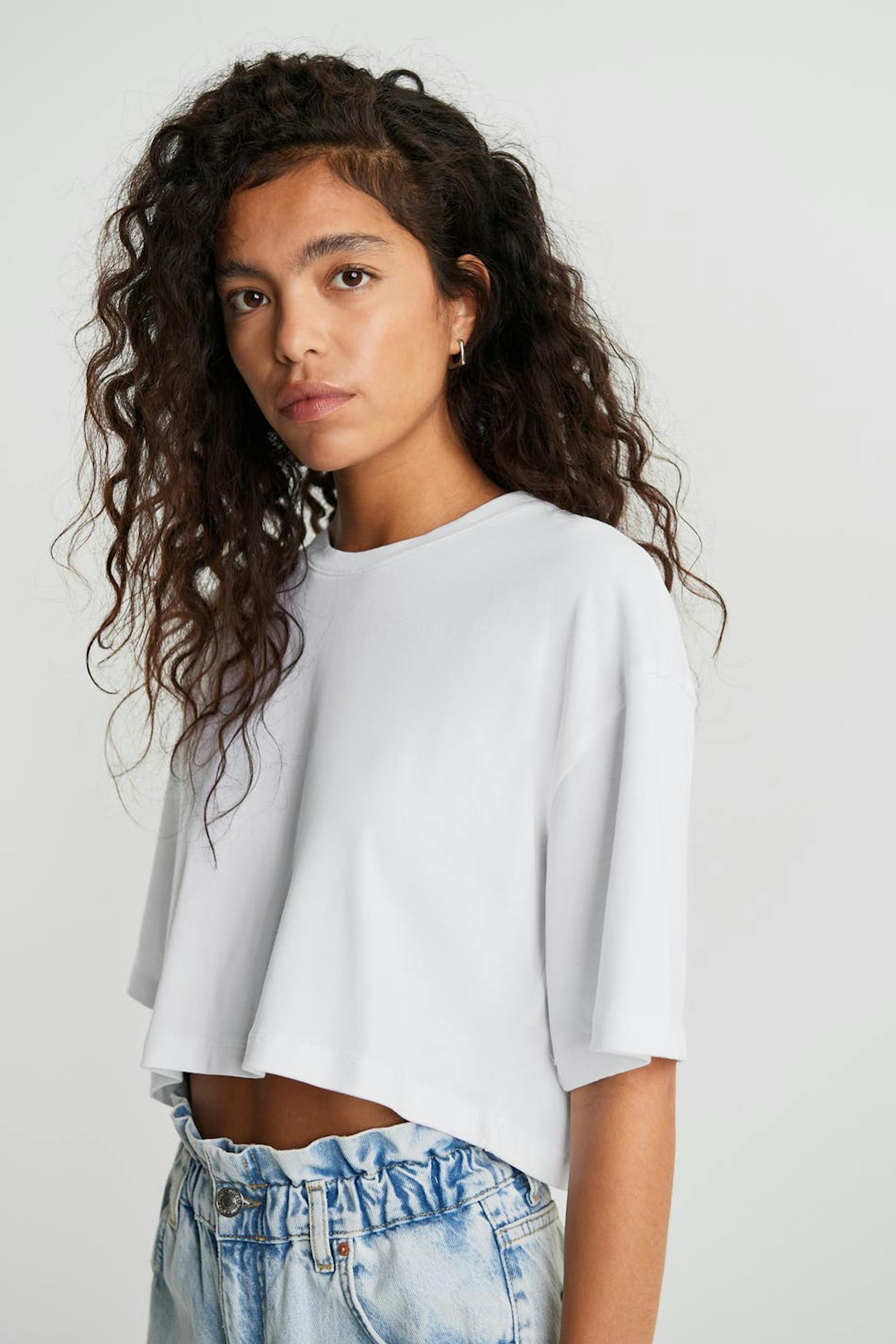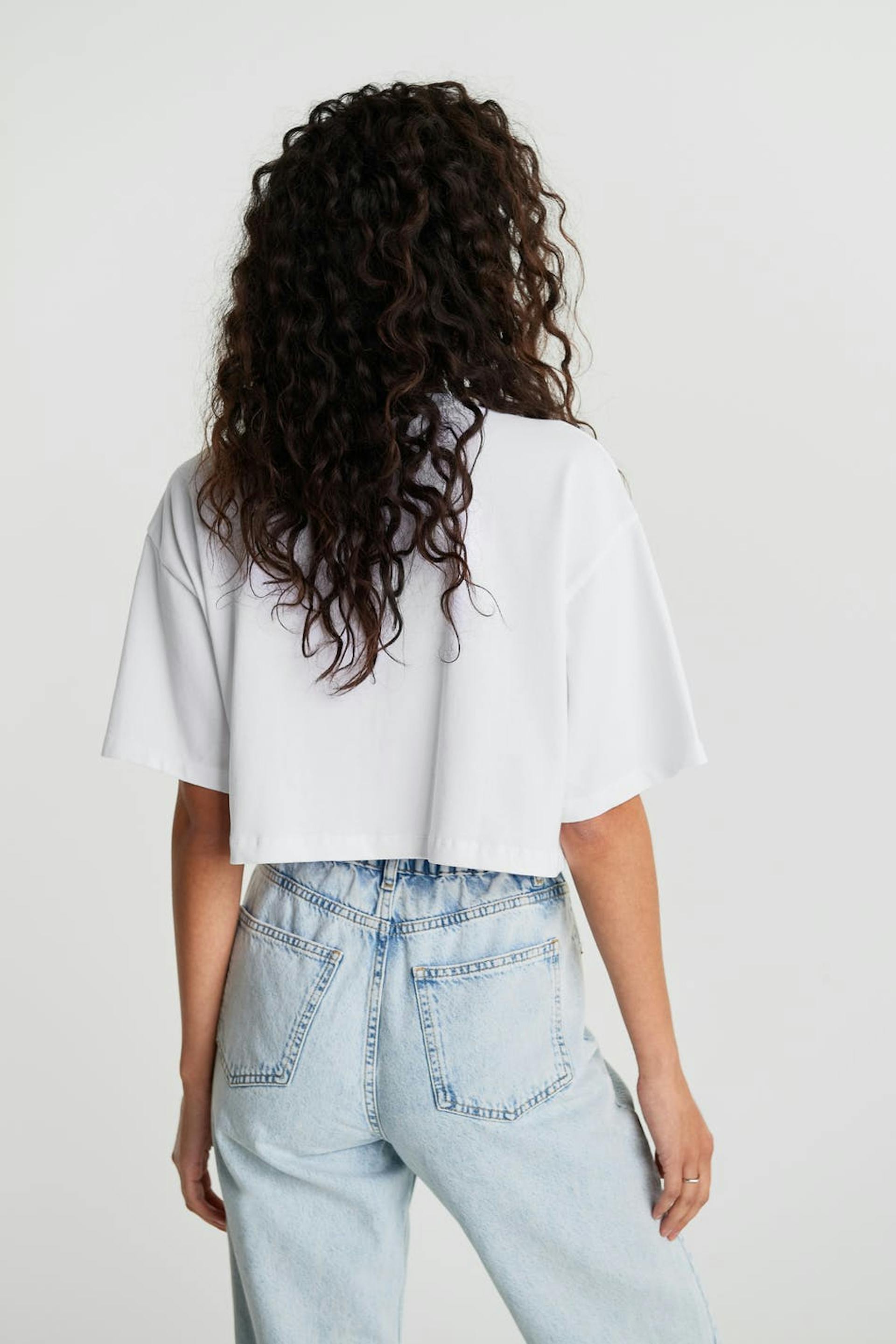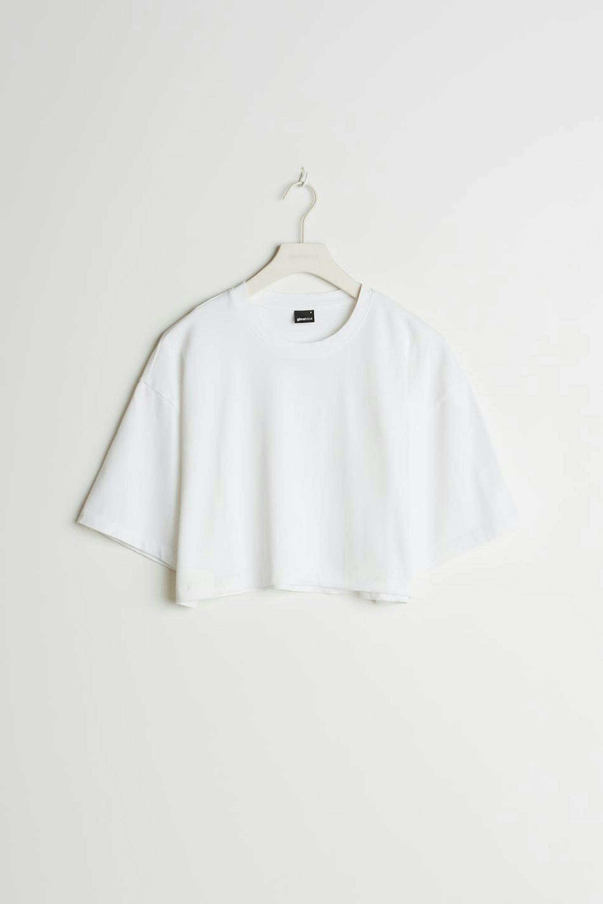 Cropped t-shirt with an oversize fit. The t-shirt is white and soft and has an oversize fit.