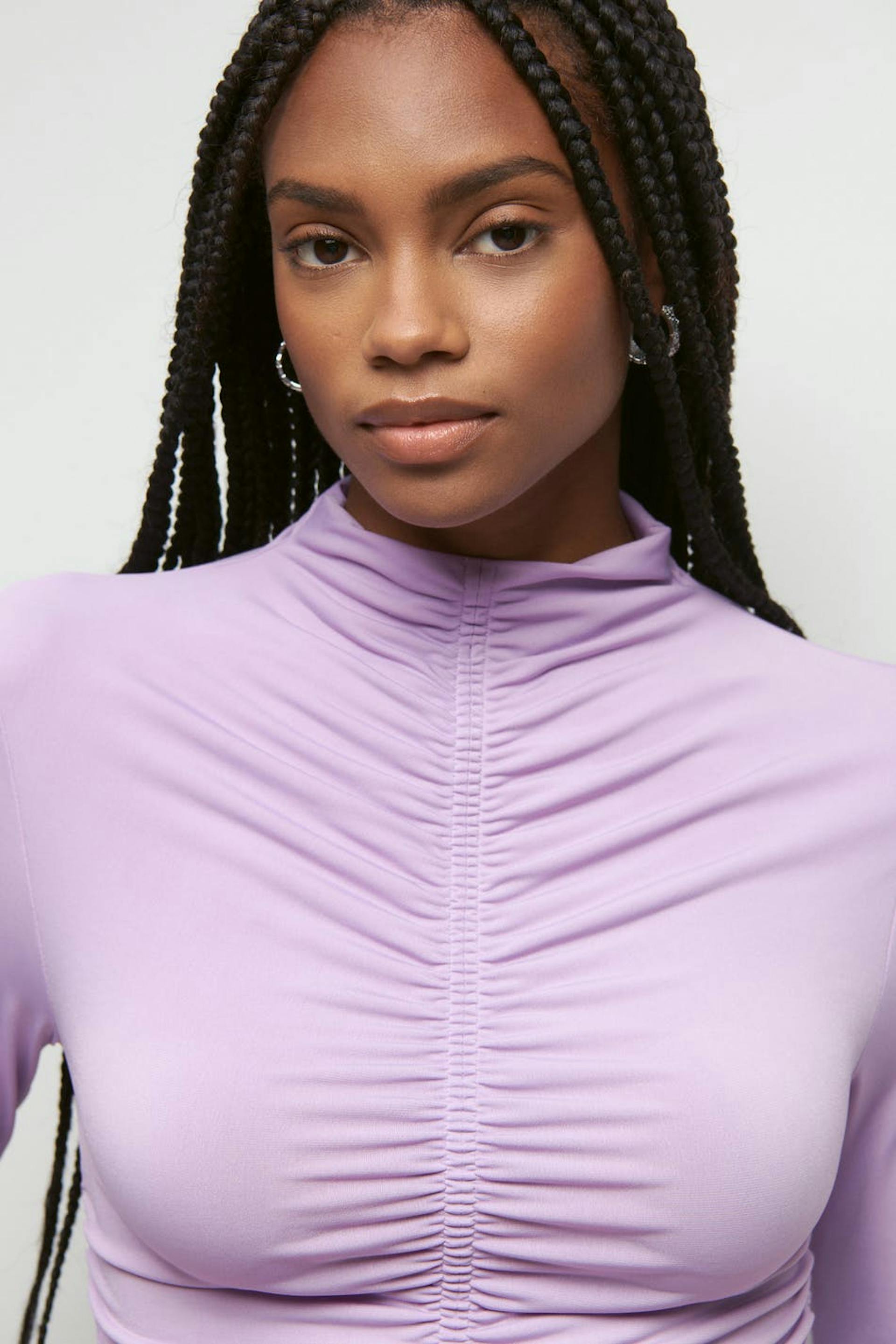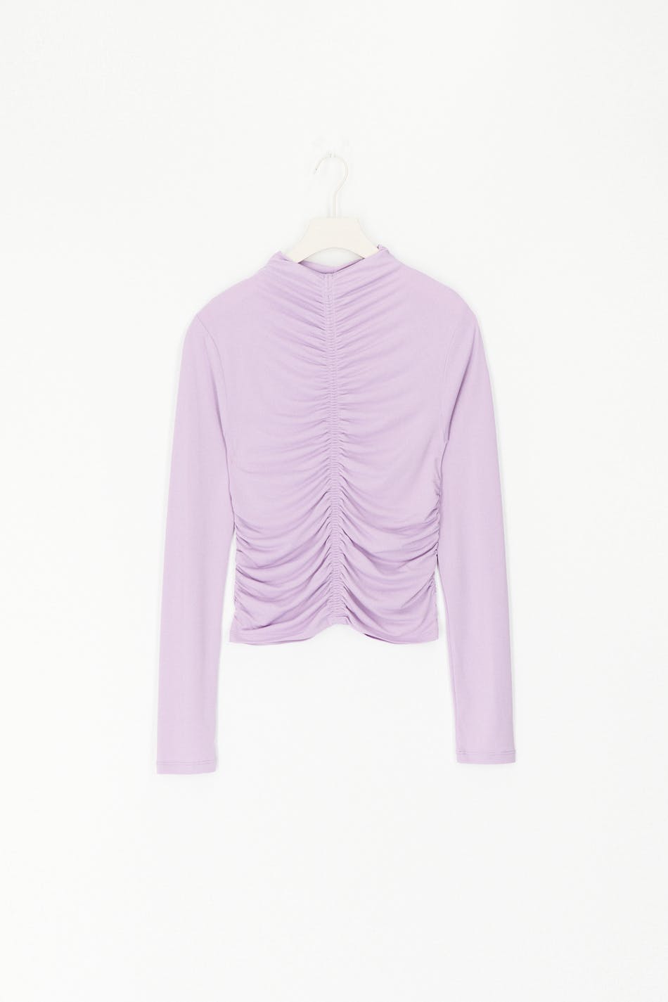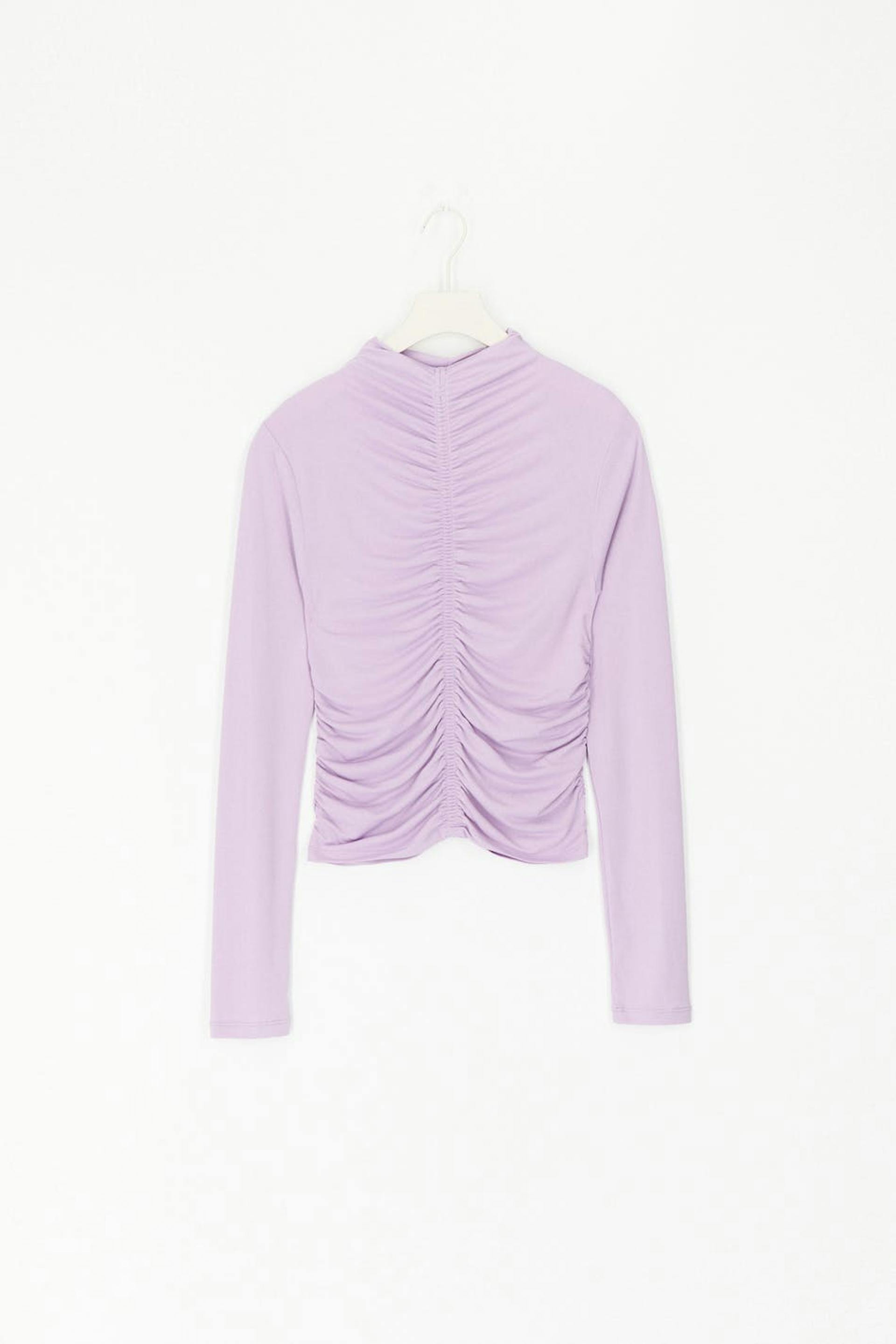 Long-sleeved top in jersey with gathered effect. The top is purple and has a fitted fit.