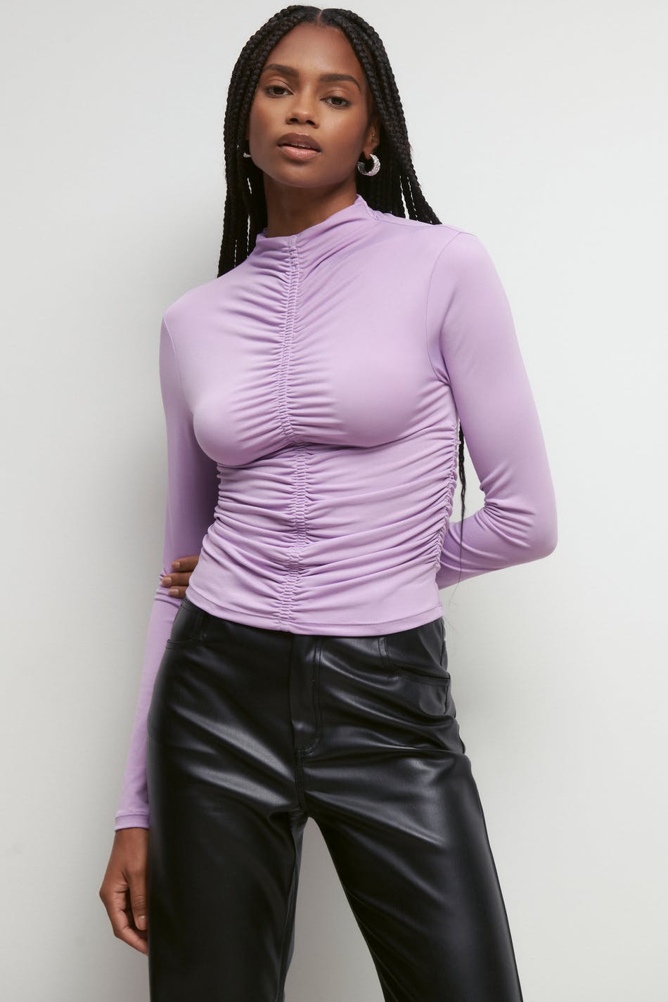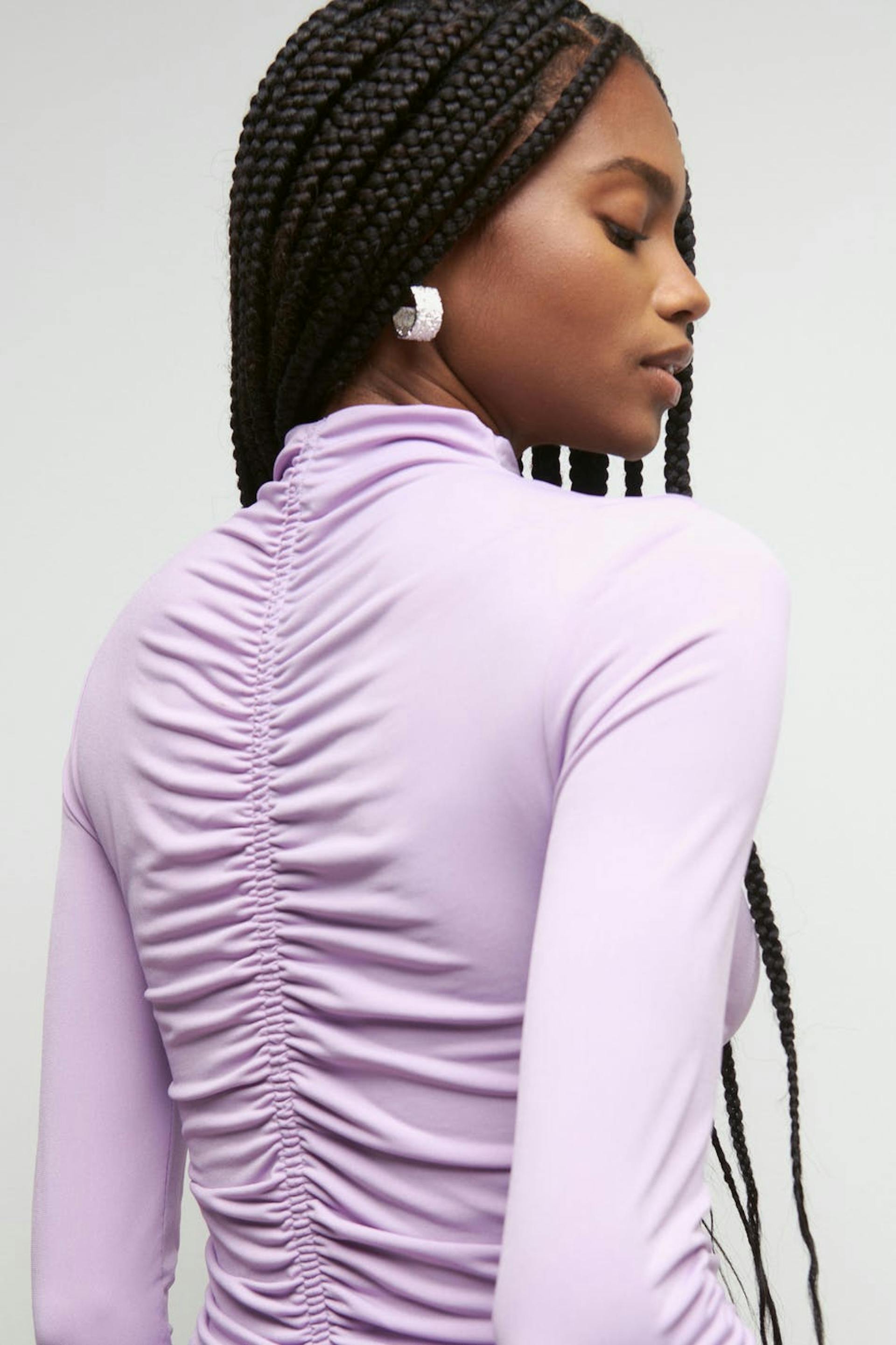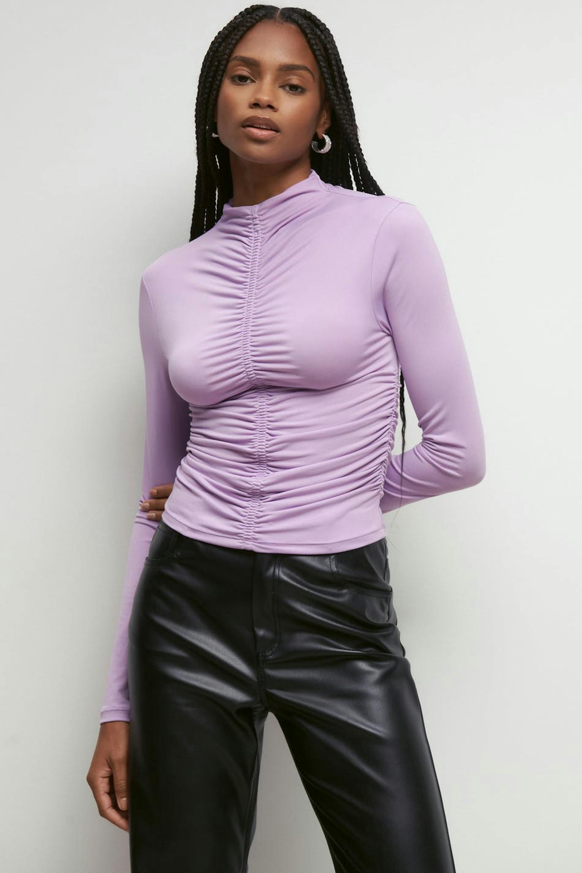 Long-sleeved top in jersey with gathered effect. The top is purple and has a fitted fit.