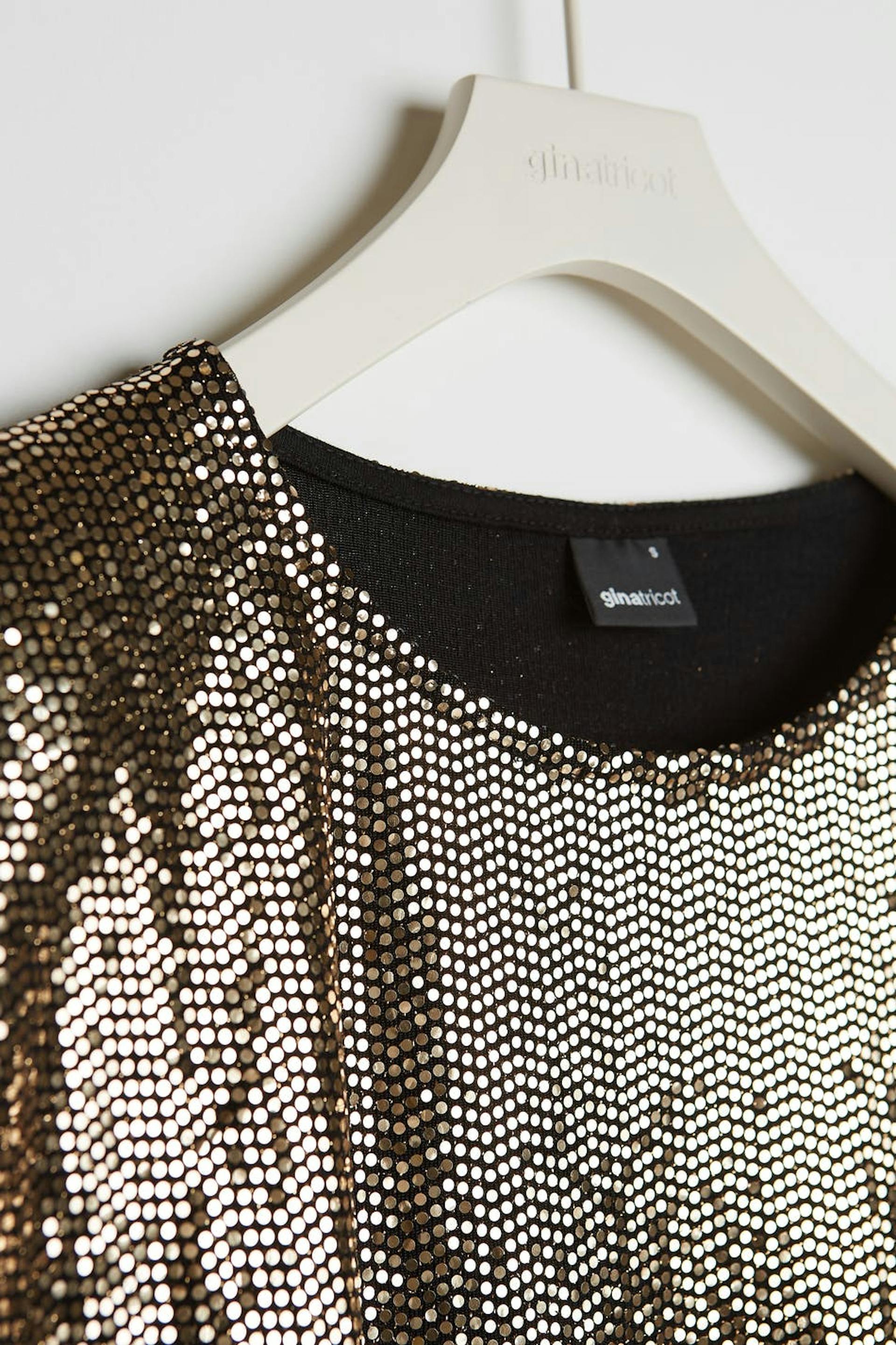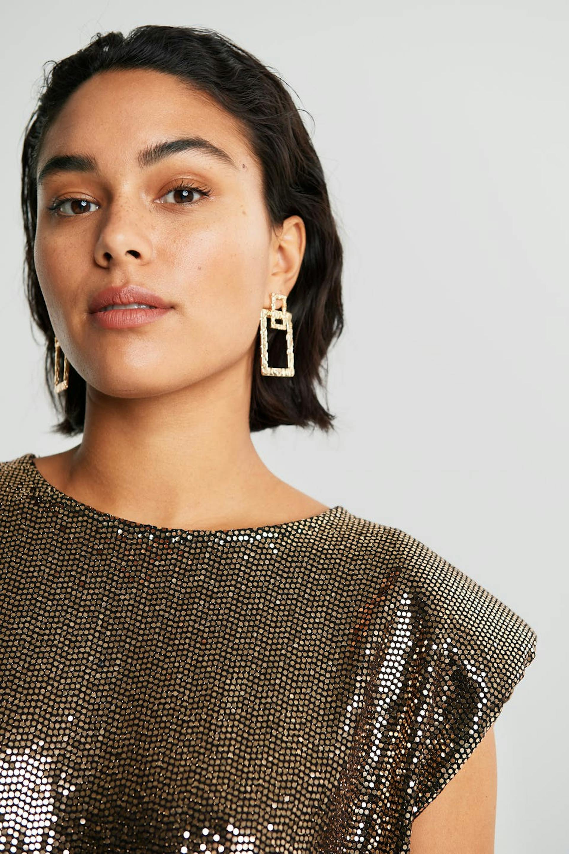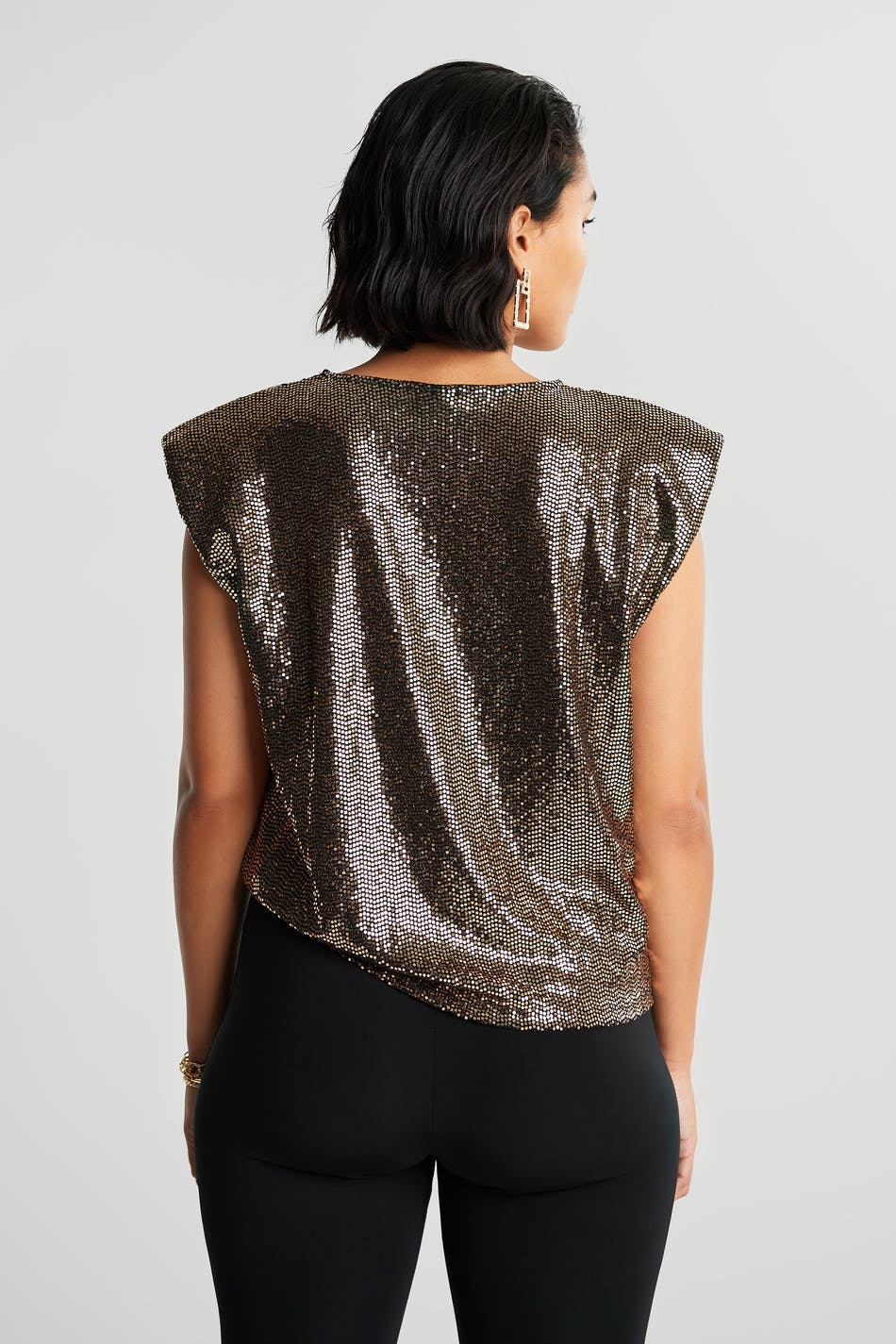 Glittery top with shoulder pads. The top is perfect for the party, gold coloured and sleeveless.