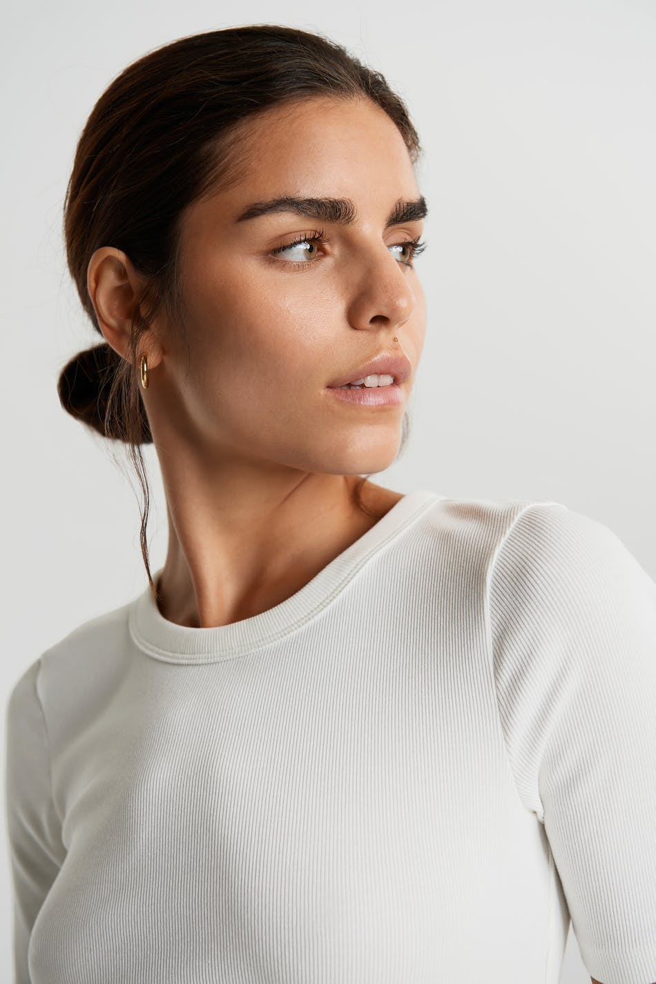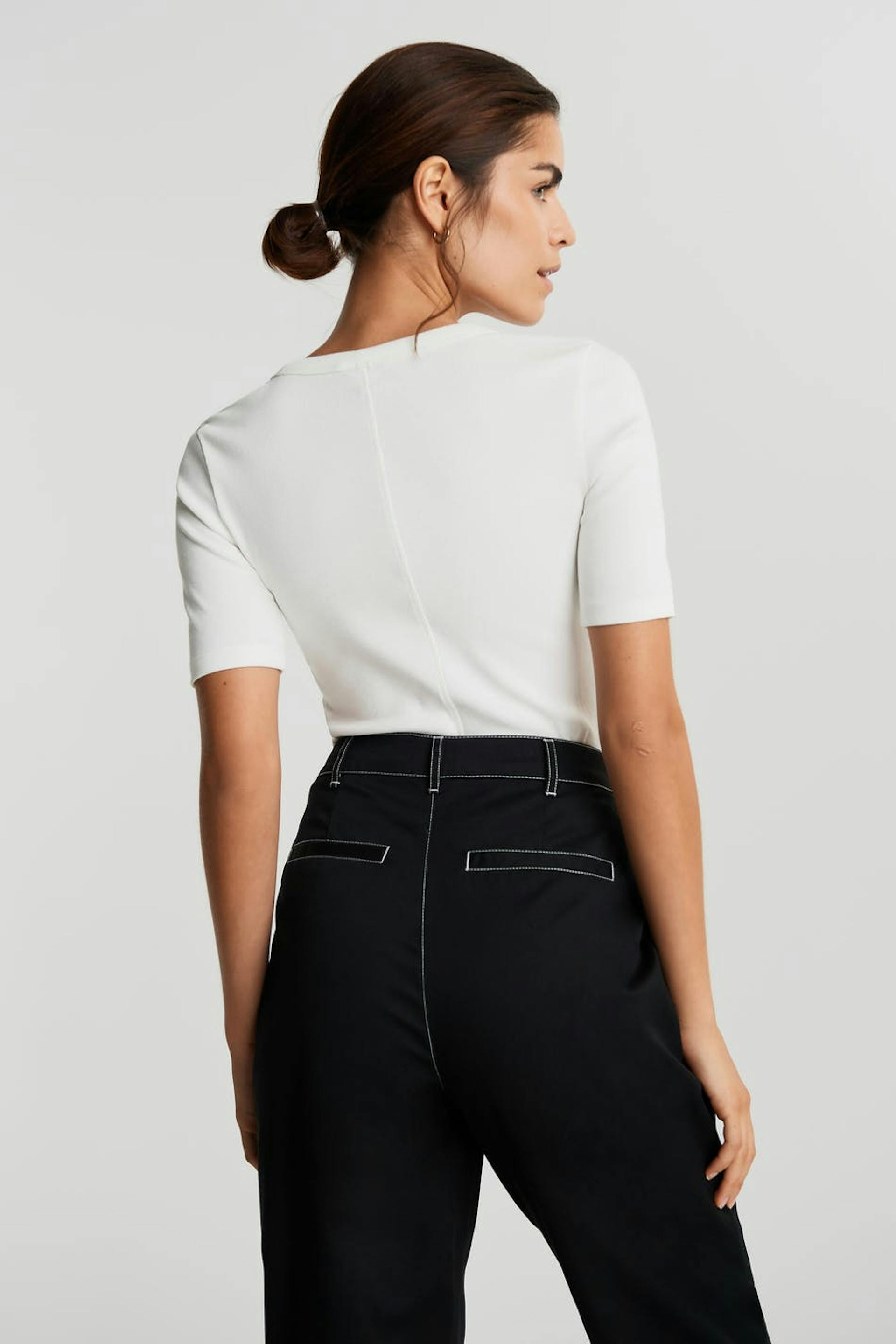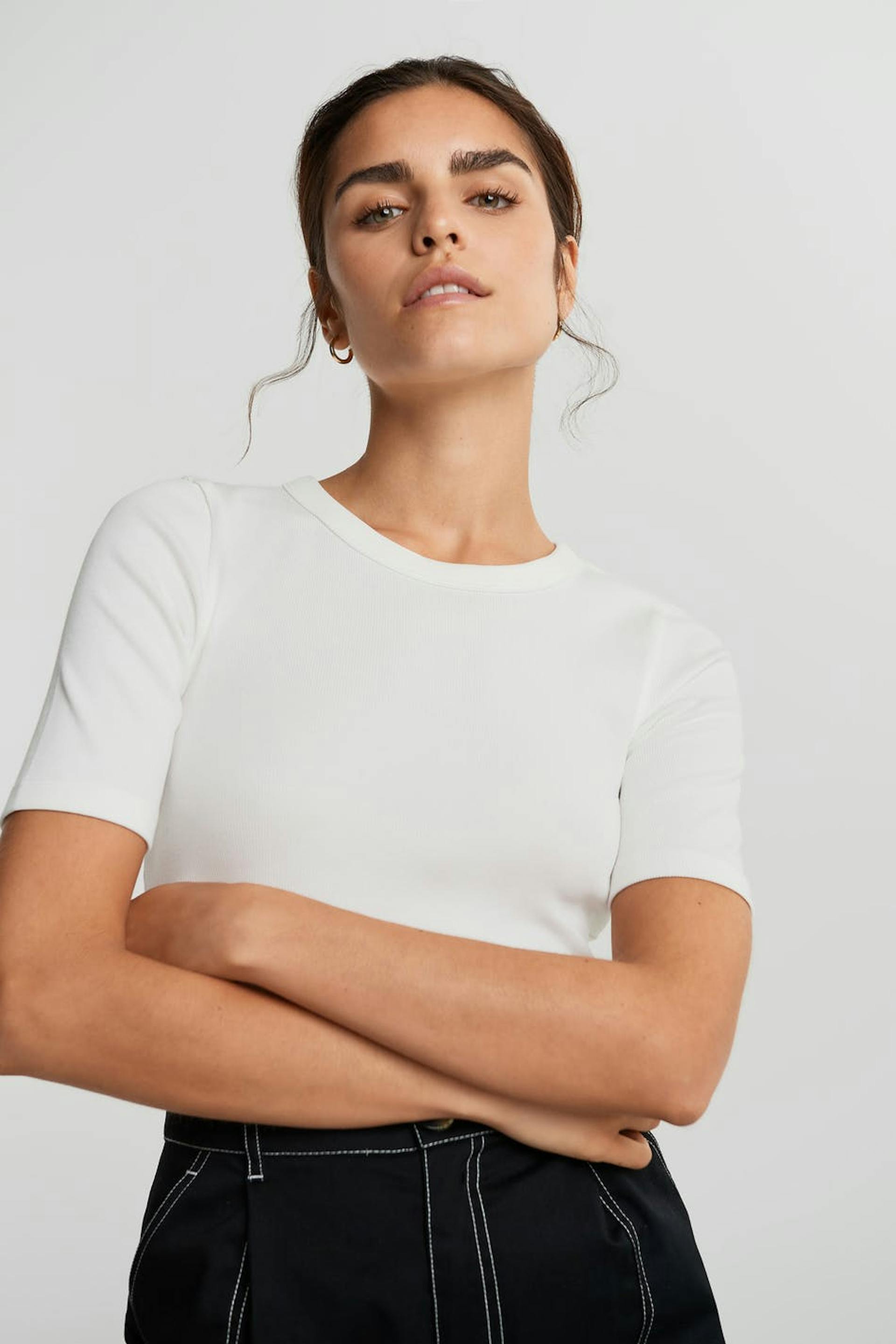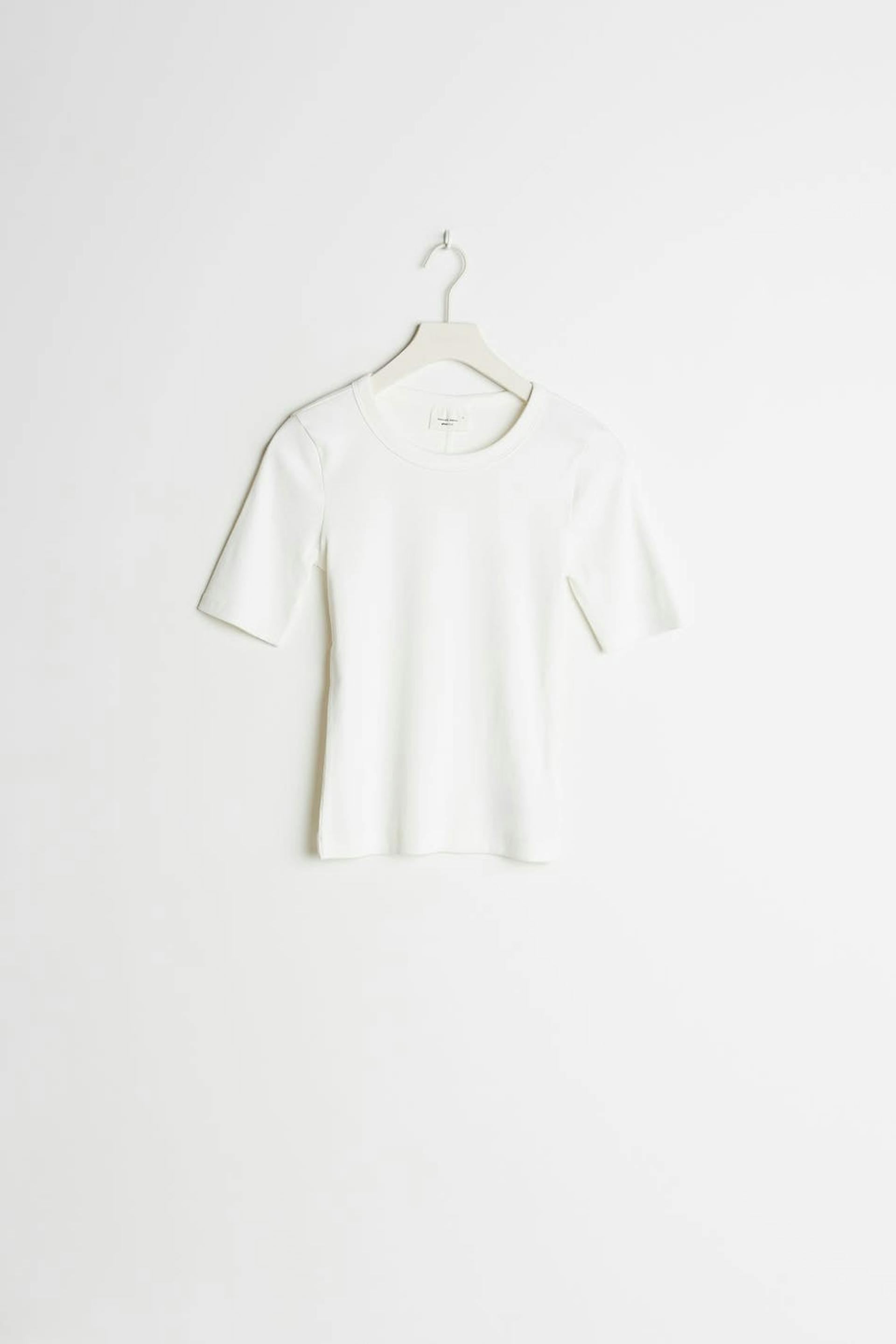 Ribbed top with a regular fit. The top is bone-white and short-sleeved.