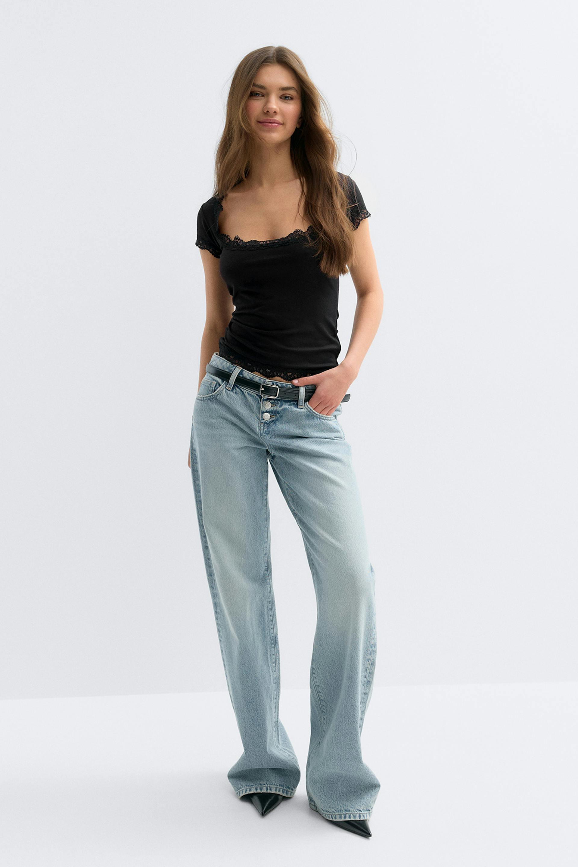 Lace detail scoop neck top