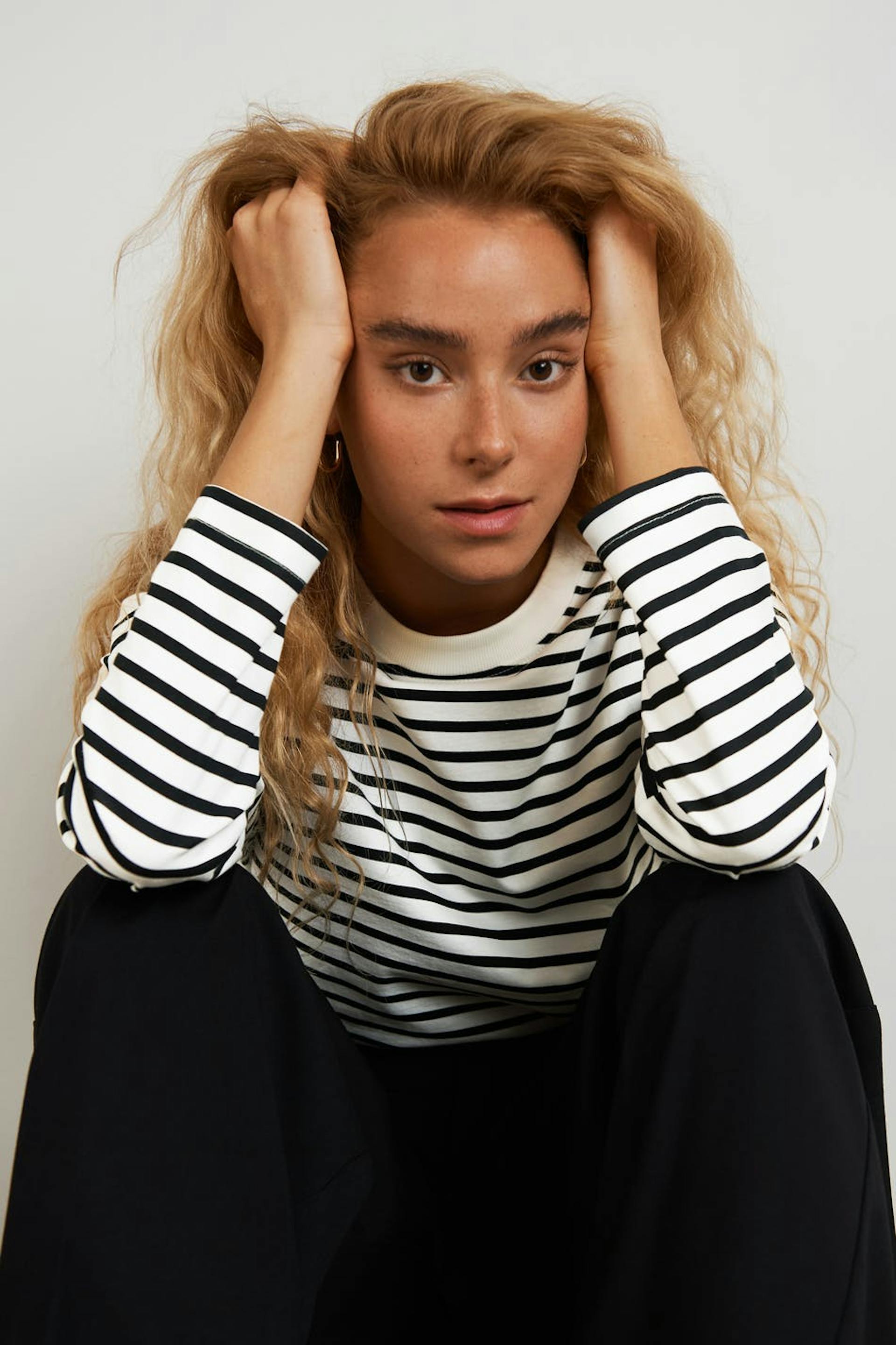 The model wears size S and is 175cm tall