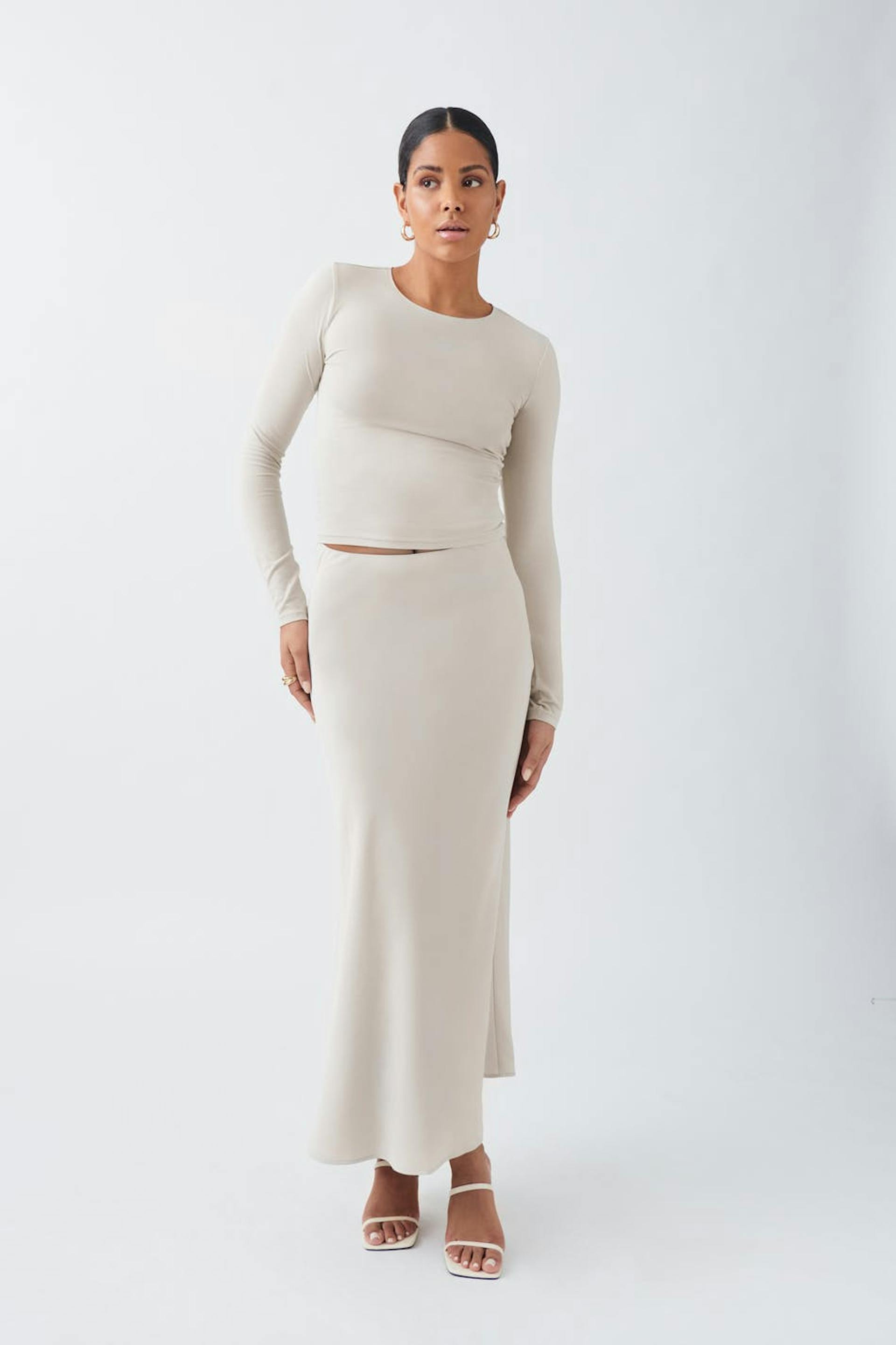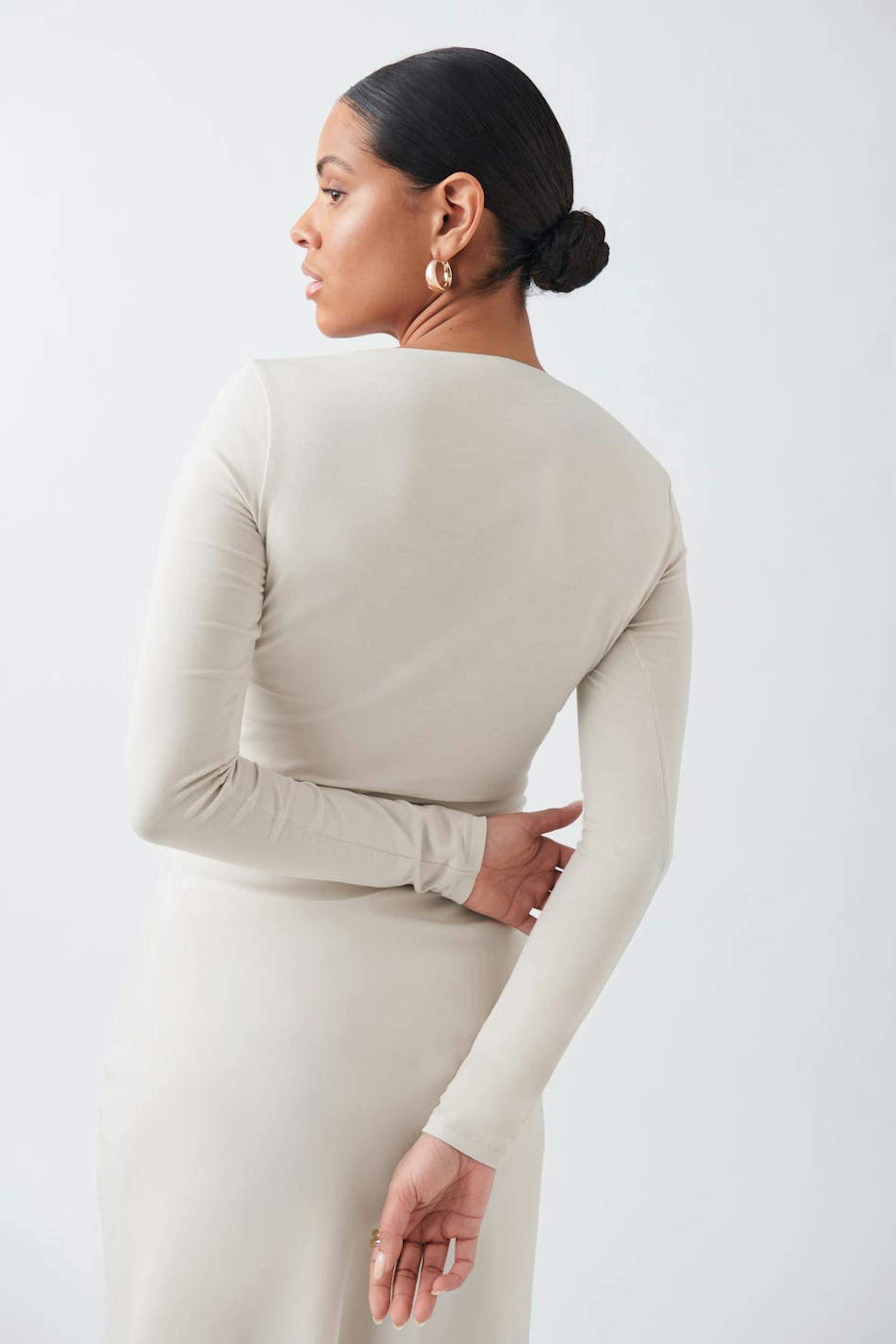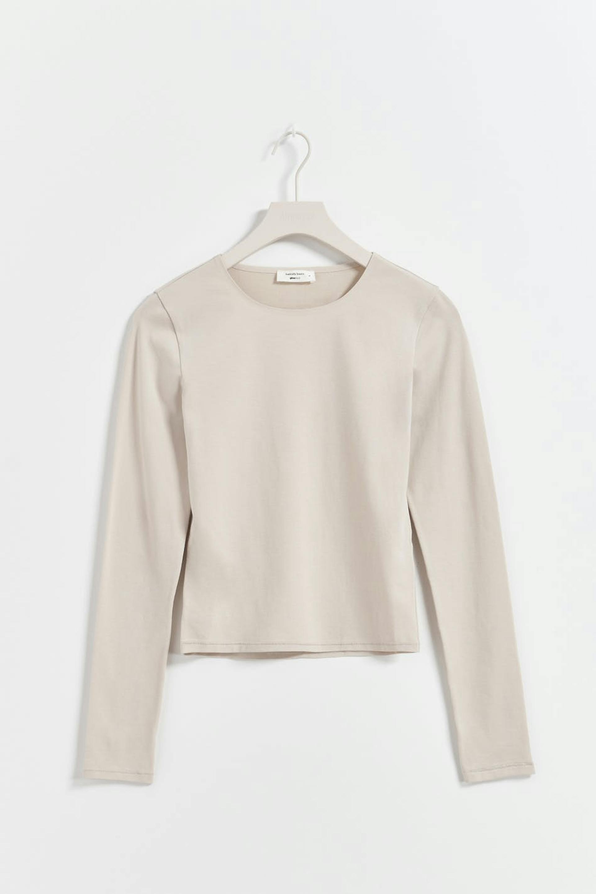 Long-sleeved top in jersey with figure-hugging fit. The top is beige and has cropped length.