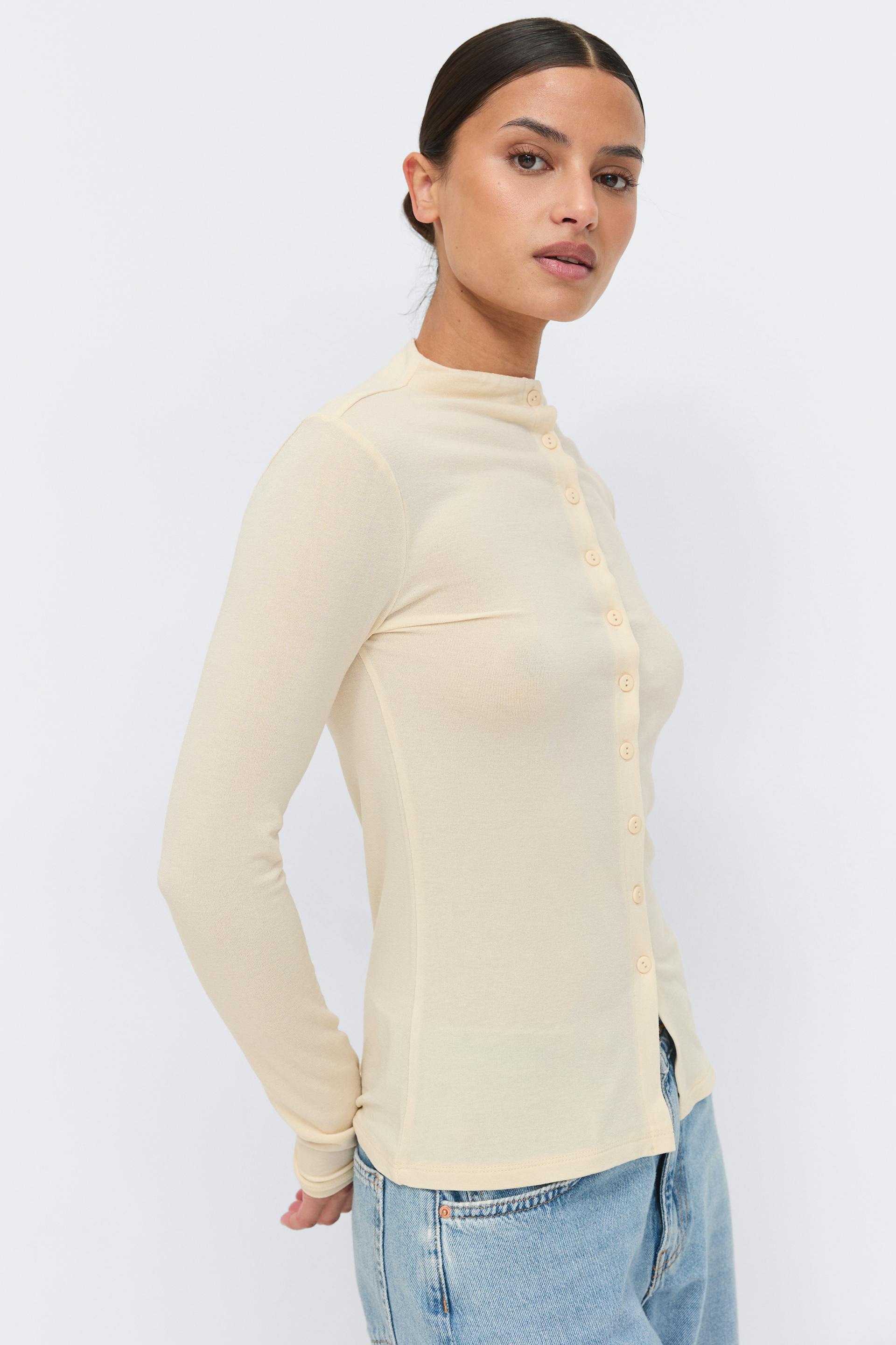 Button down funnel neck top