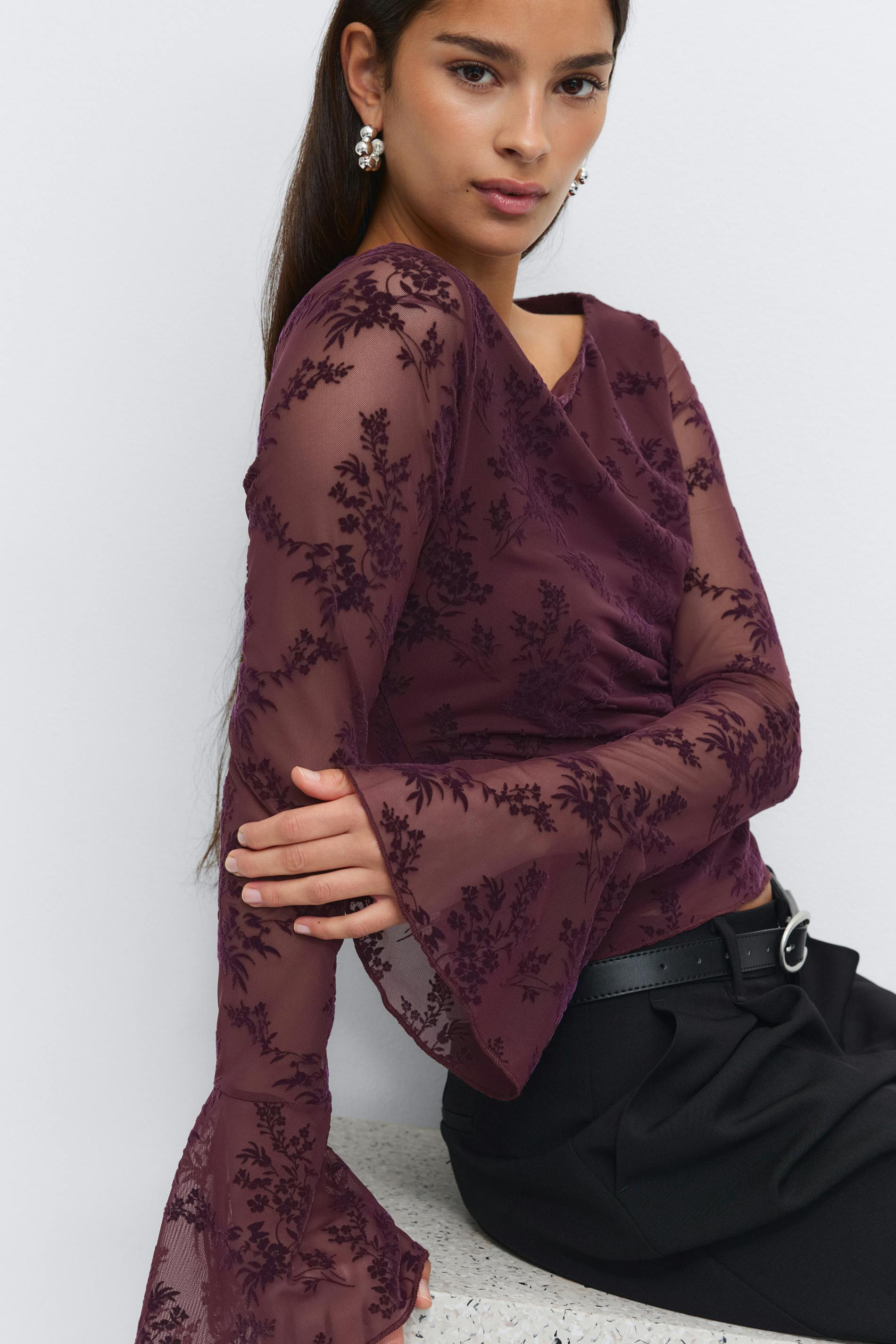 Floral flare sleeve top