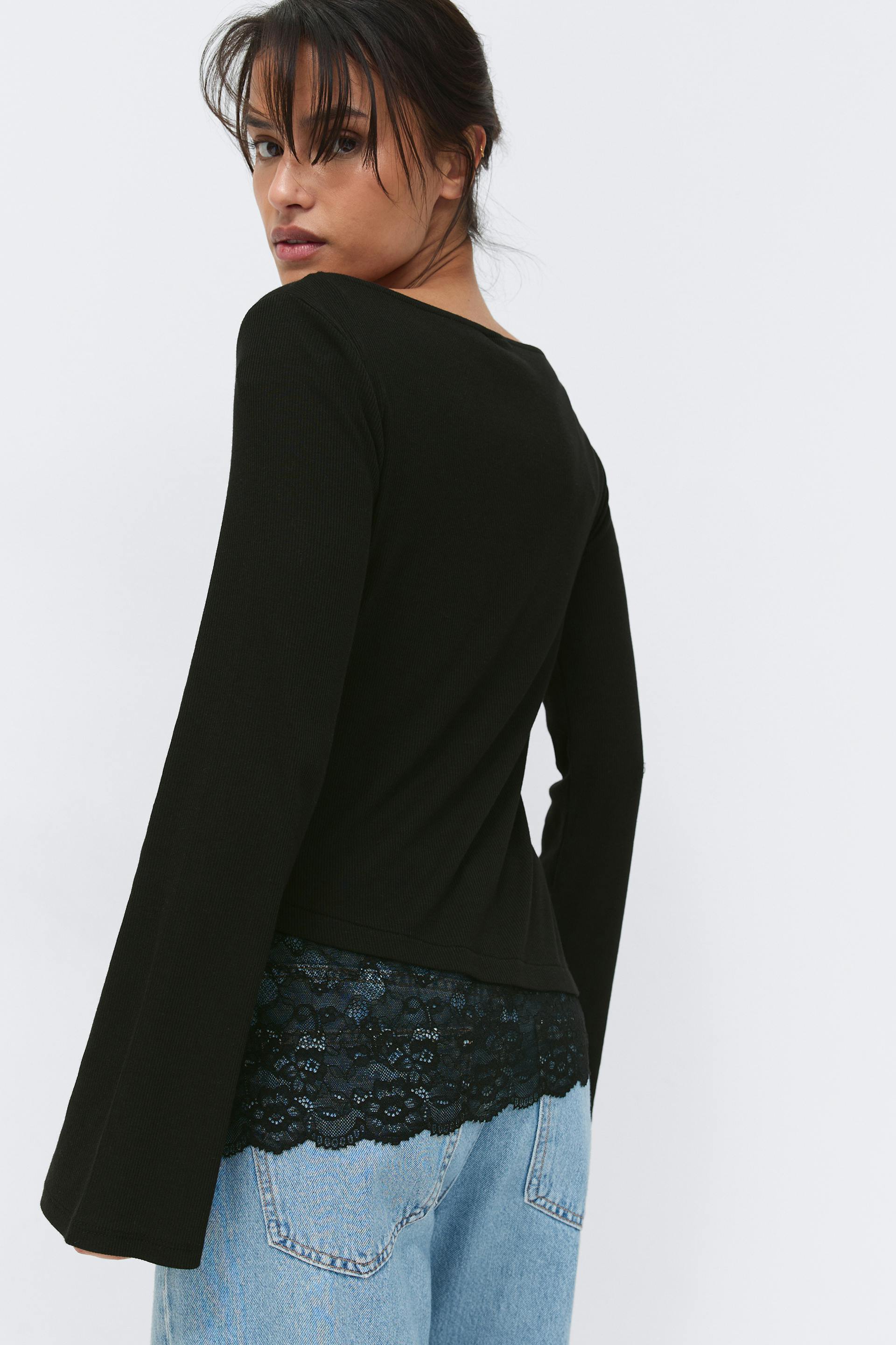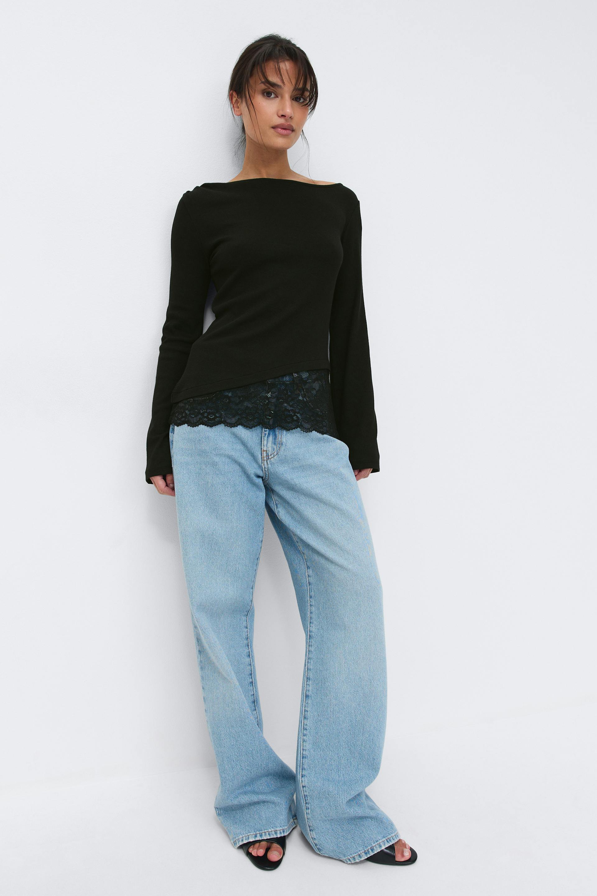 Lace detail boatneck top