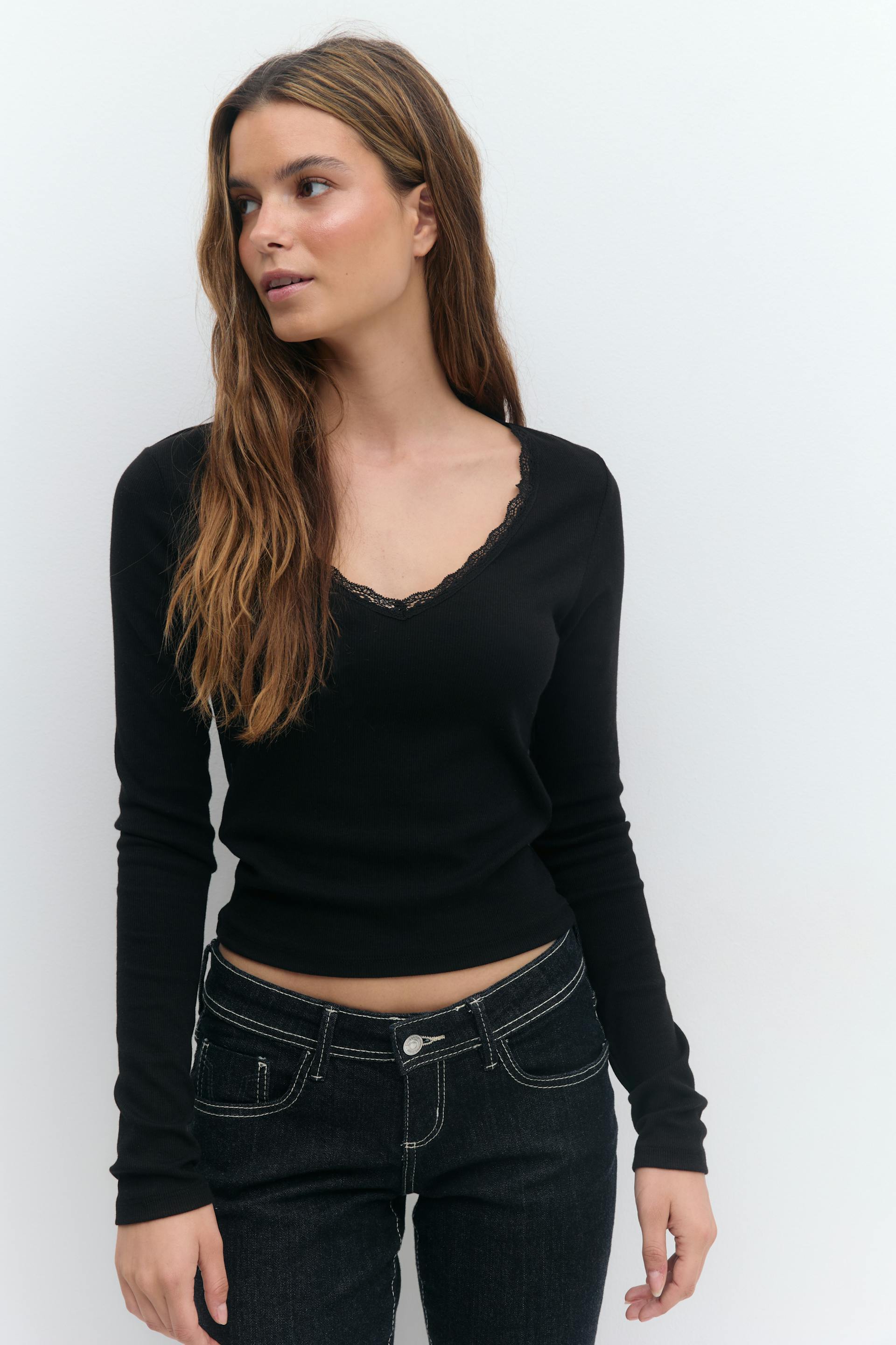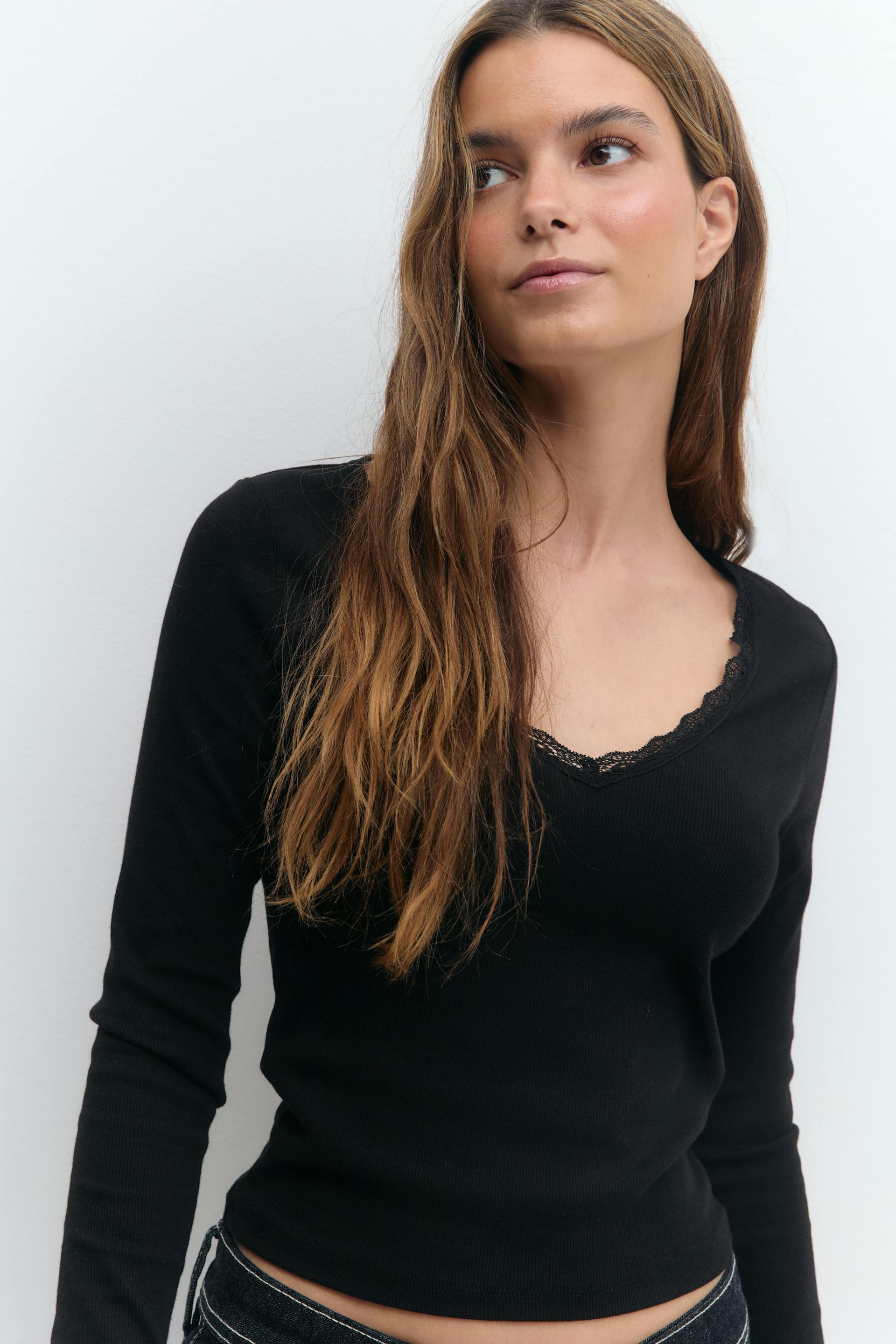 V-neck lace detail top