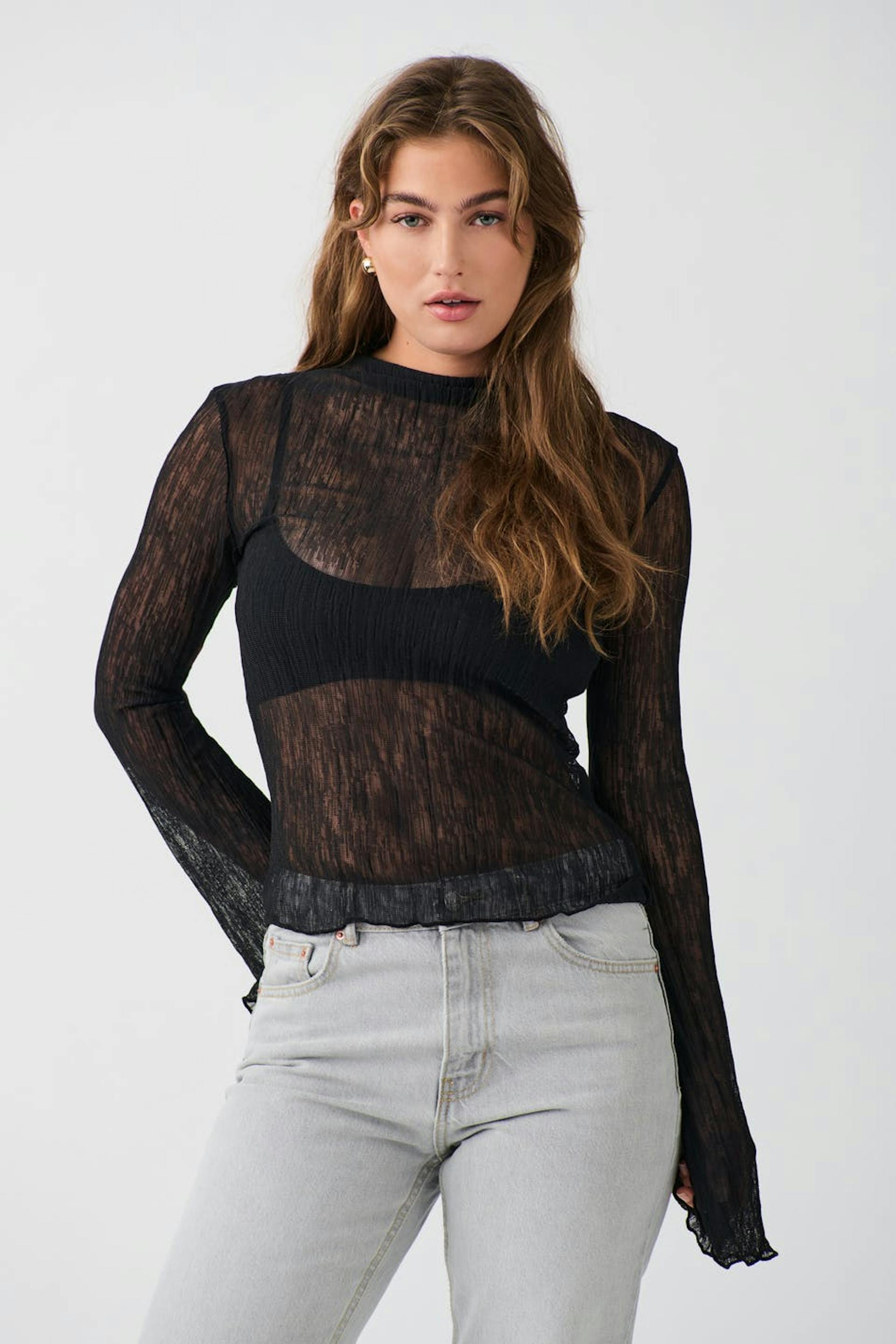 Plisse flare sleeve top