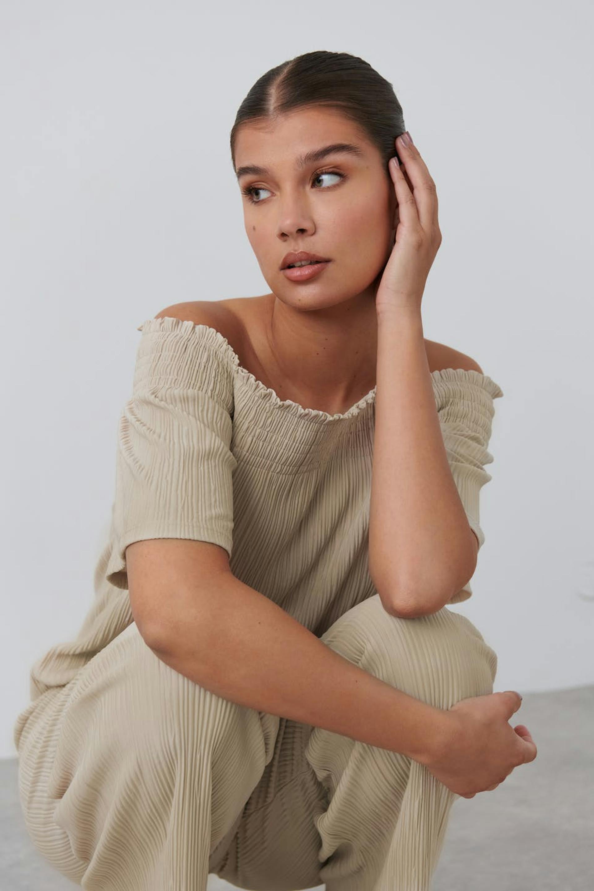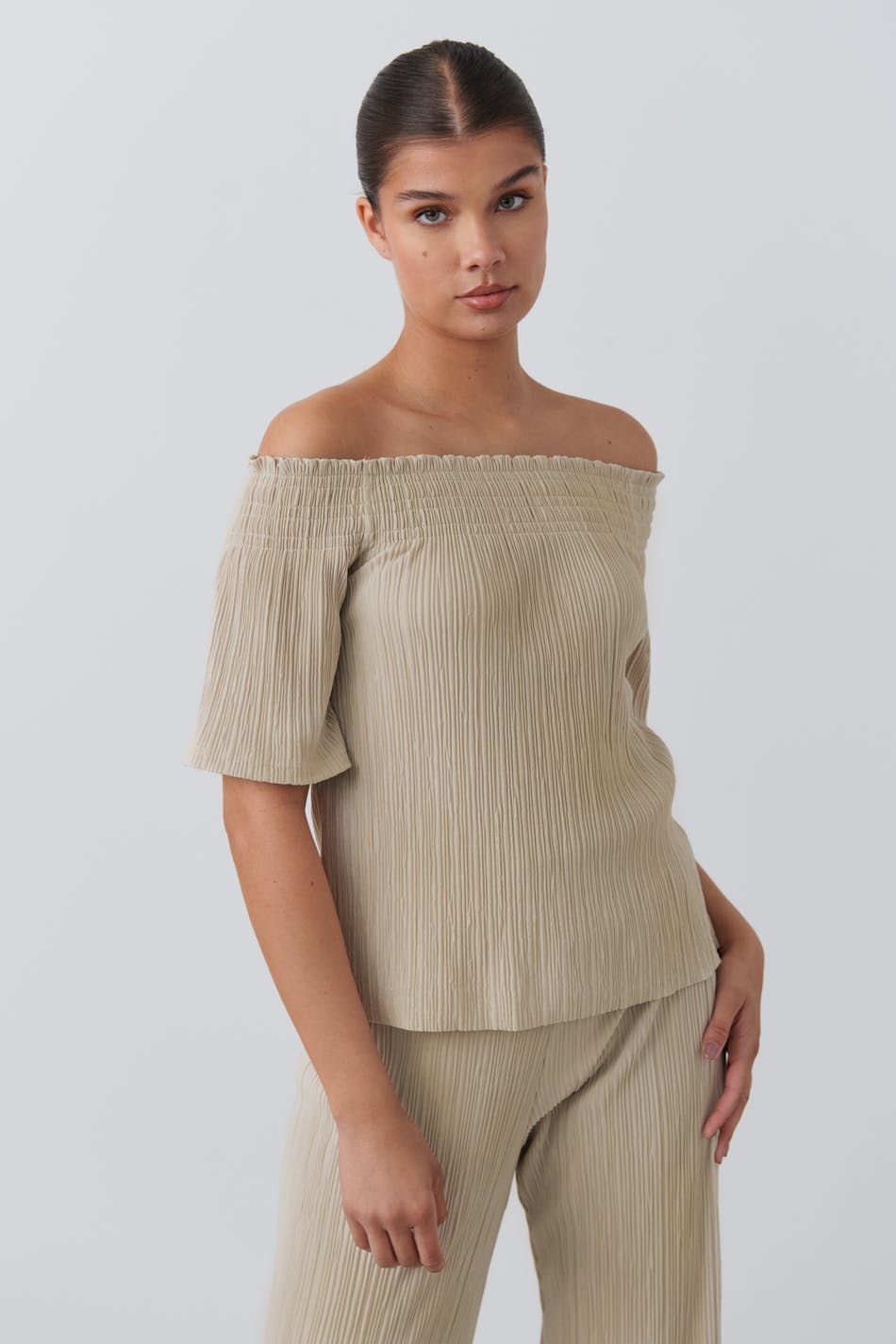 Off shoulder plisse top