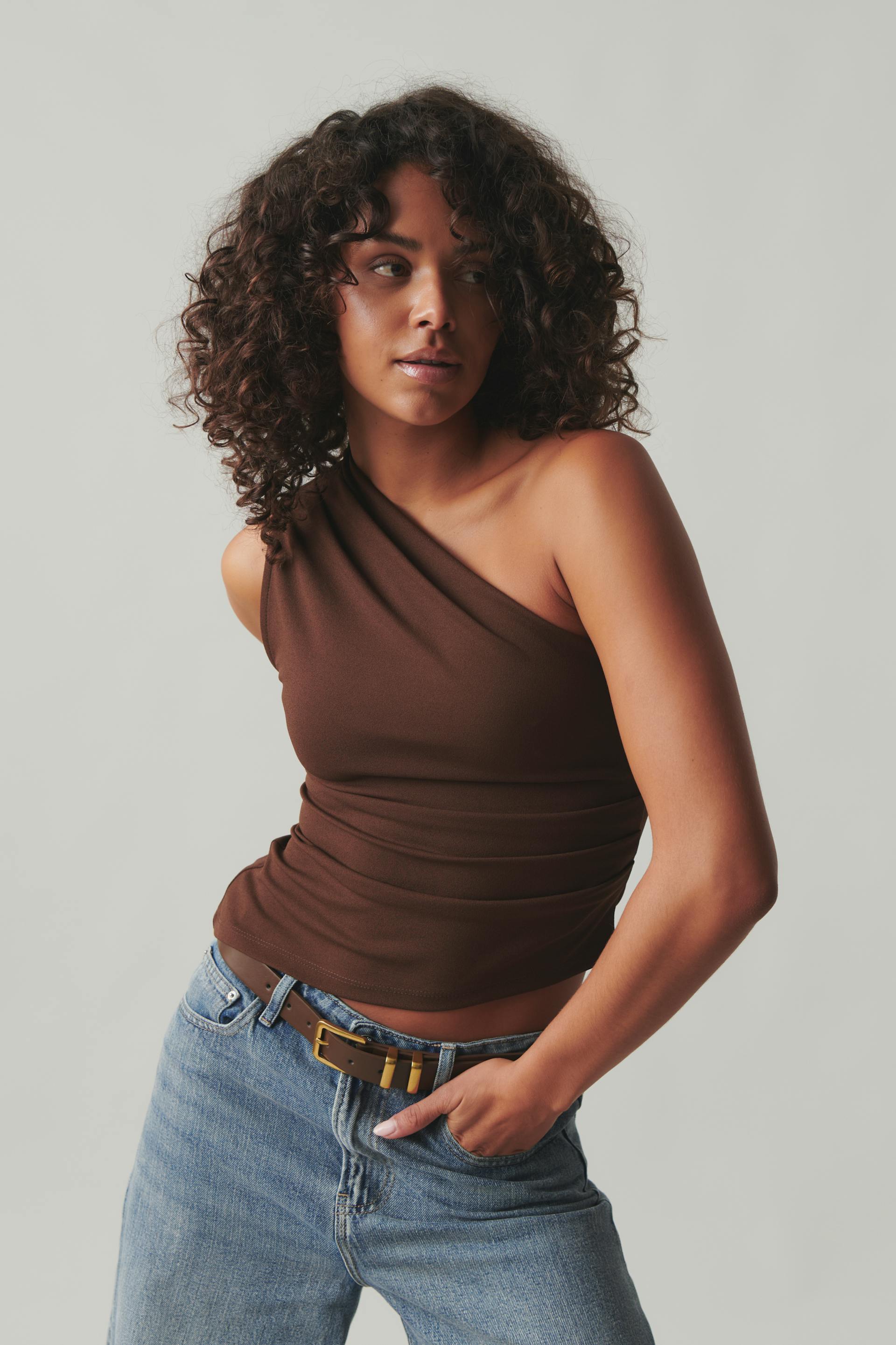 One shoulder drapy top