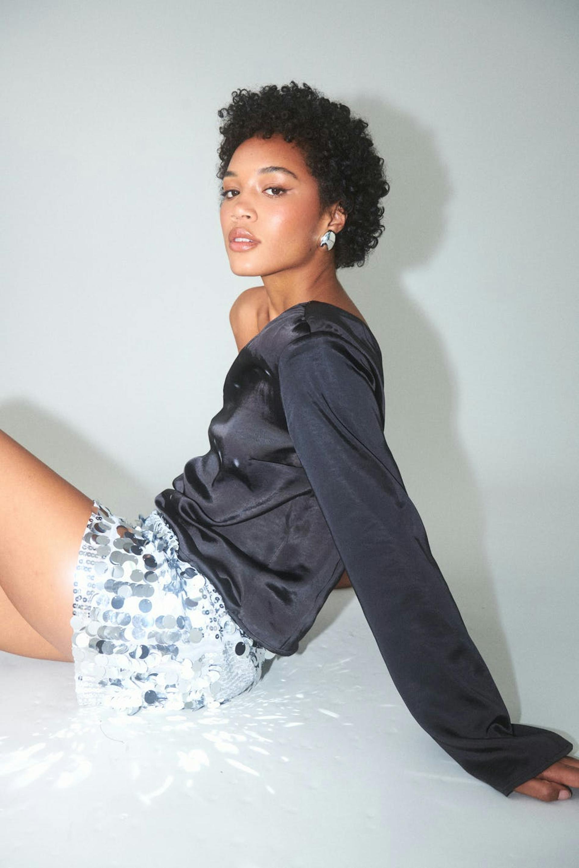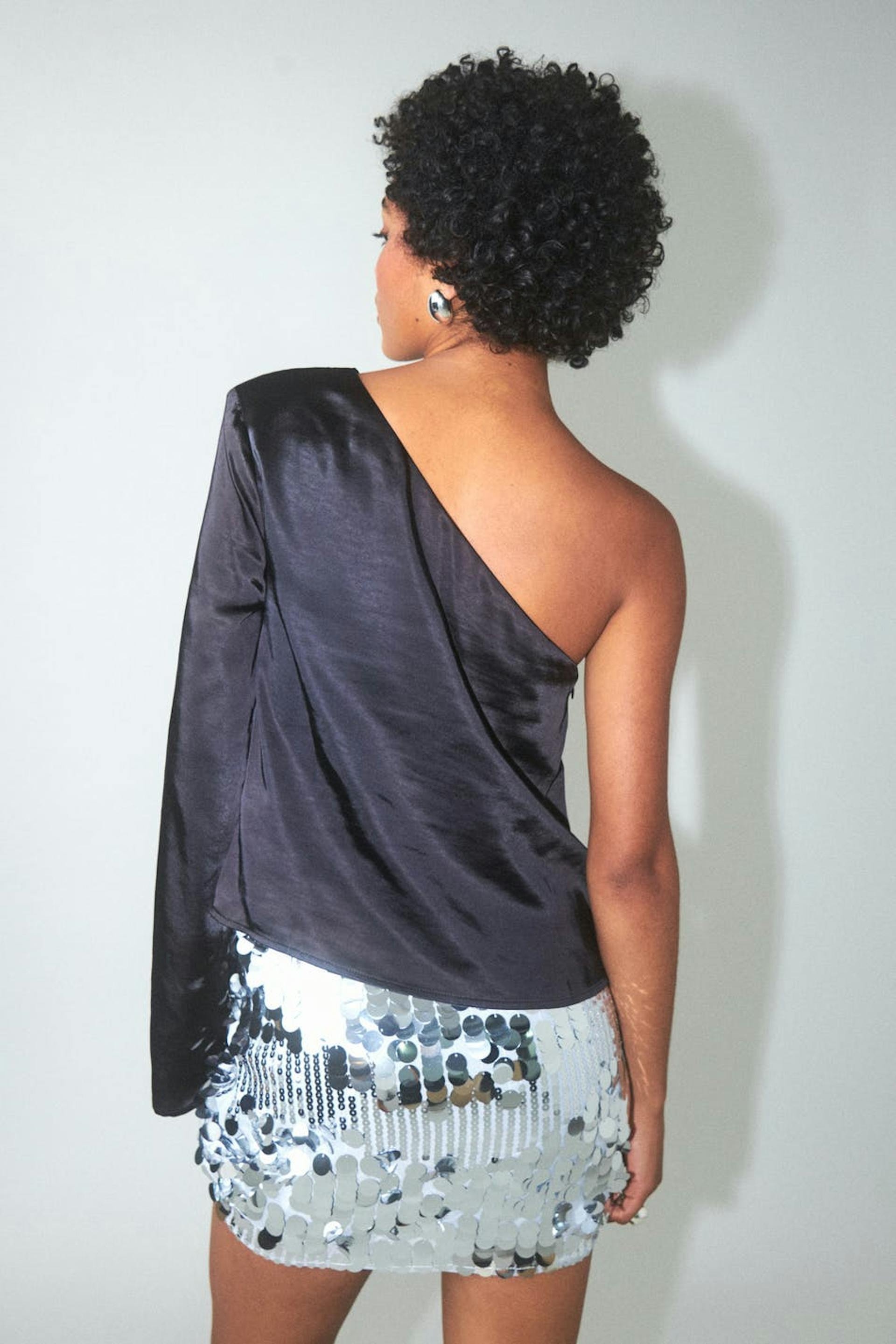 One shoulder satin blouse