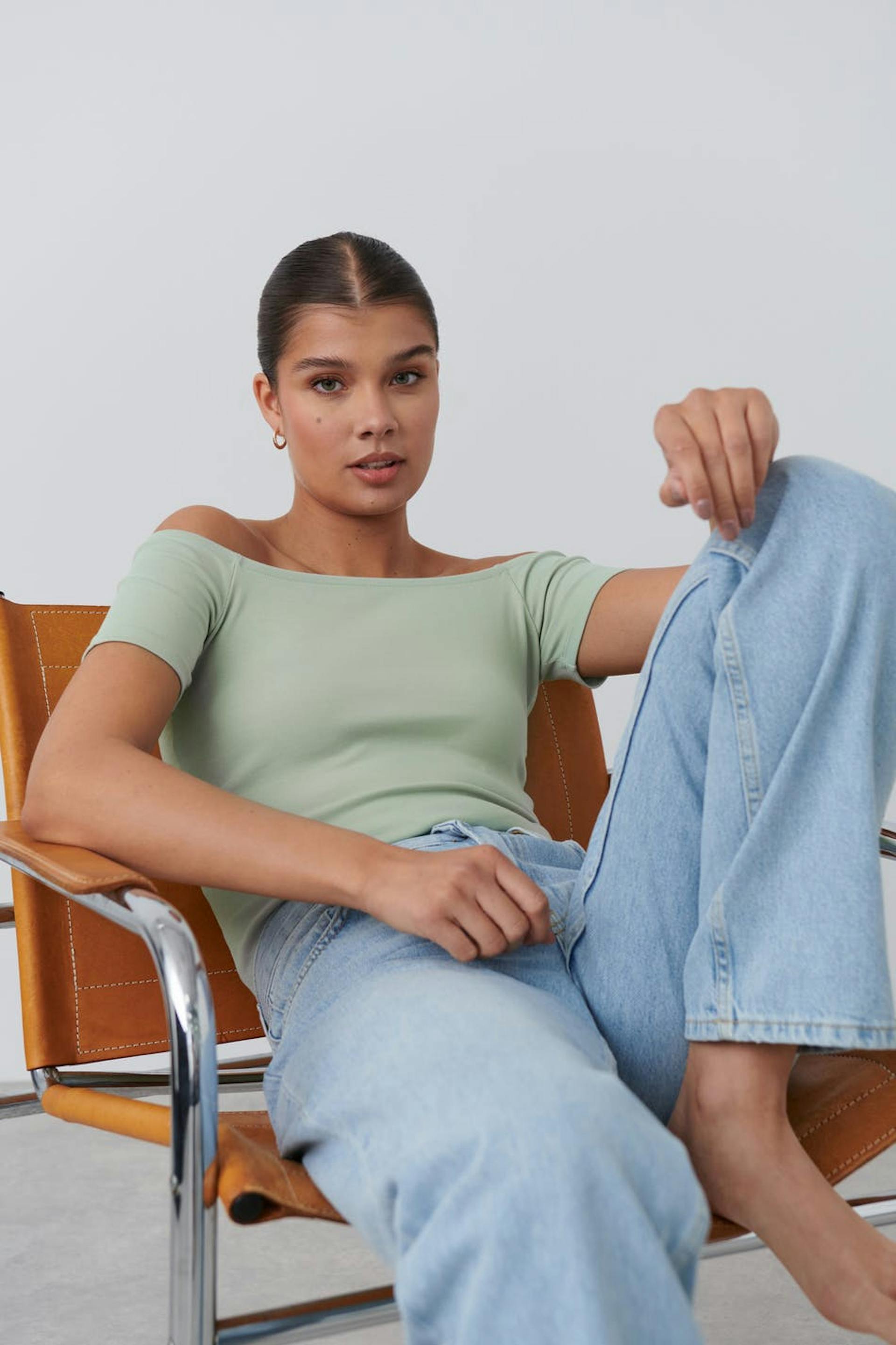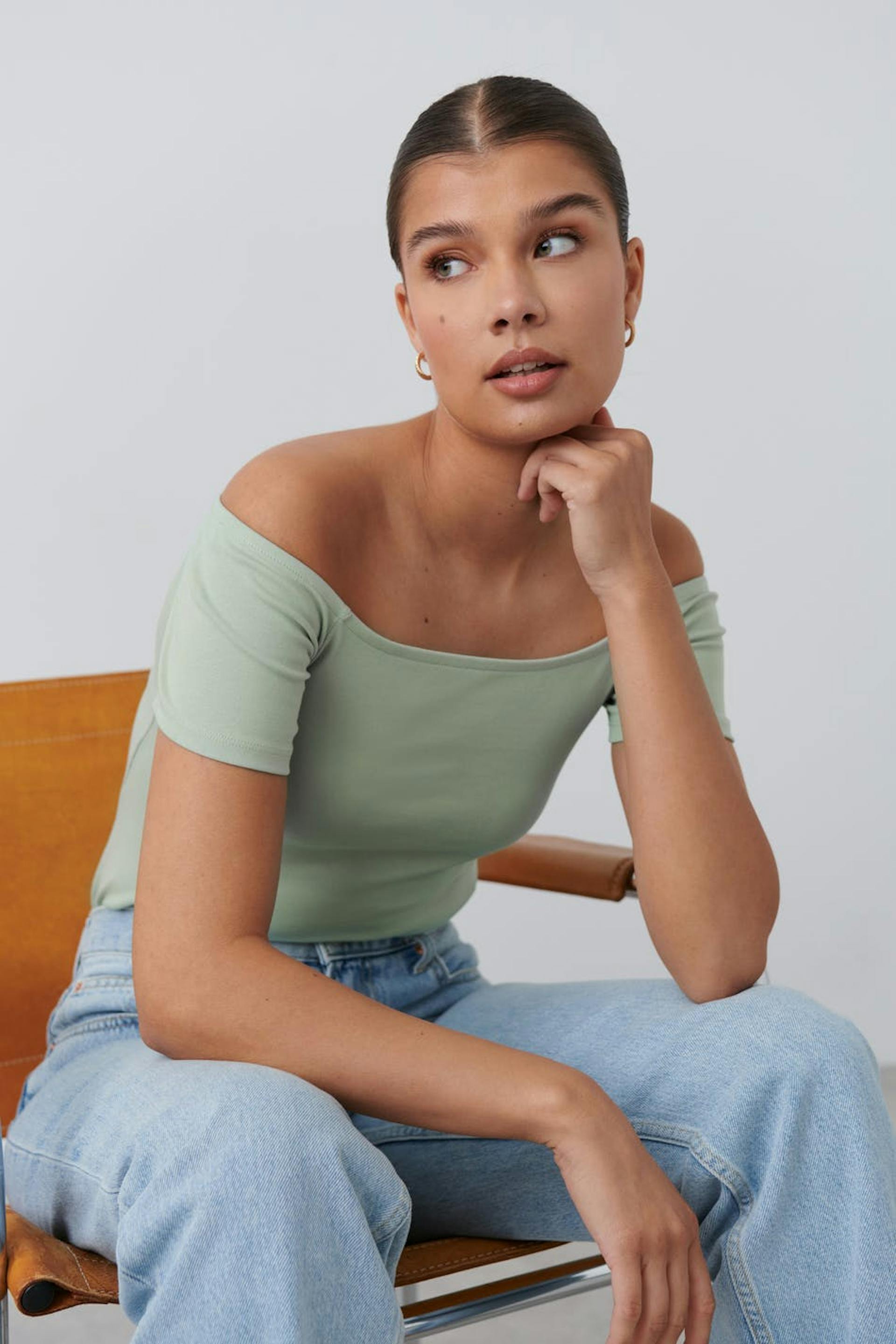 Rib off shoulder top