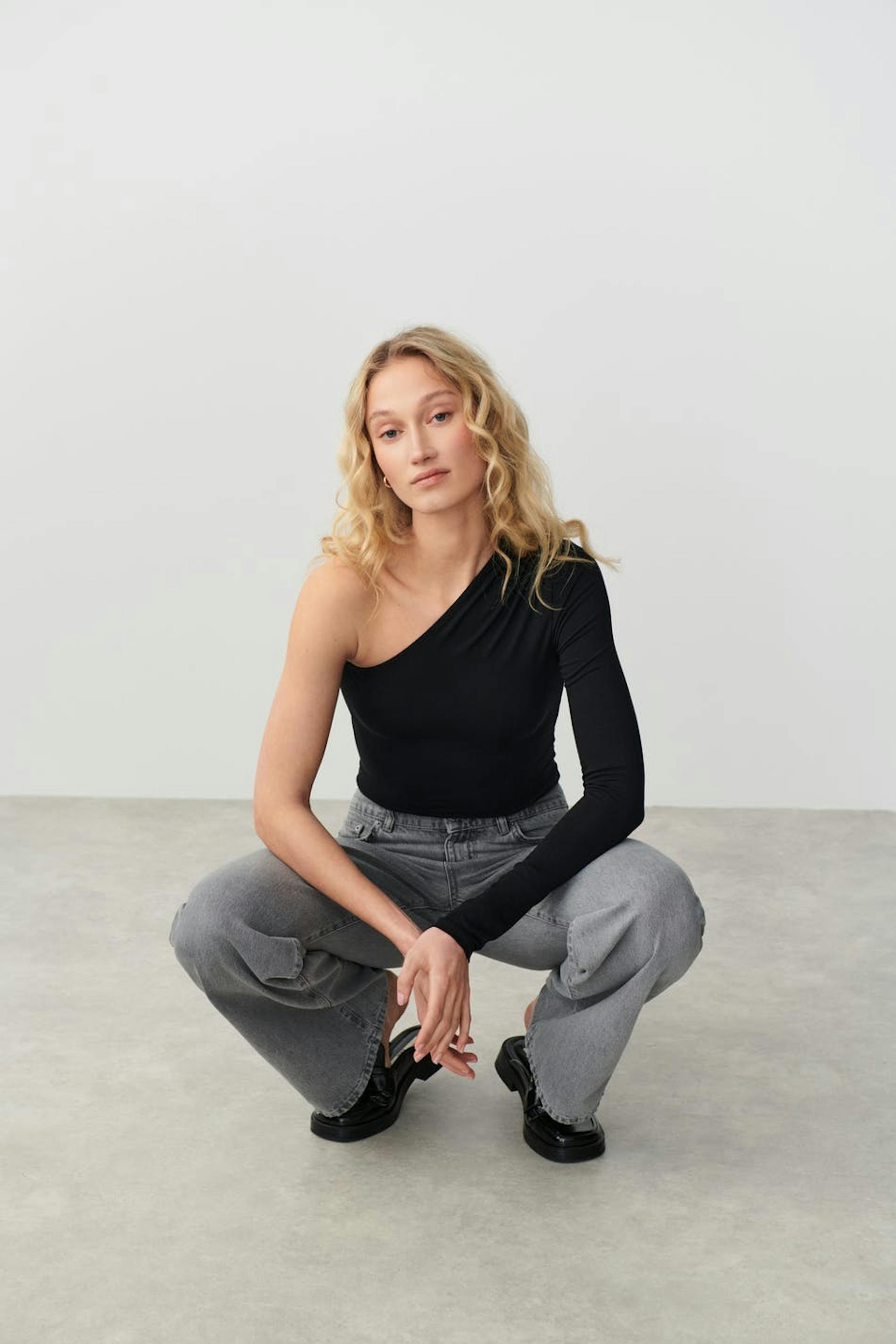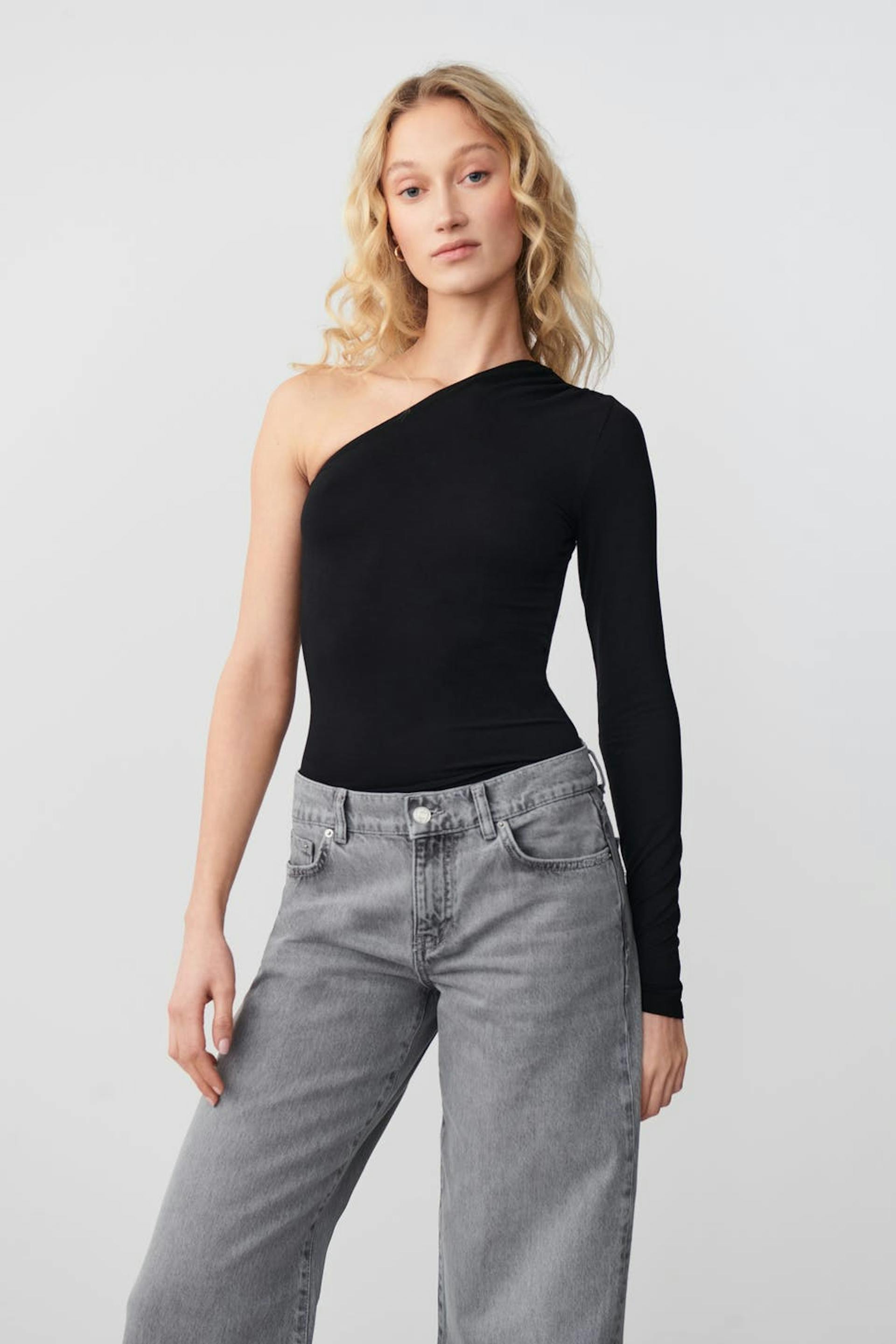 Soft touch one shoulder top