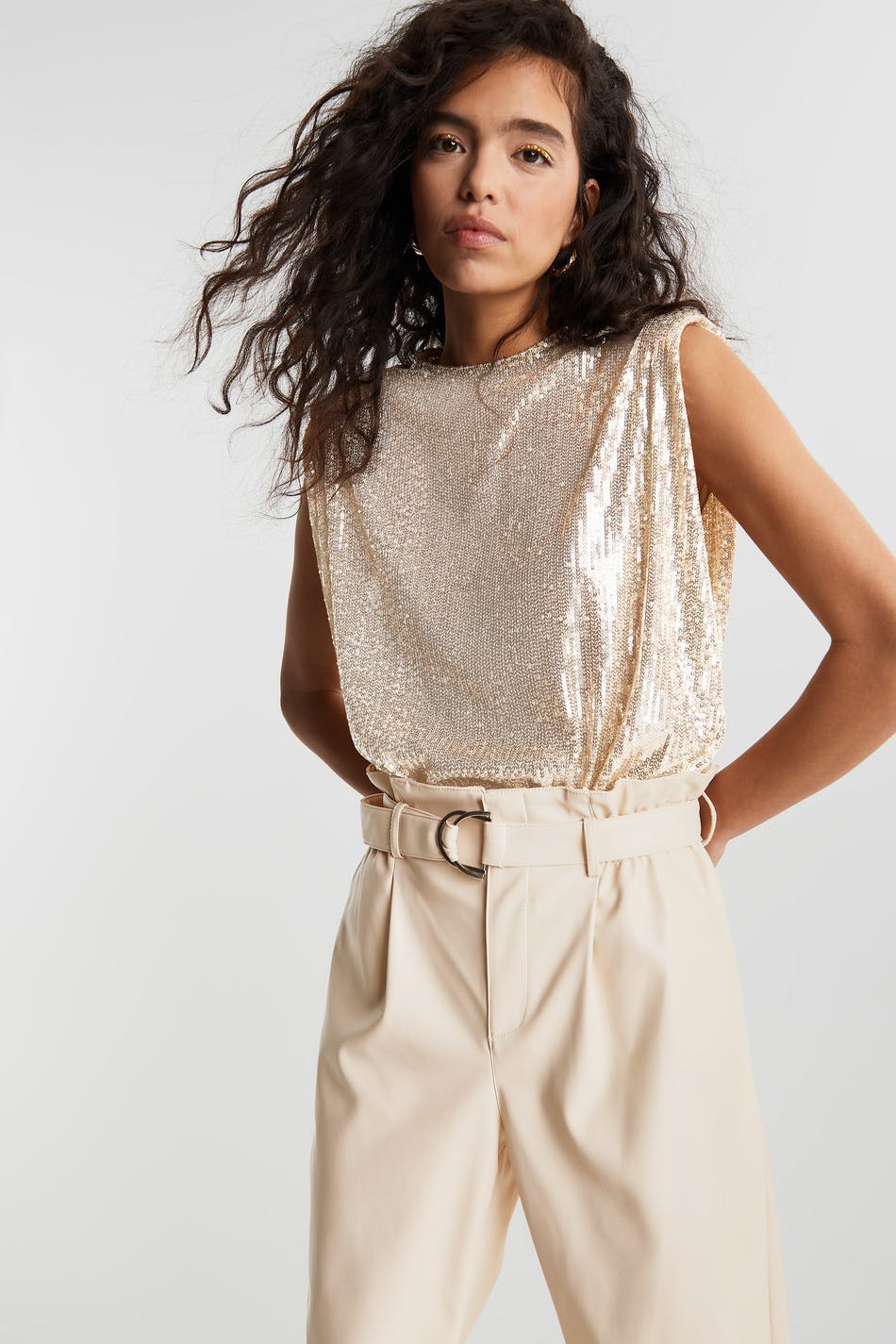Sleeve less sequins top with loose fit. Shoulder pads. Supplier: Production unit: