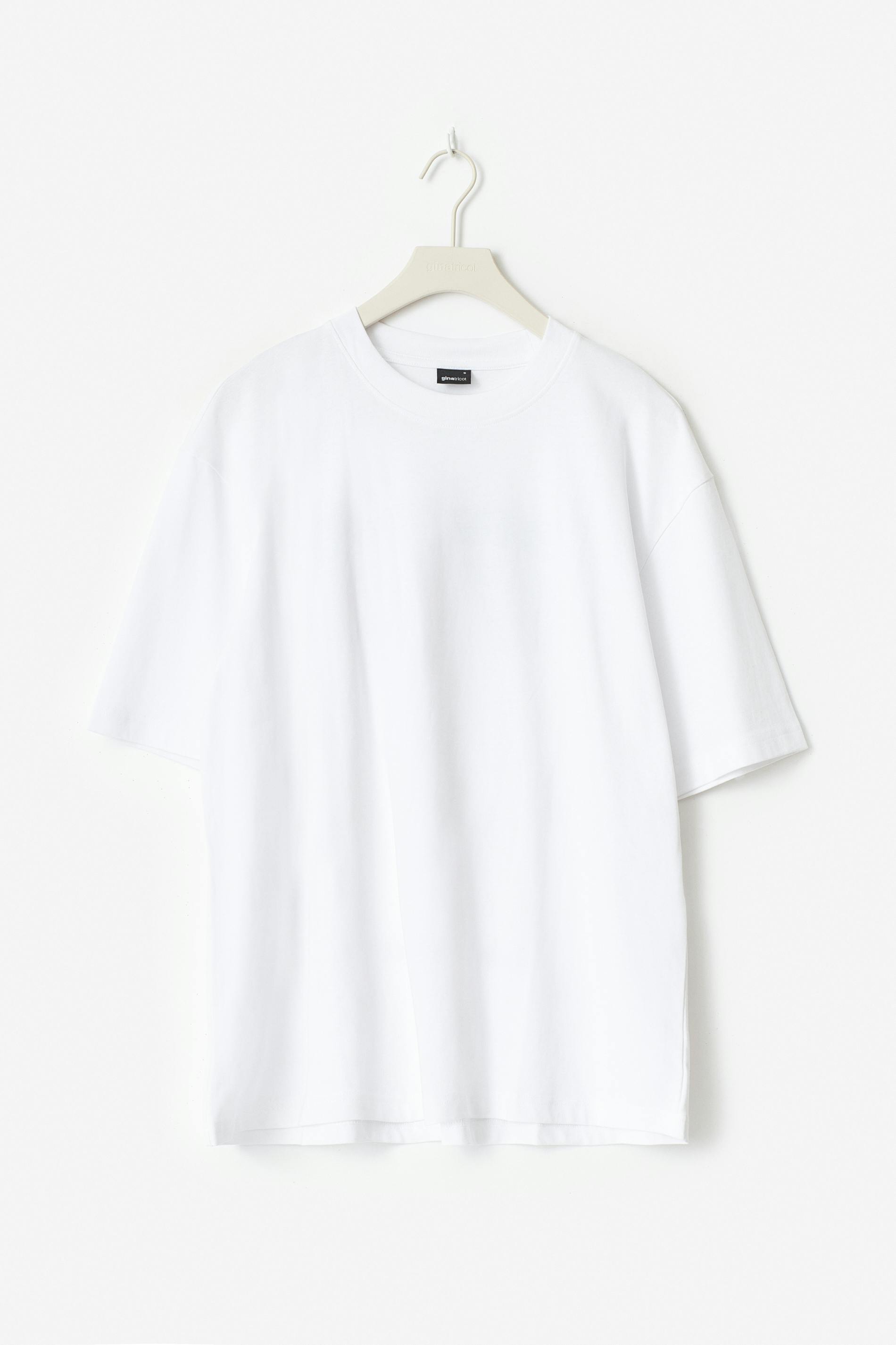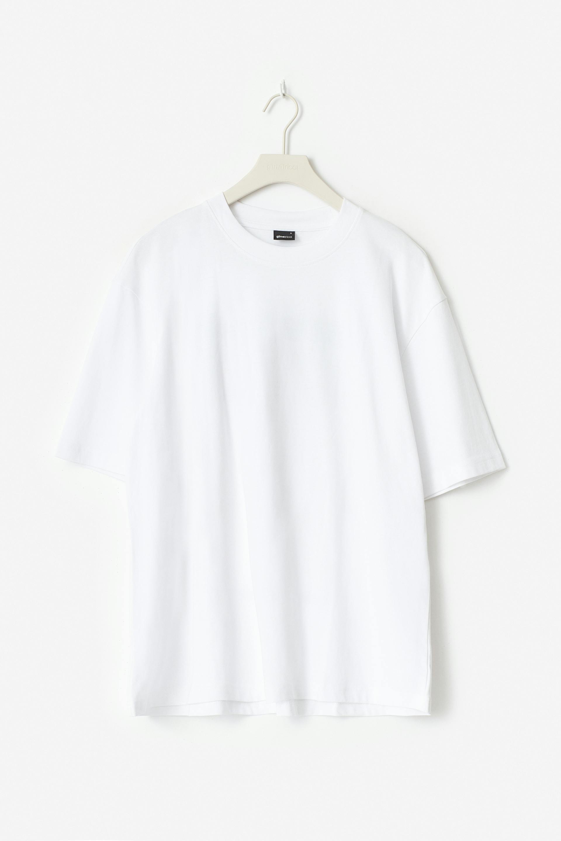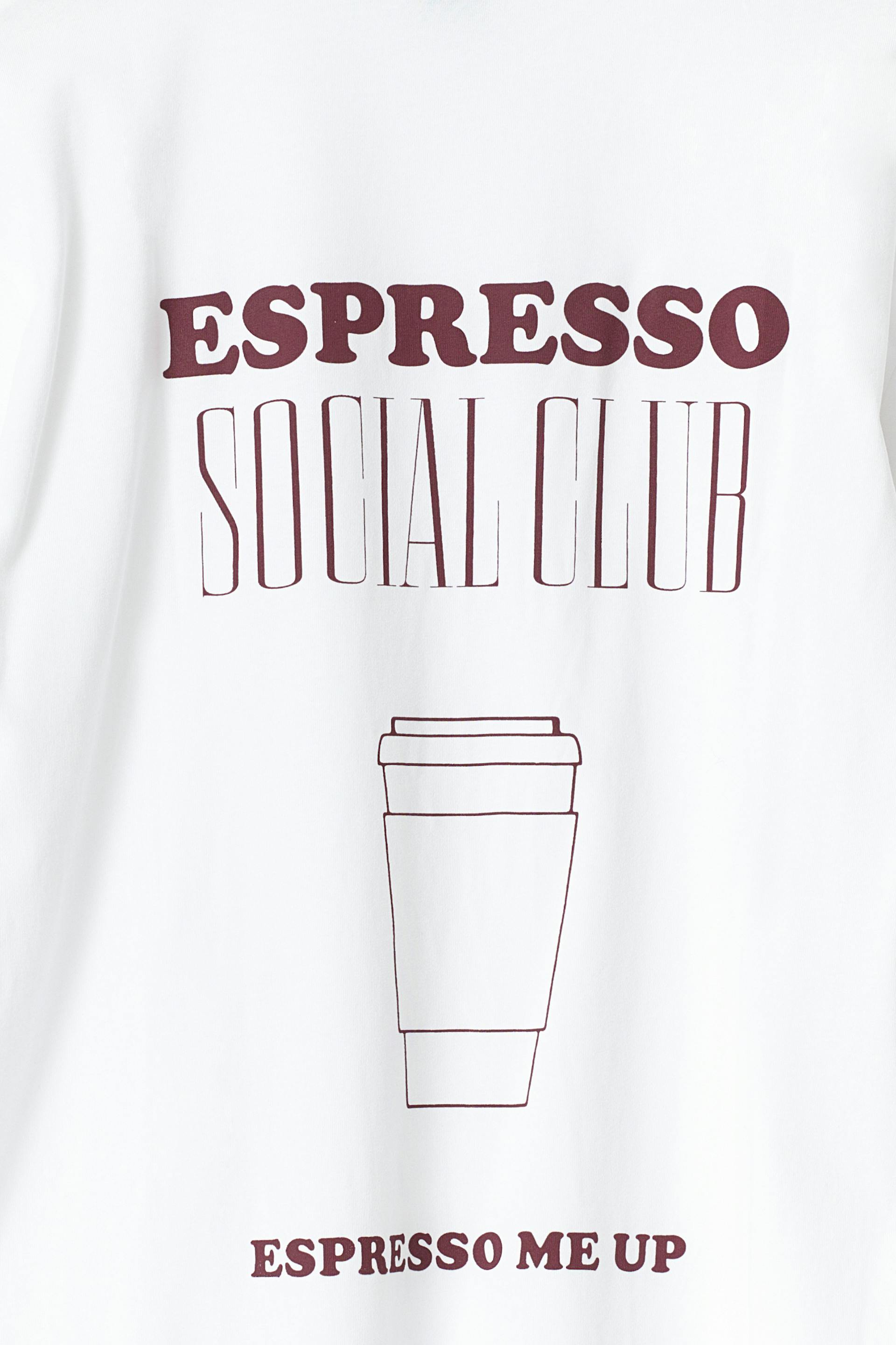 Oversized t-shirt in cotton with print at the back and on the chest. The t-shirt is white and has short sleeve. It has round neckline with ribbing.