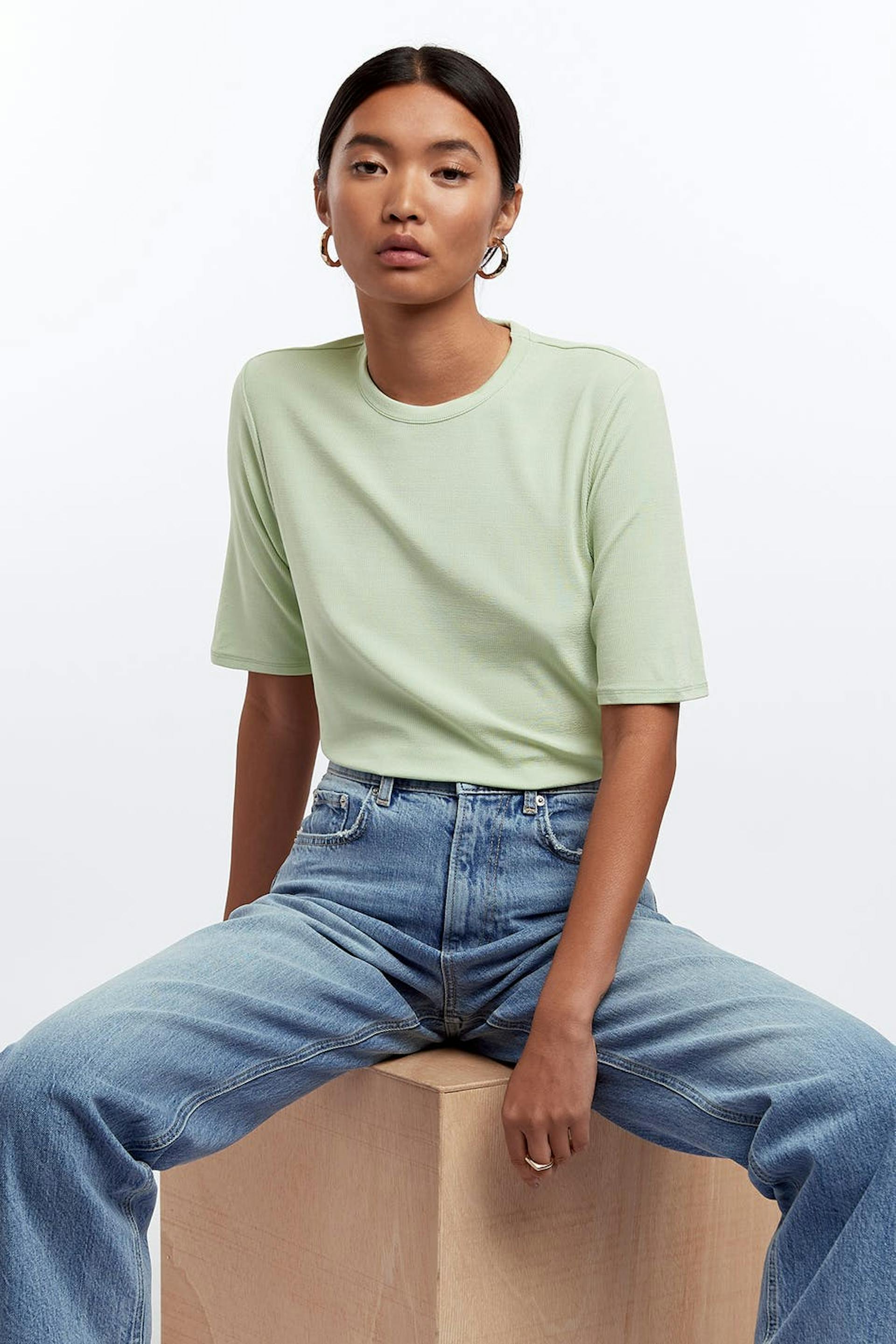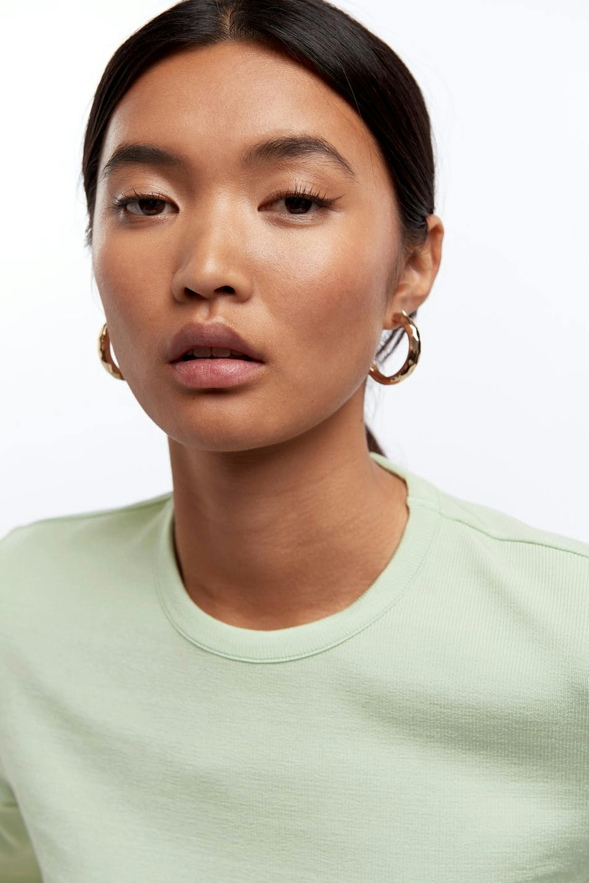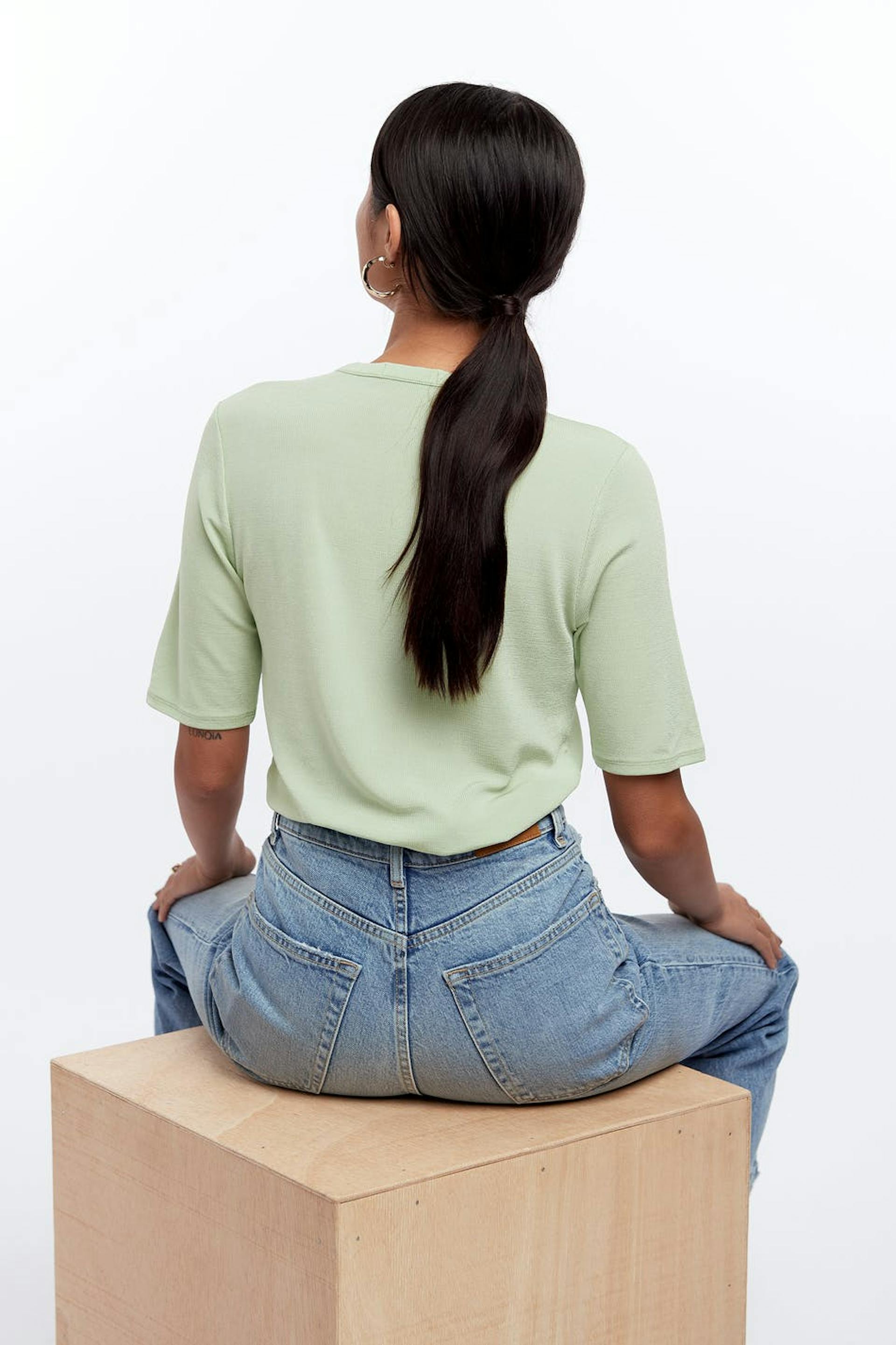 Short-sleeved t-shirt with a fitted fit. The t-shirt is green and has a crew neckline.