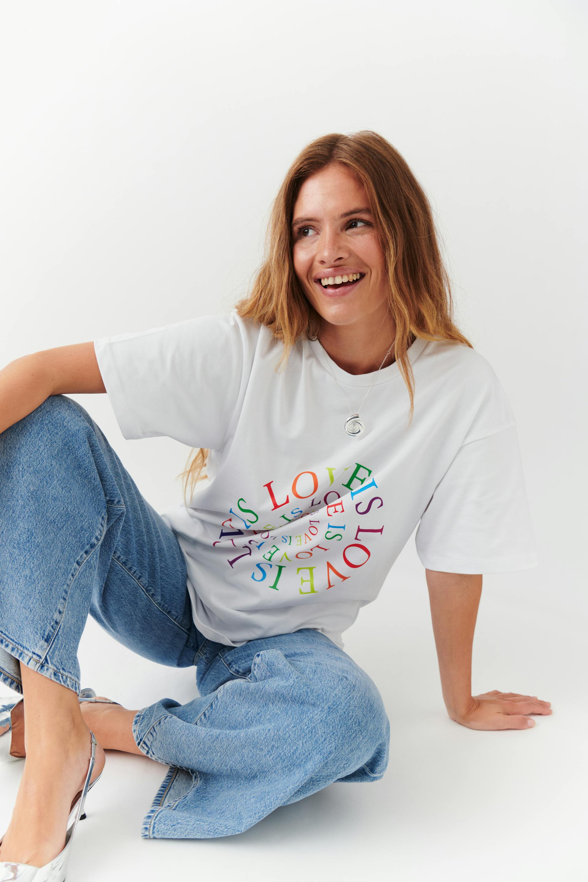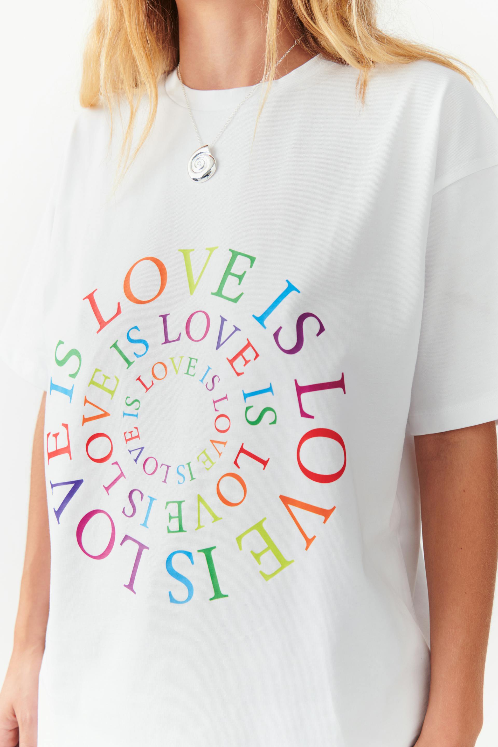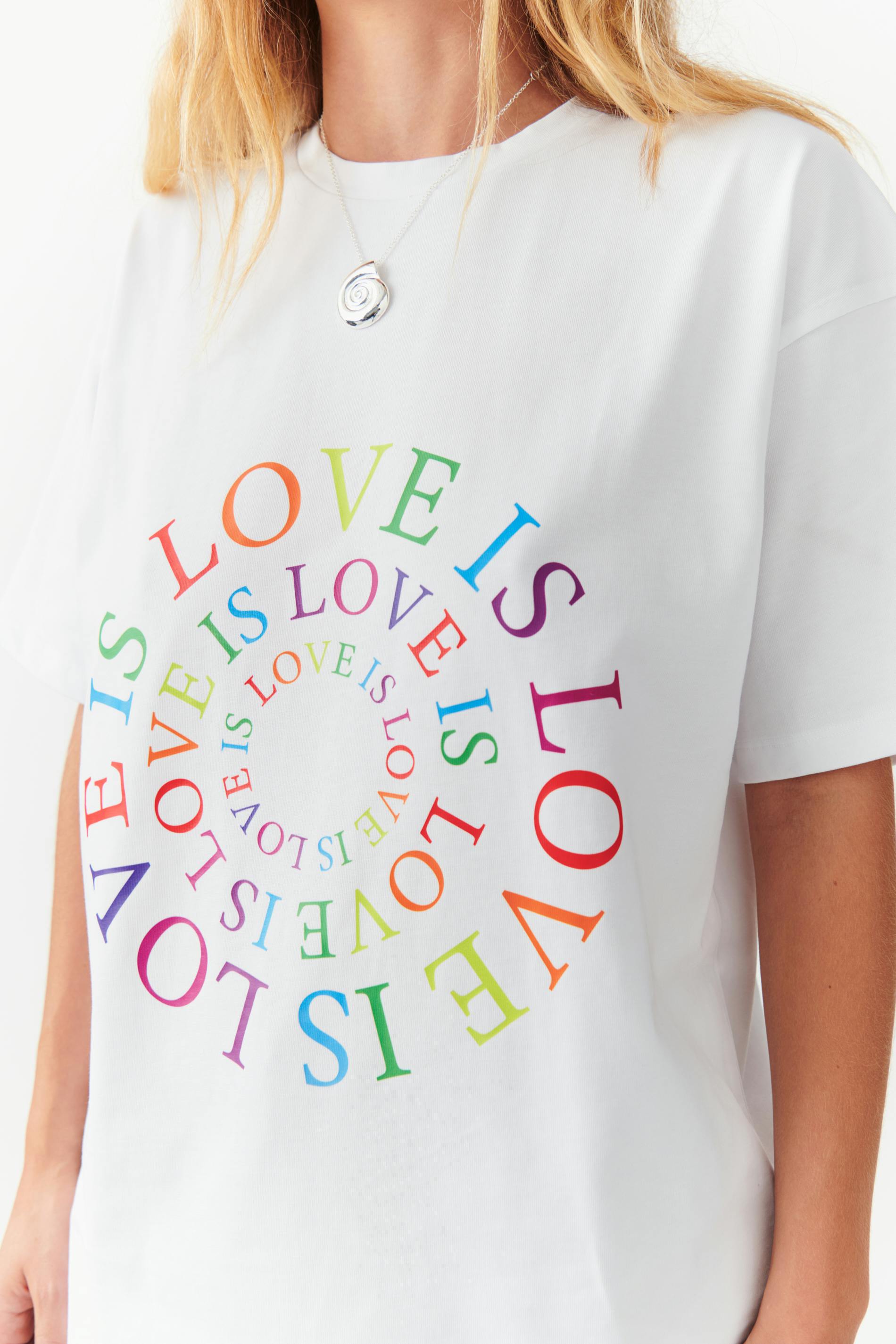 Unisex t-shirt with print at the front. The t-shirt is white and has a heavy quality in jersey. It has oversize fit and ribbed neckline. By buying this product, you're participating and contributing to the Regnbågsfonden's work so that rainbow people all over the world have their freedom and democratic rights. 20% of the revenue from the sale goes directly to Regnbågsfonden