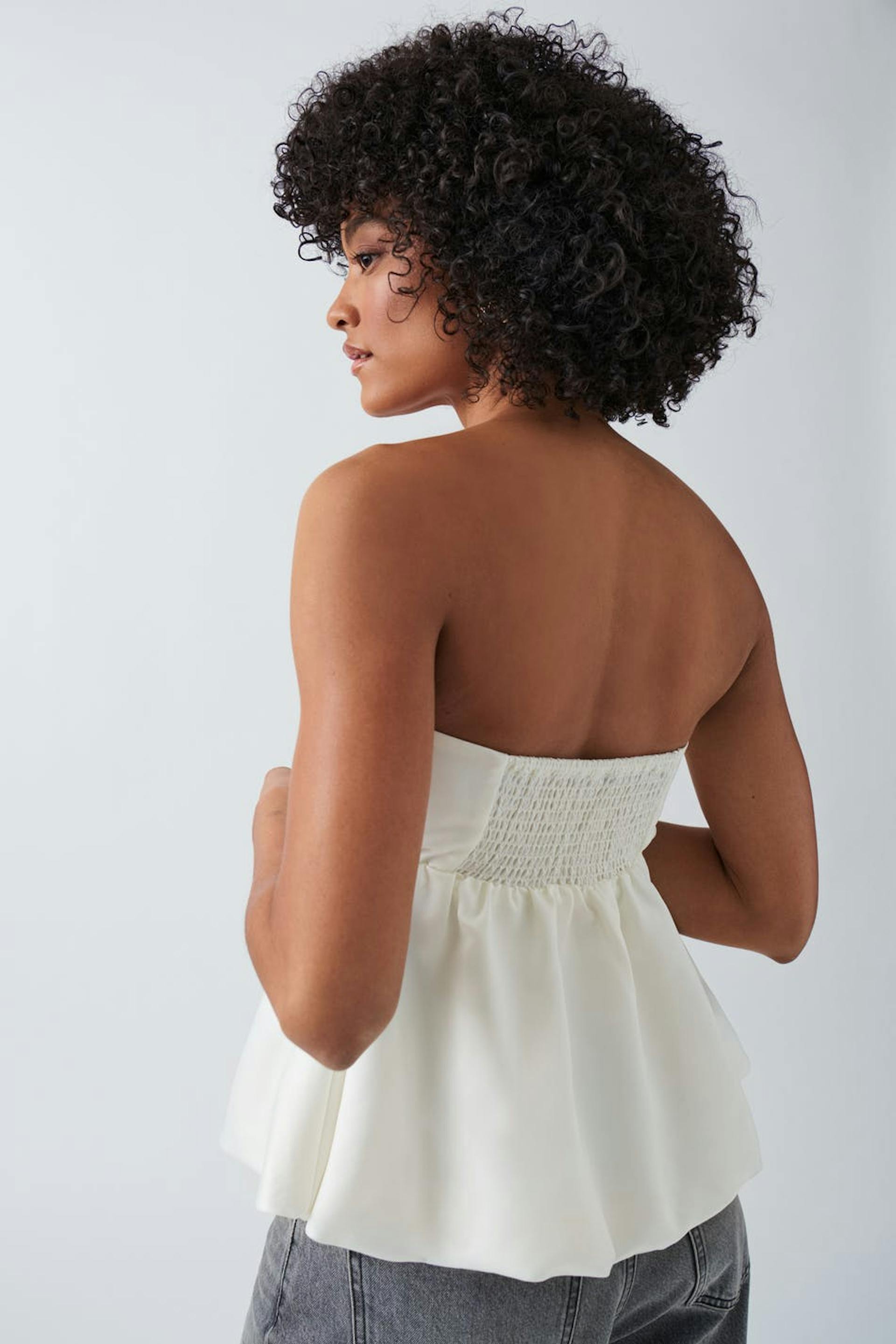 Tank with an elastic band at the back. The tank is white.