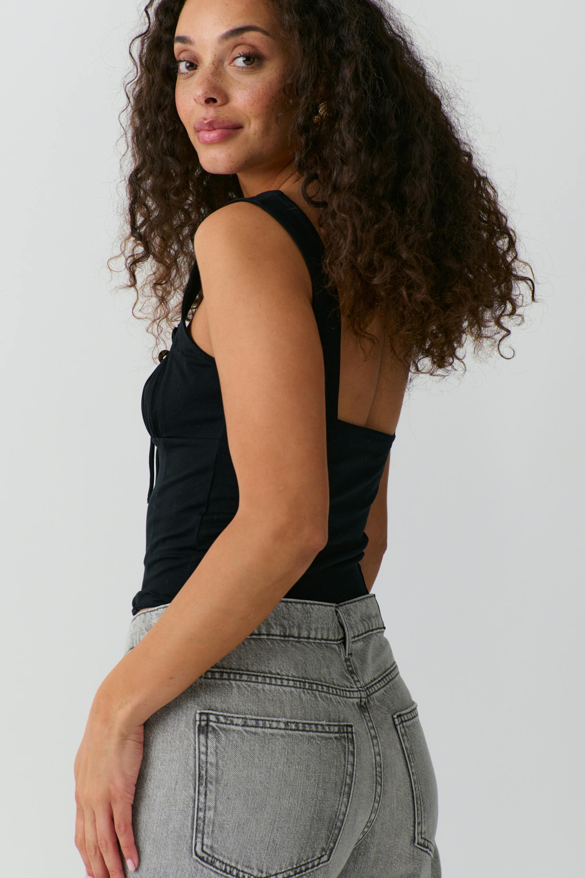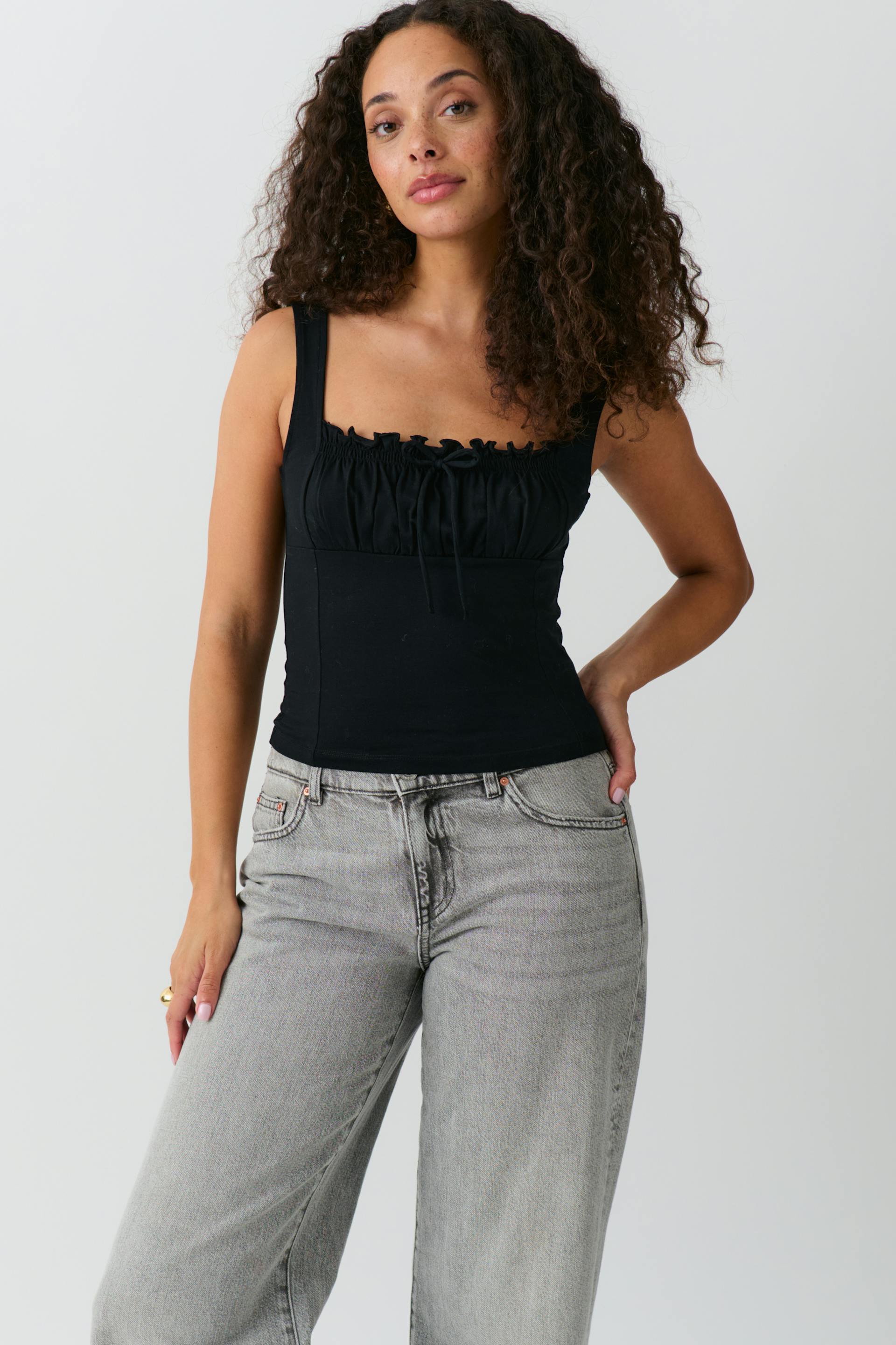 Gathered square neck singlet