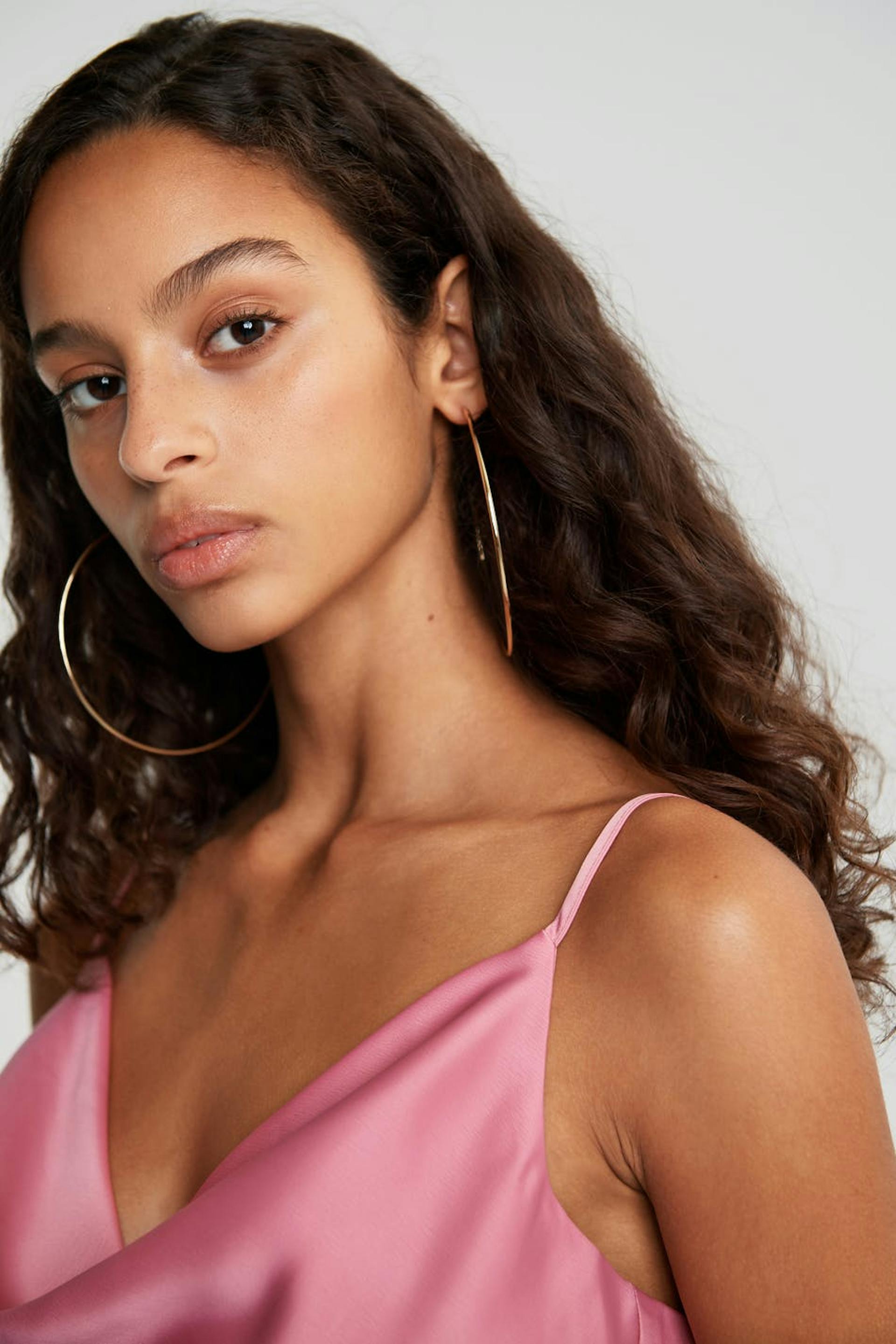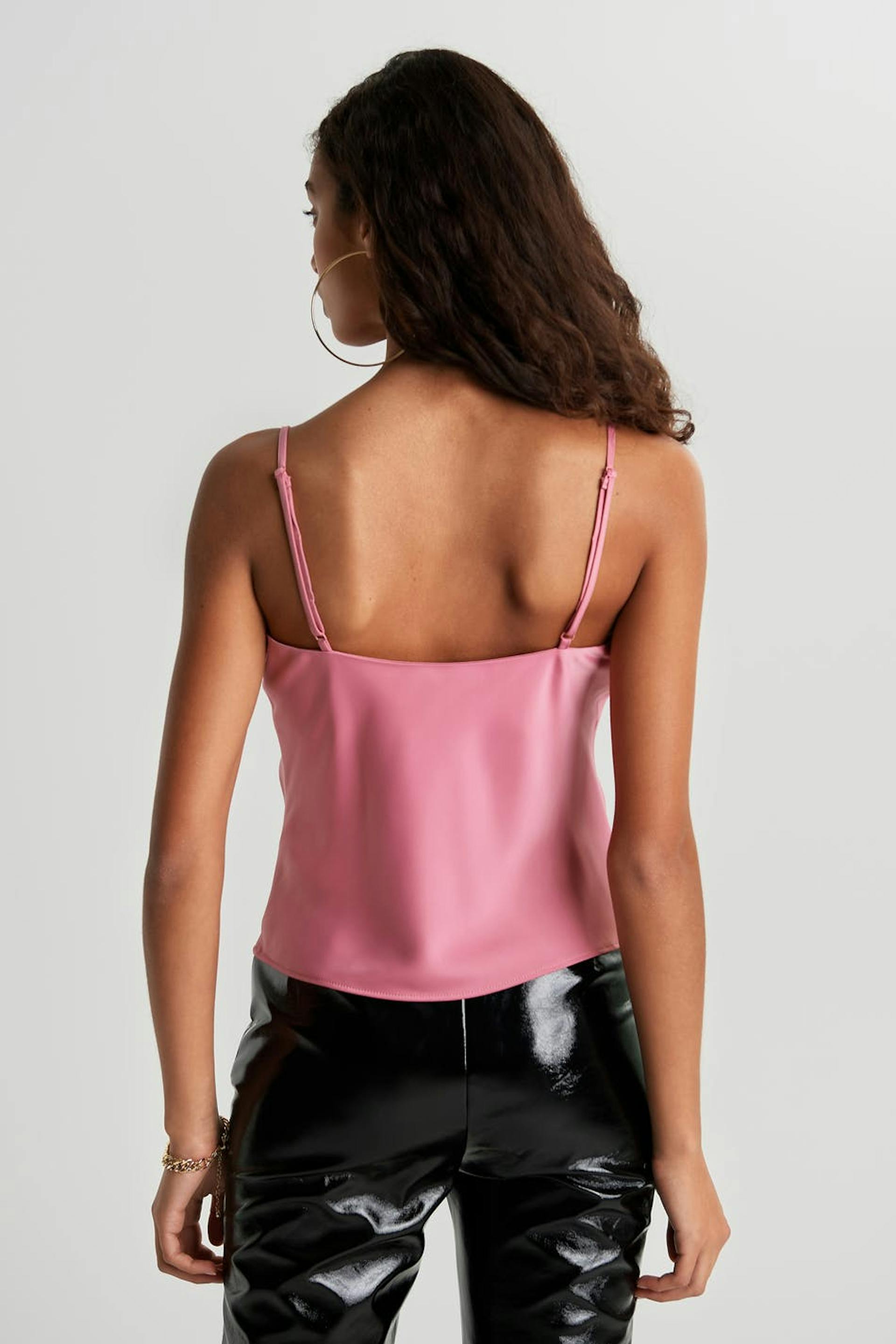 Tank with a regular fit. The tank is perfect for the party and pink and has thin, adjustable shoulder straps. It has a draping design on the neckline.