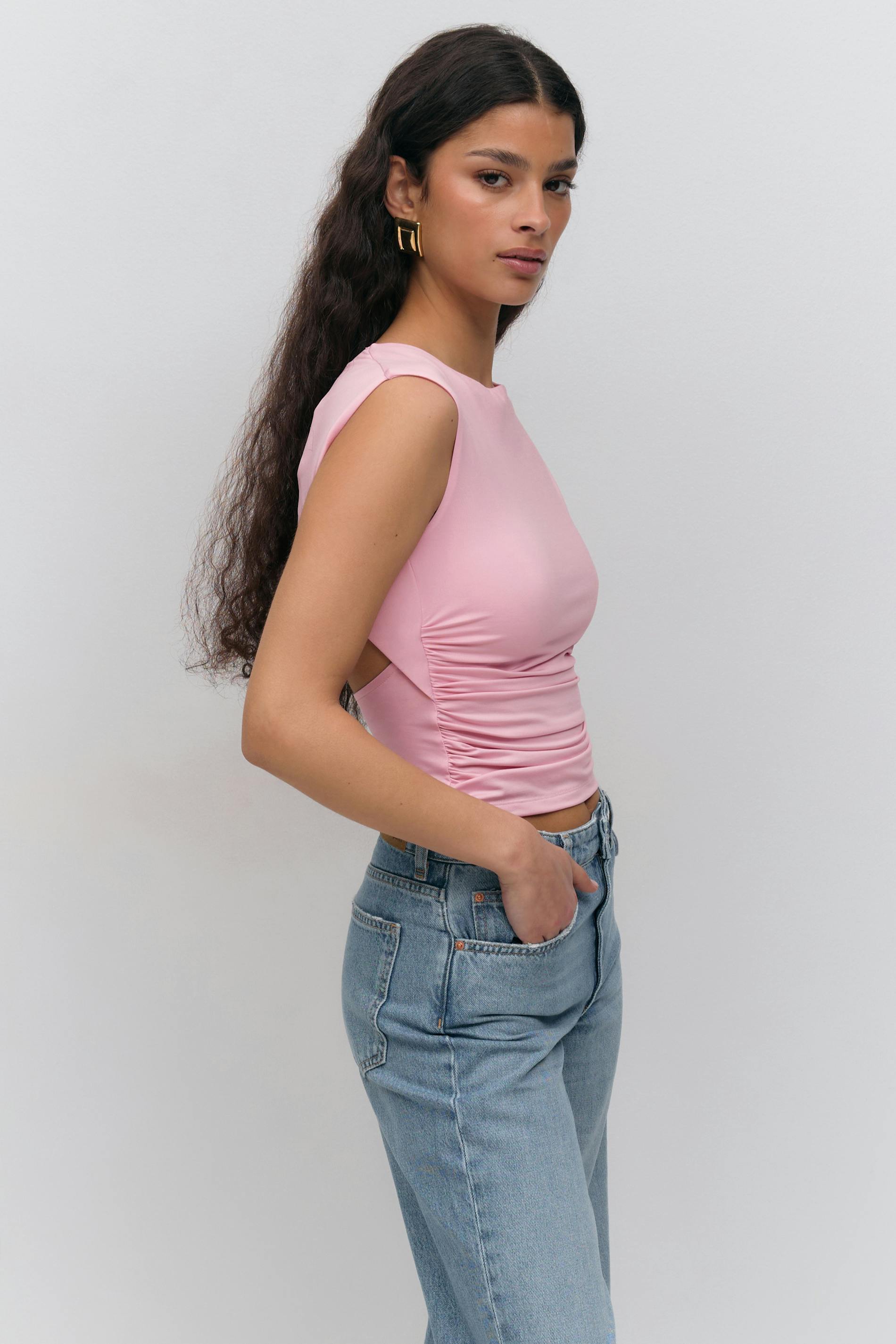 Short sleeve open back top