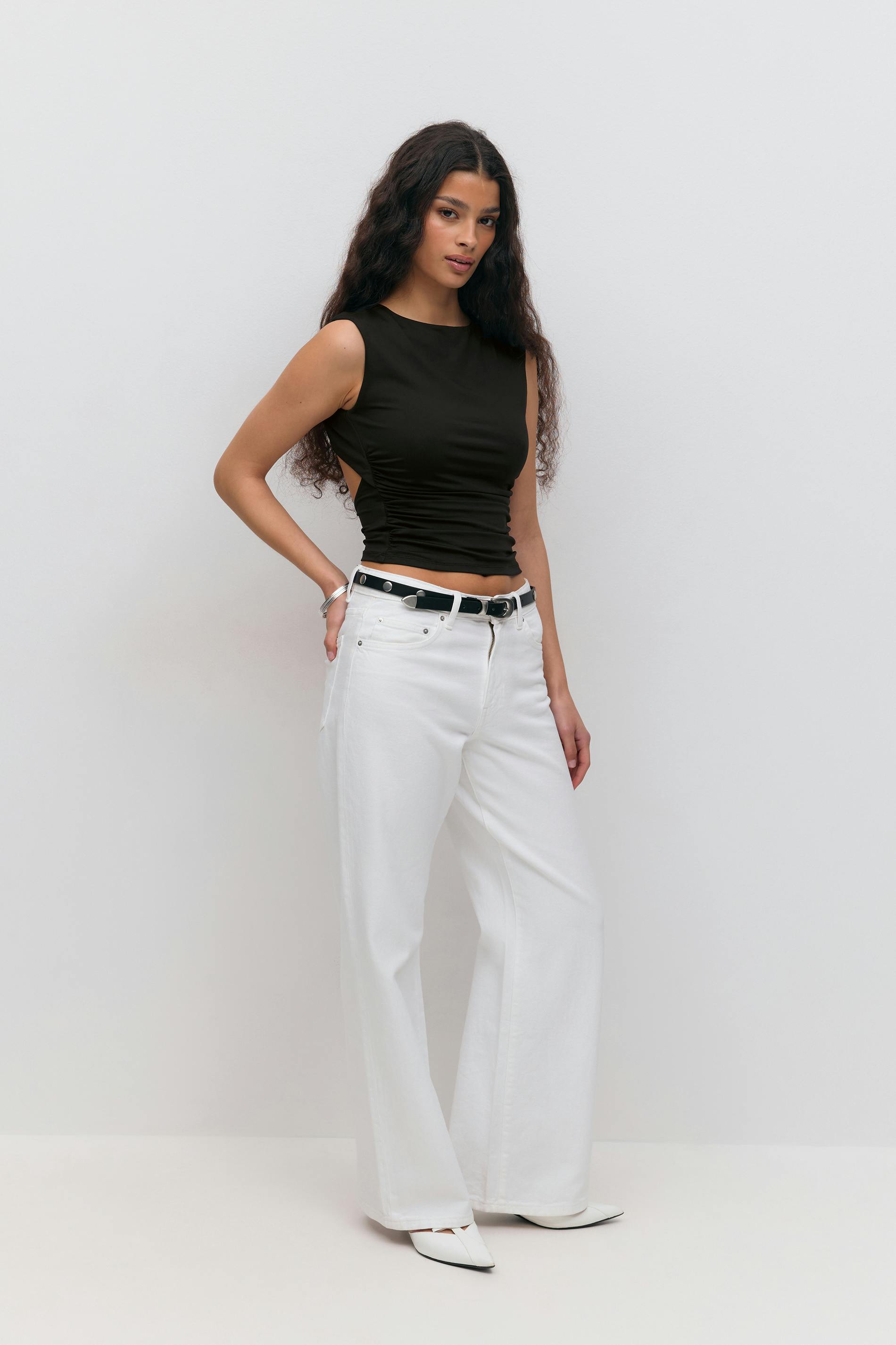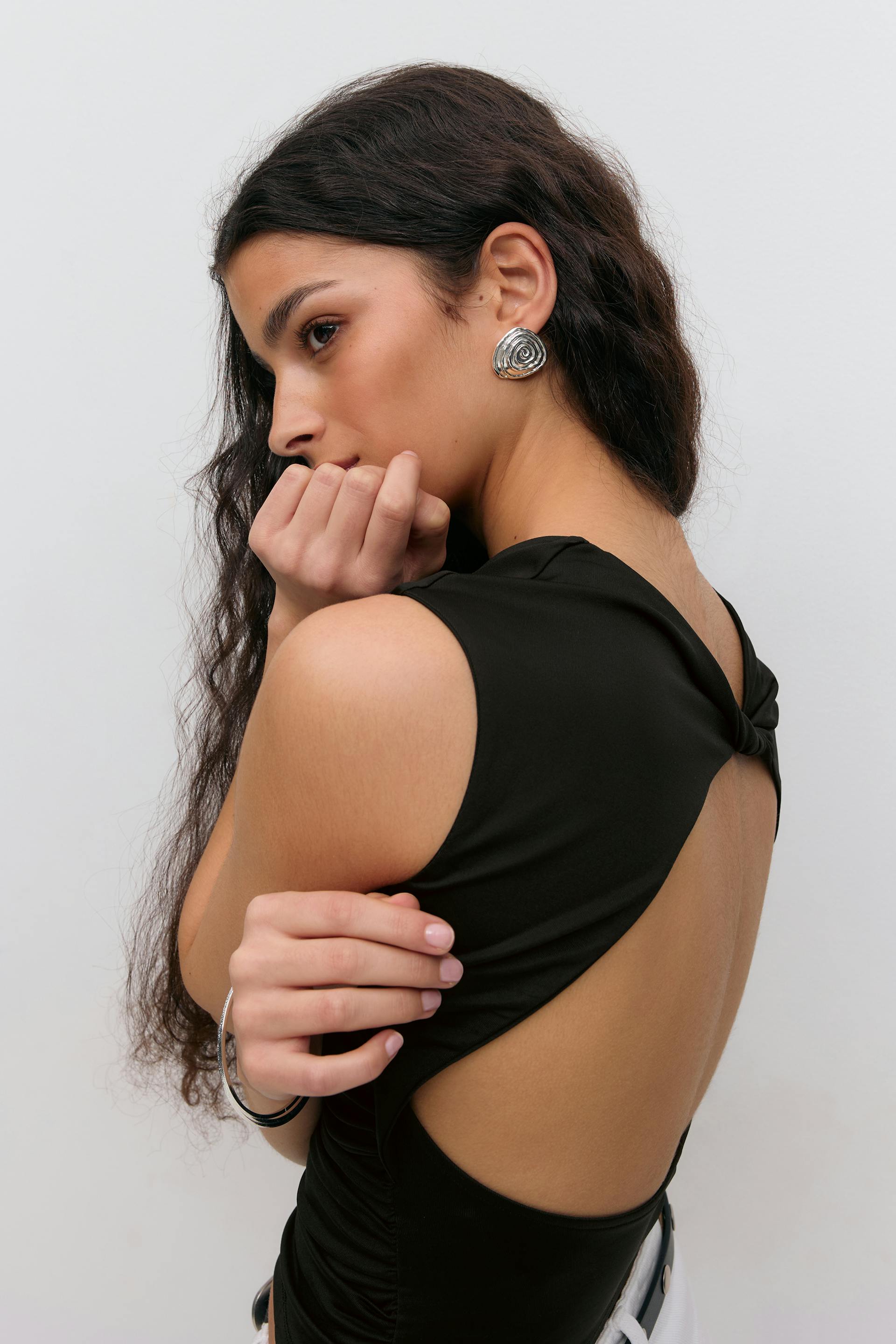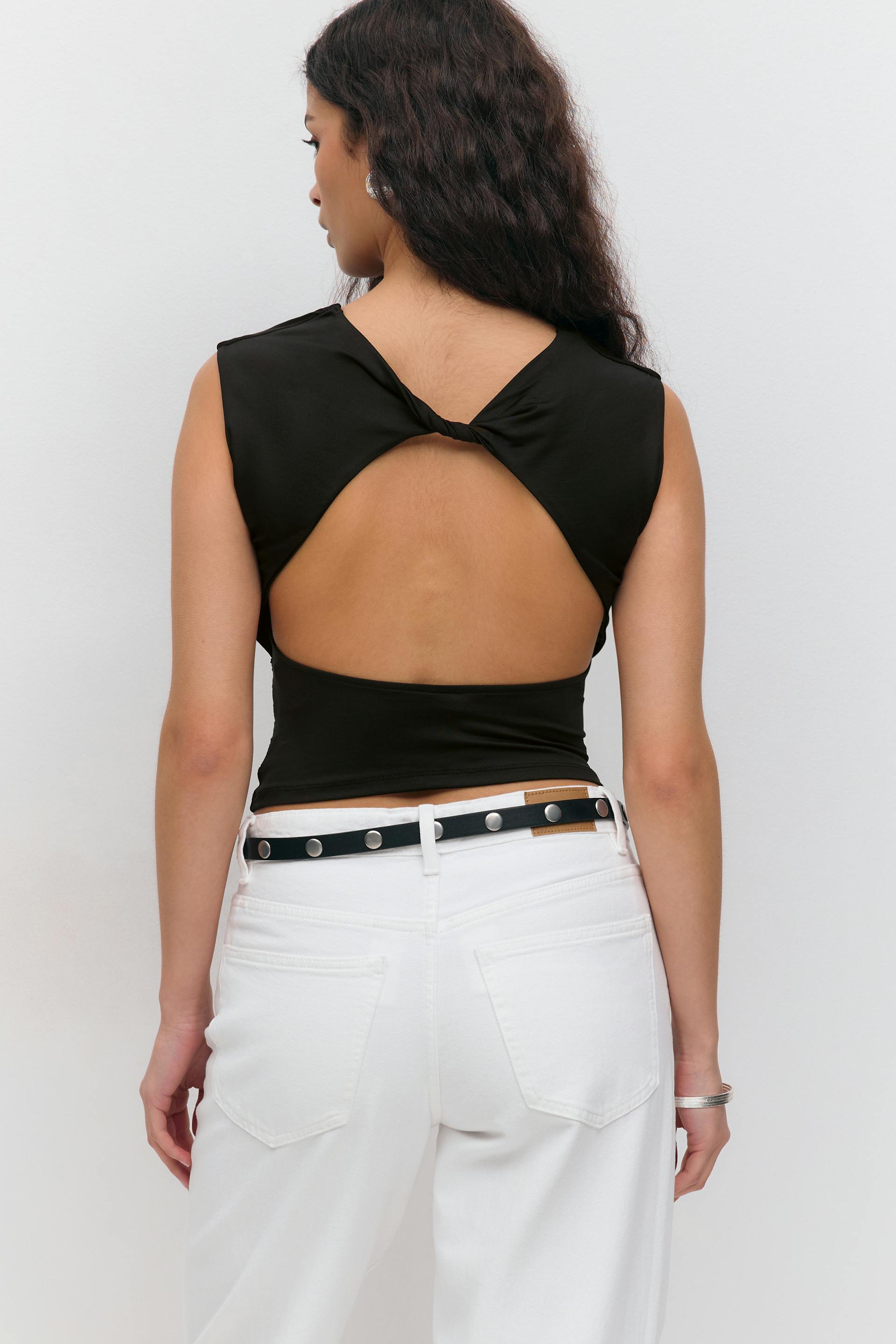 Short sleeve open back top